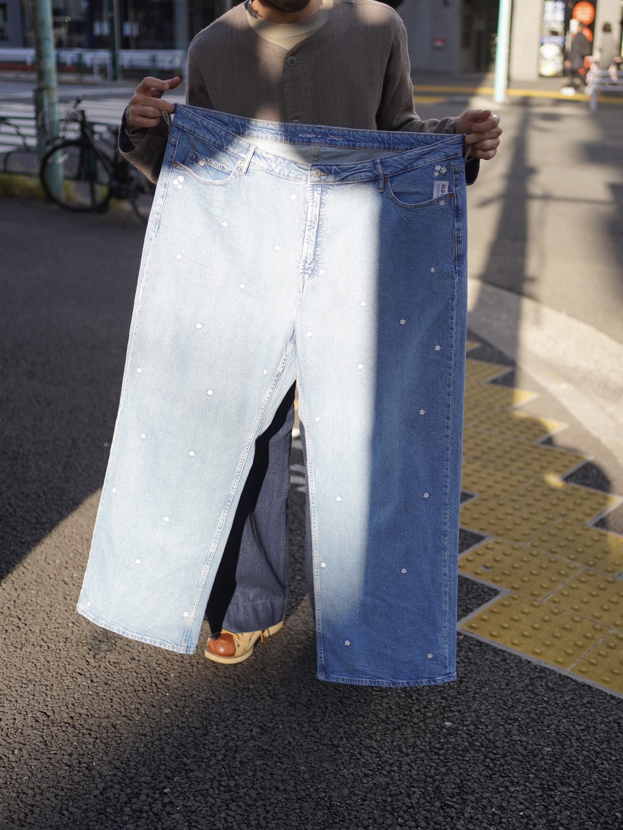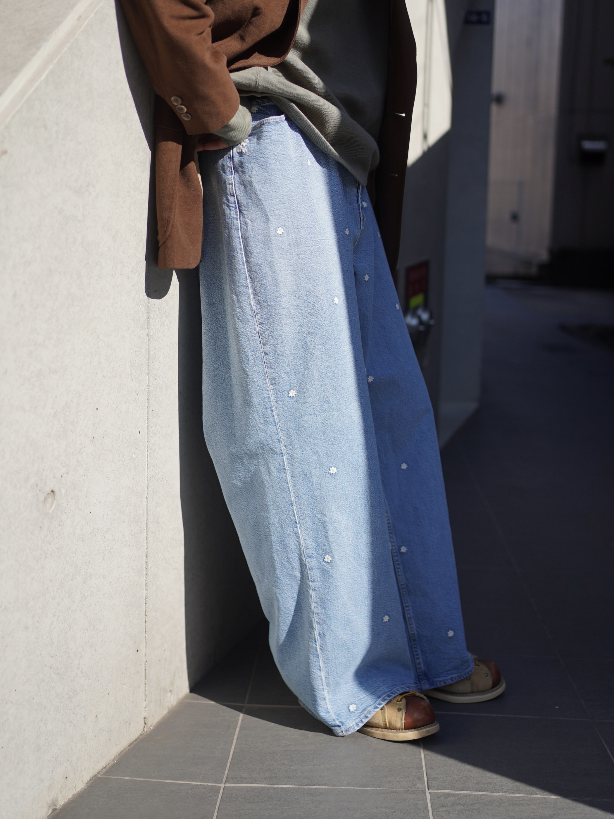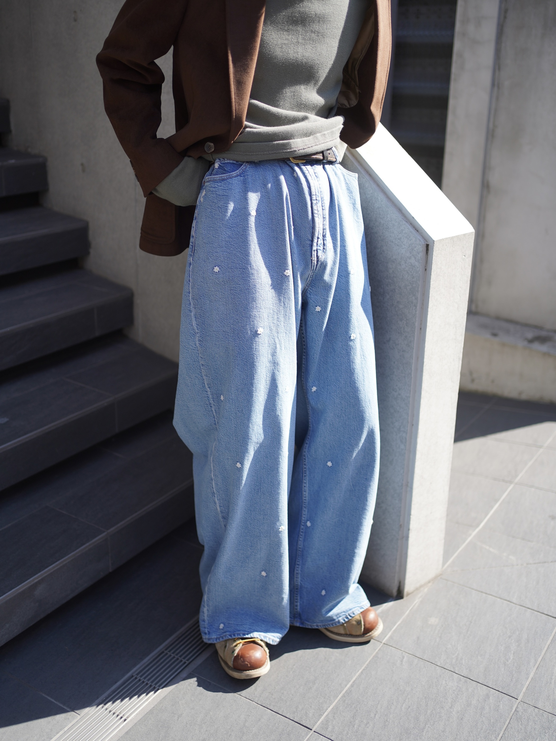 ・NOS. OLD NAVY Super wide silhouette floral pattern denim pants