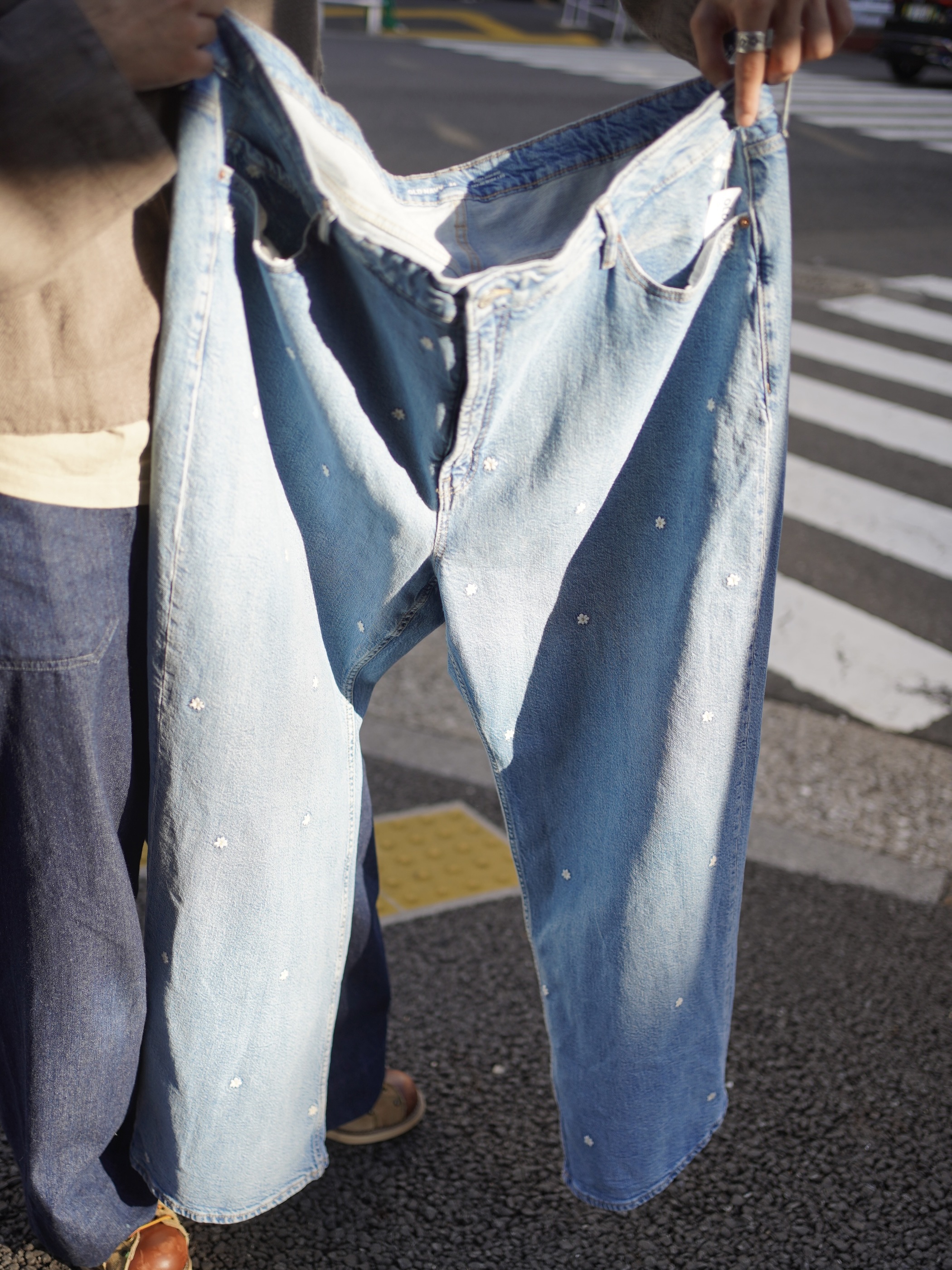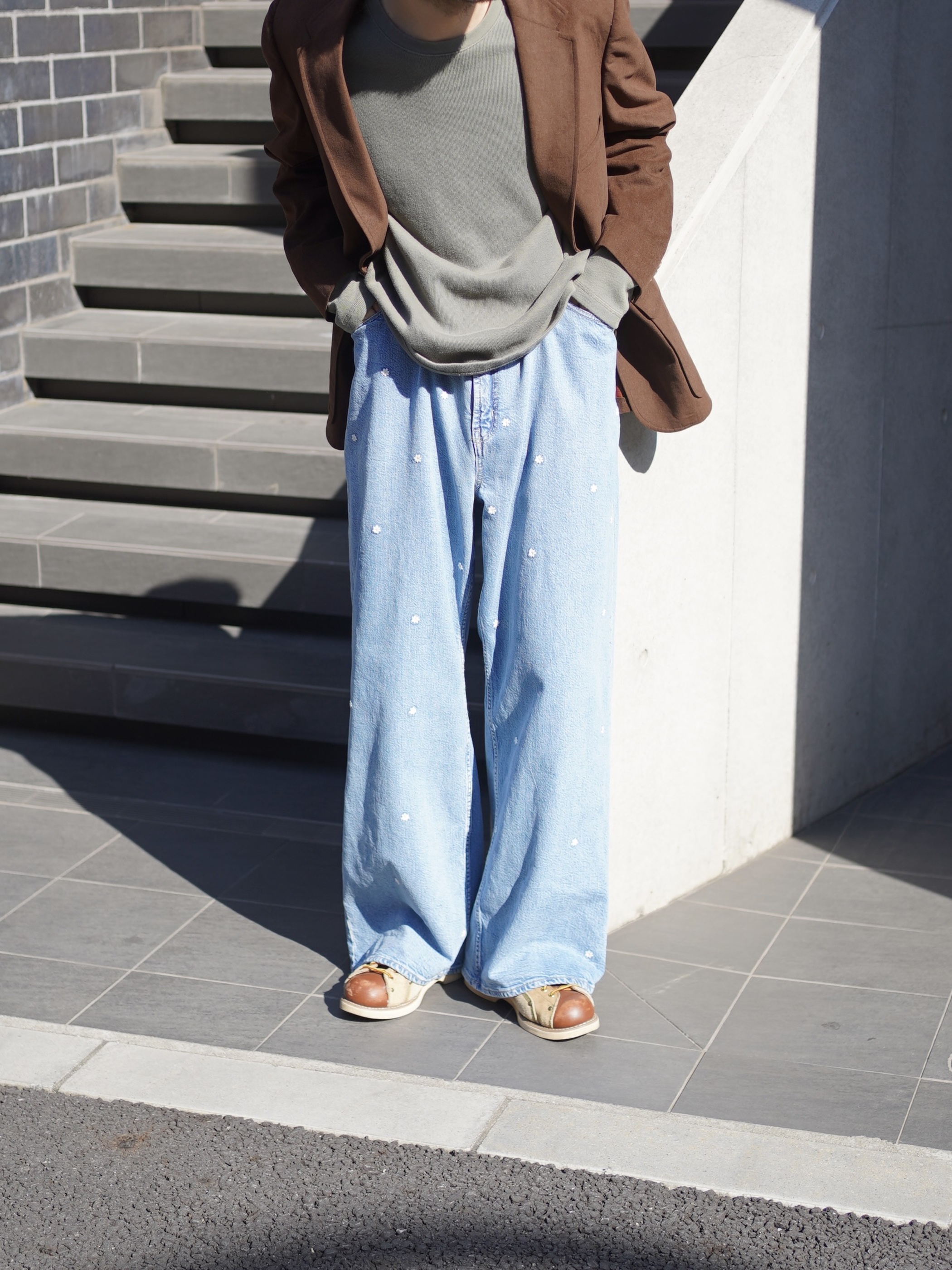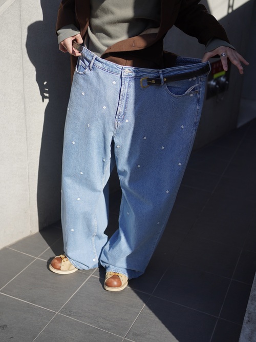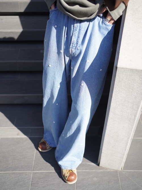 ・NOS. OLD NAVY Super wide silhouette floral pattern denim pants