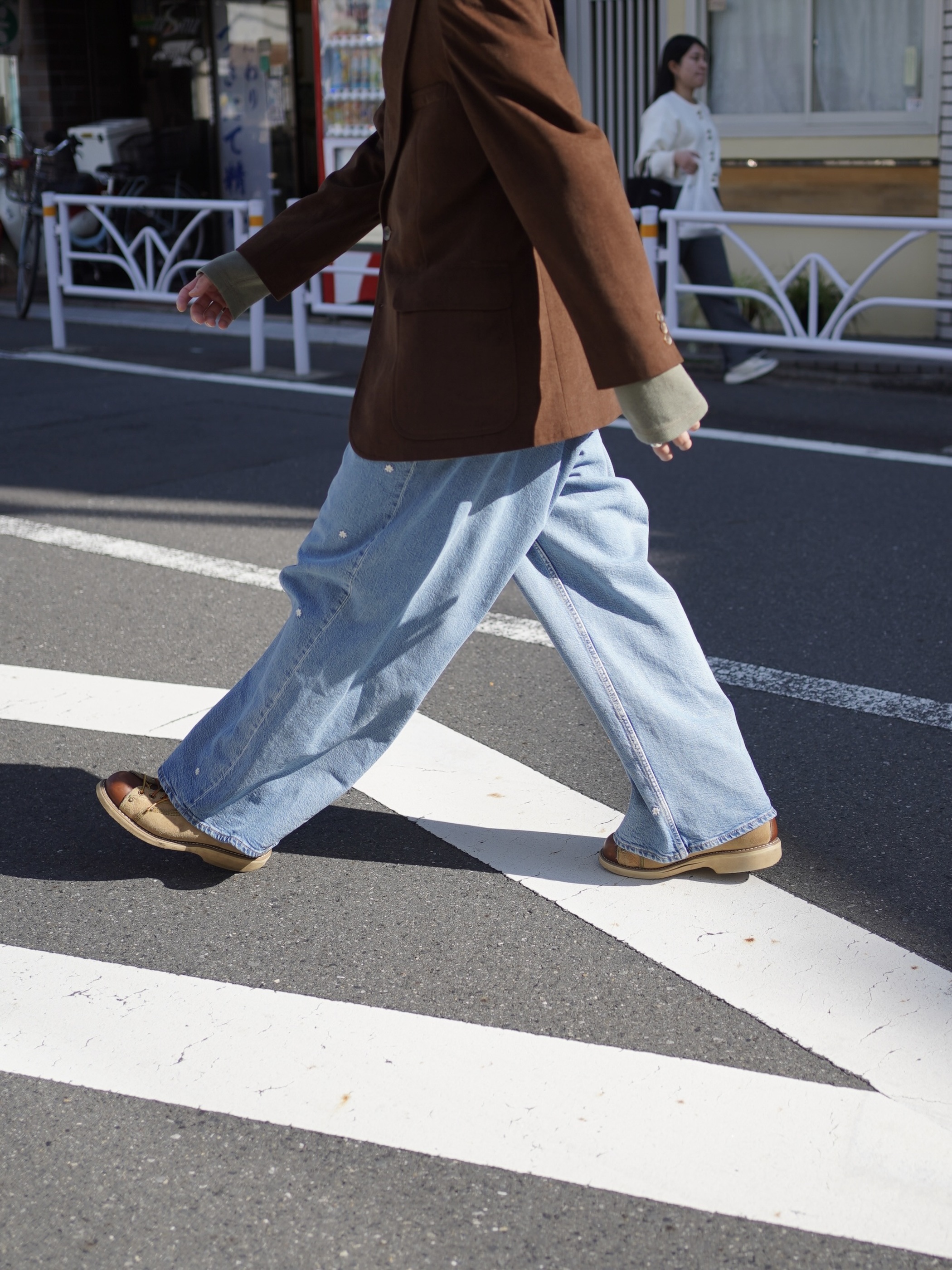 成人男性2人分を包み込めるウエストをギュッと絞ることで完成する、比類ないワイドルーズシルエット。