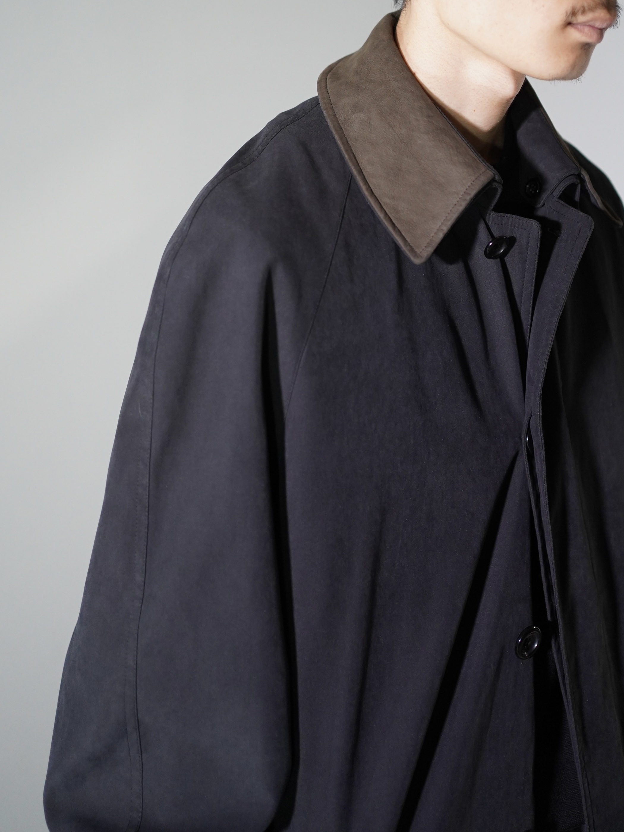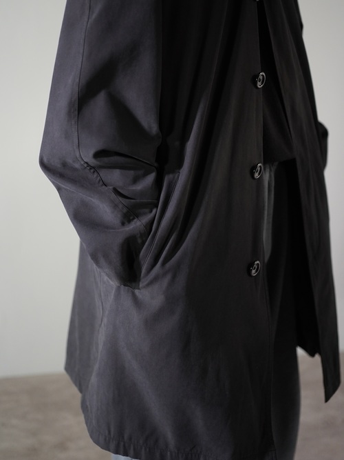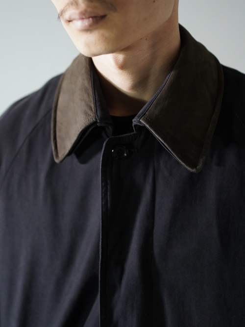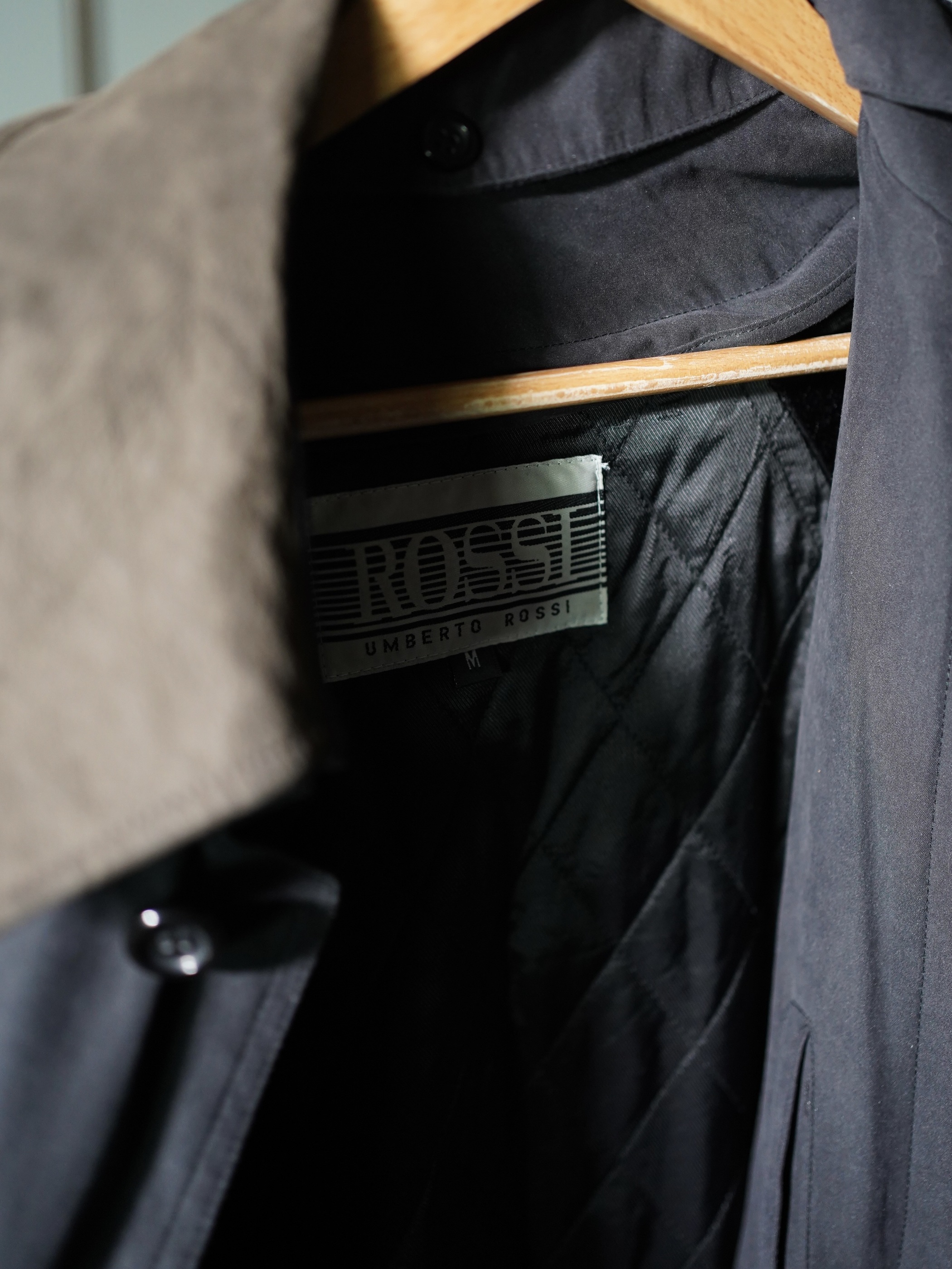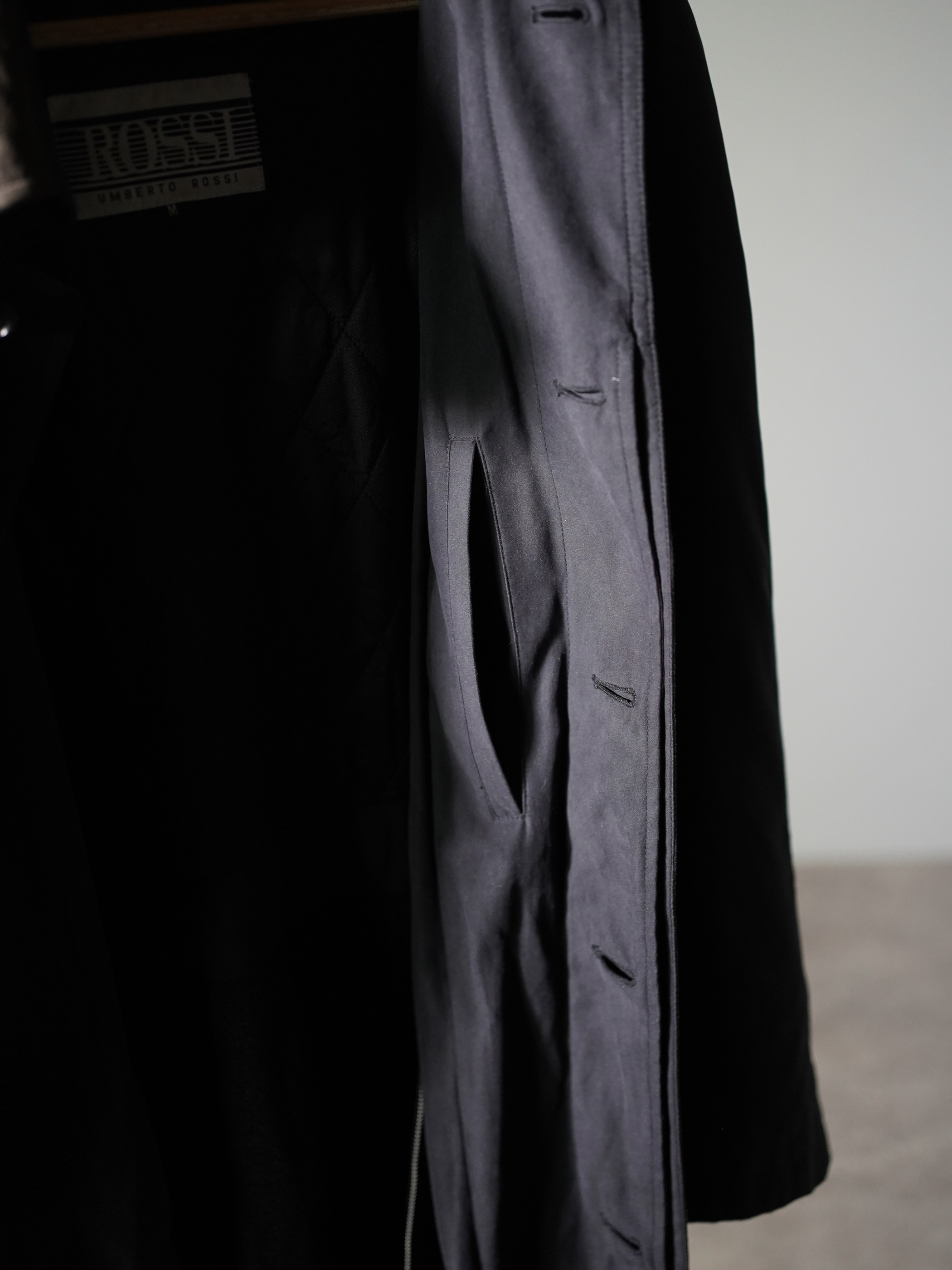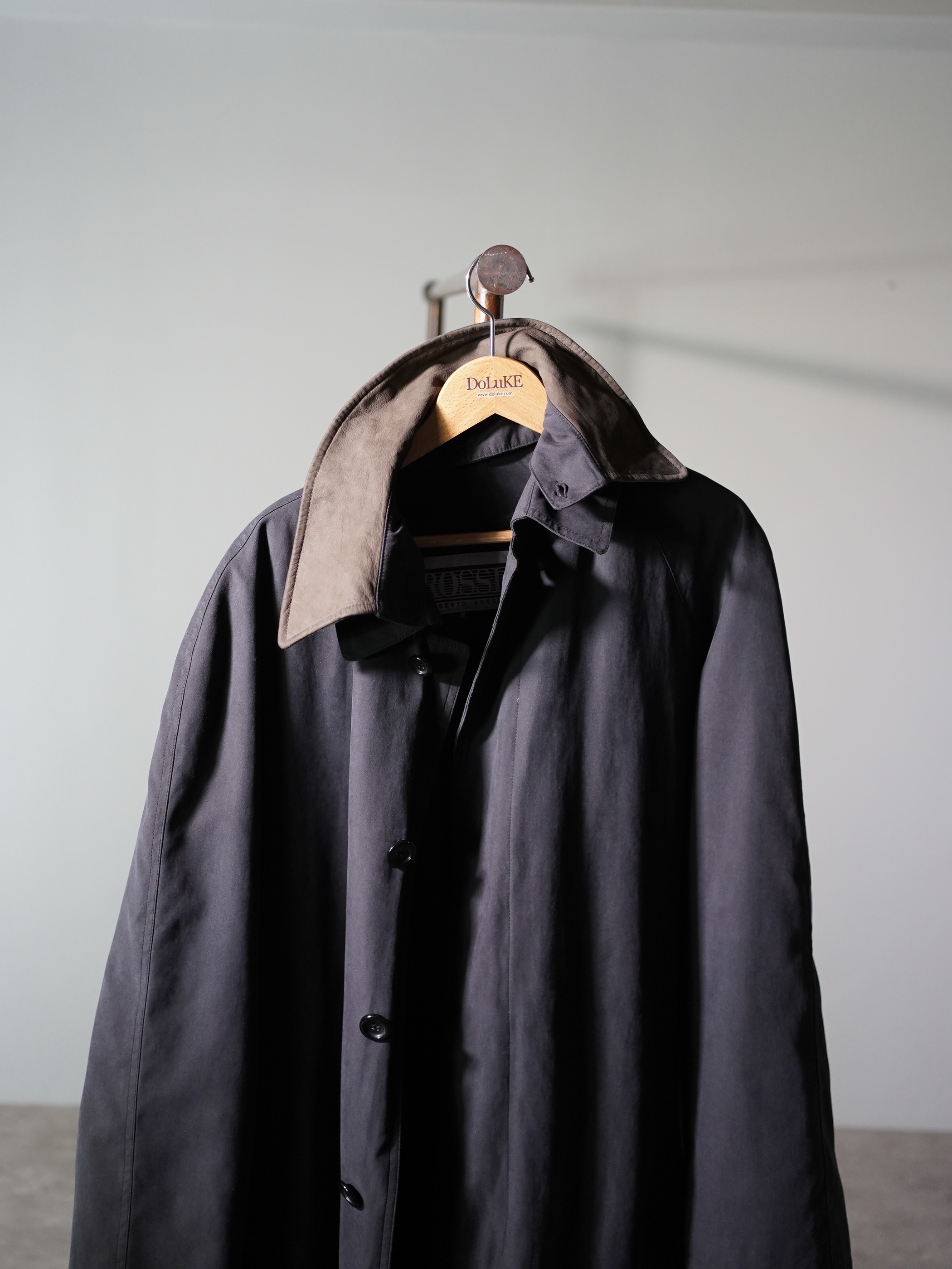 1990's ROSSI Leather collar nylon×acetate half coat/Detachable liner