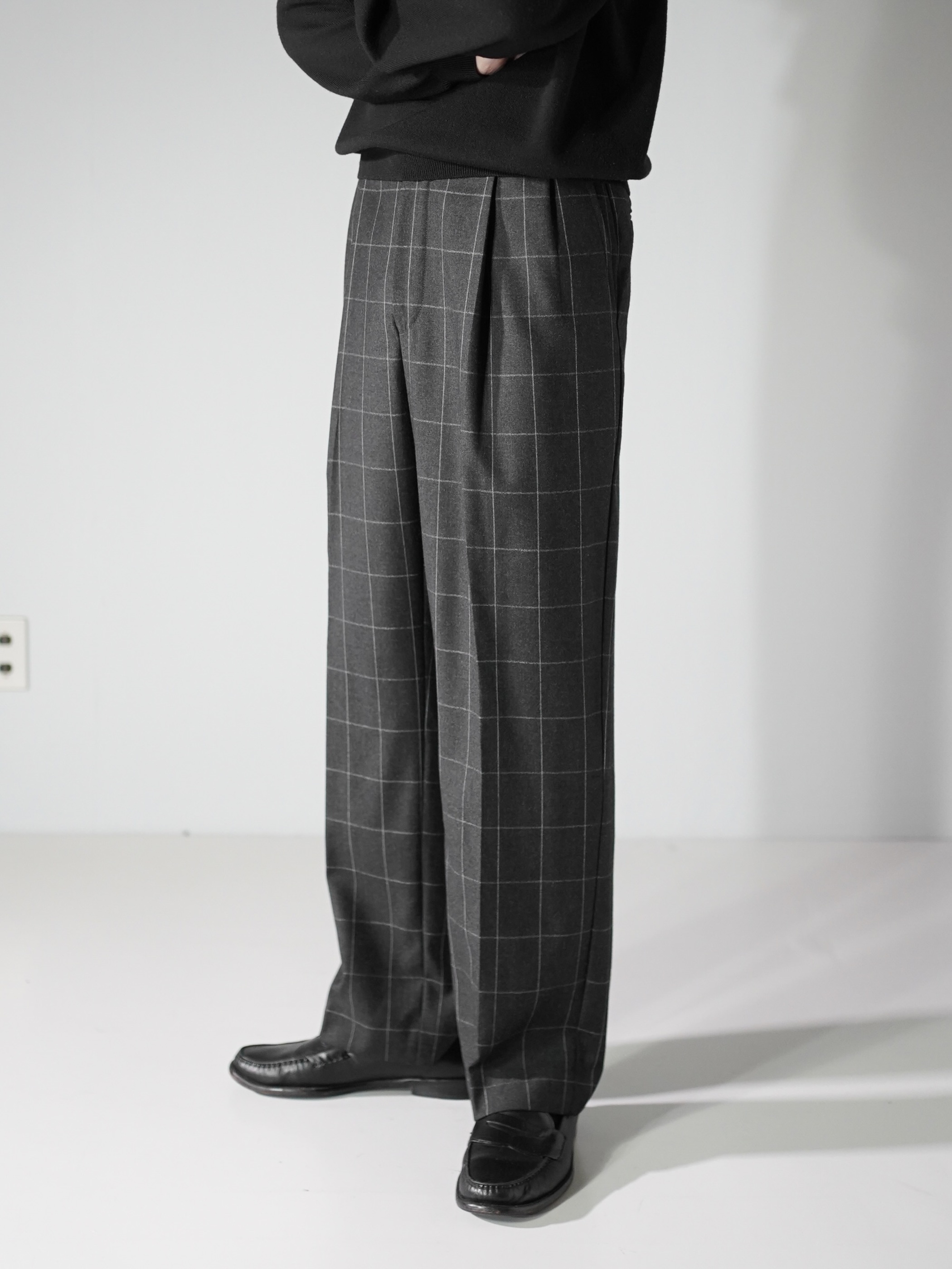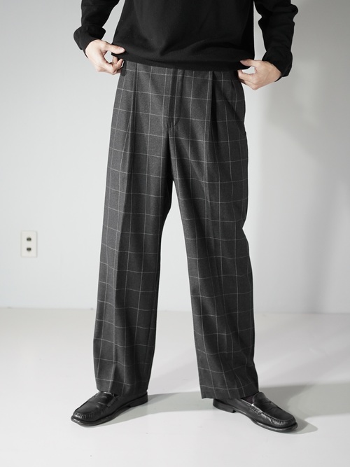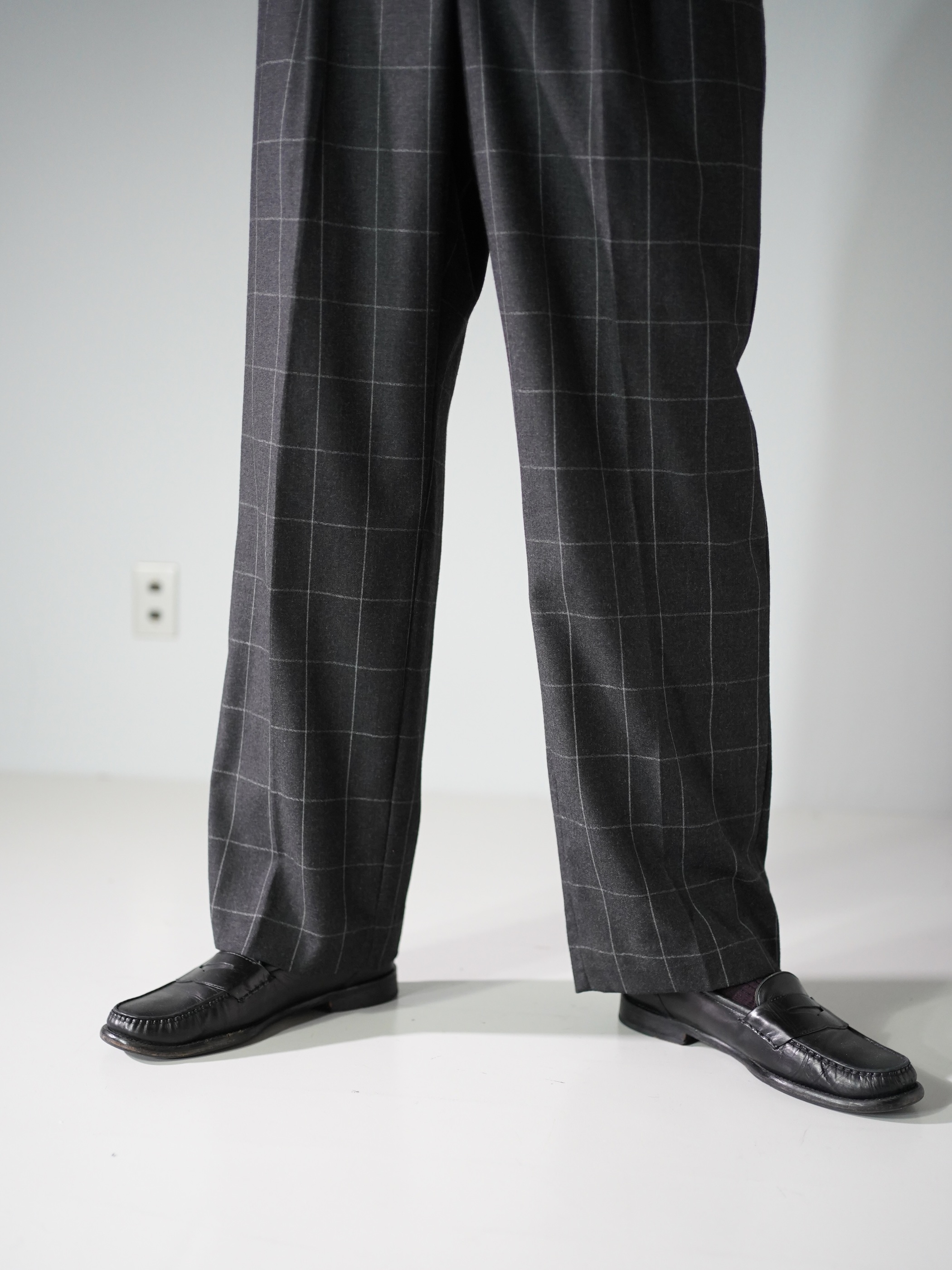 ・Paul Fredrick Windowpane check 2tuck dress trousers / Made in USA