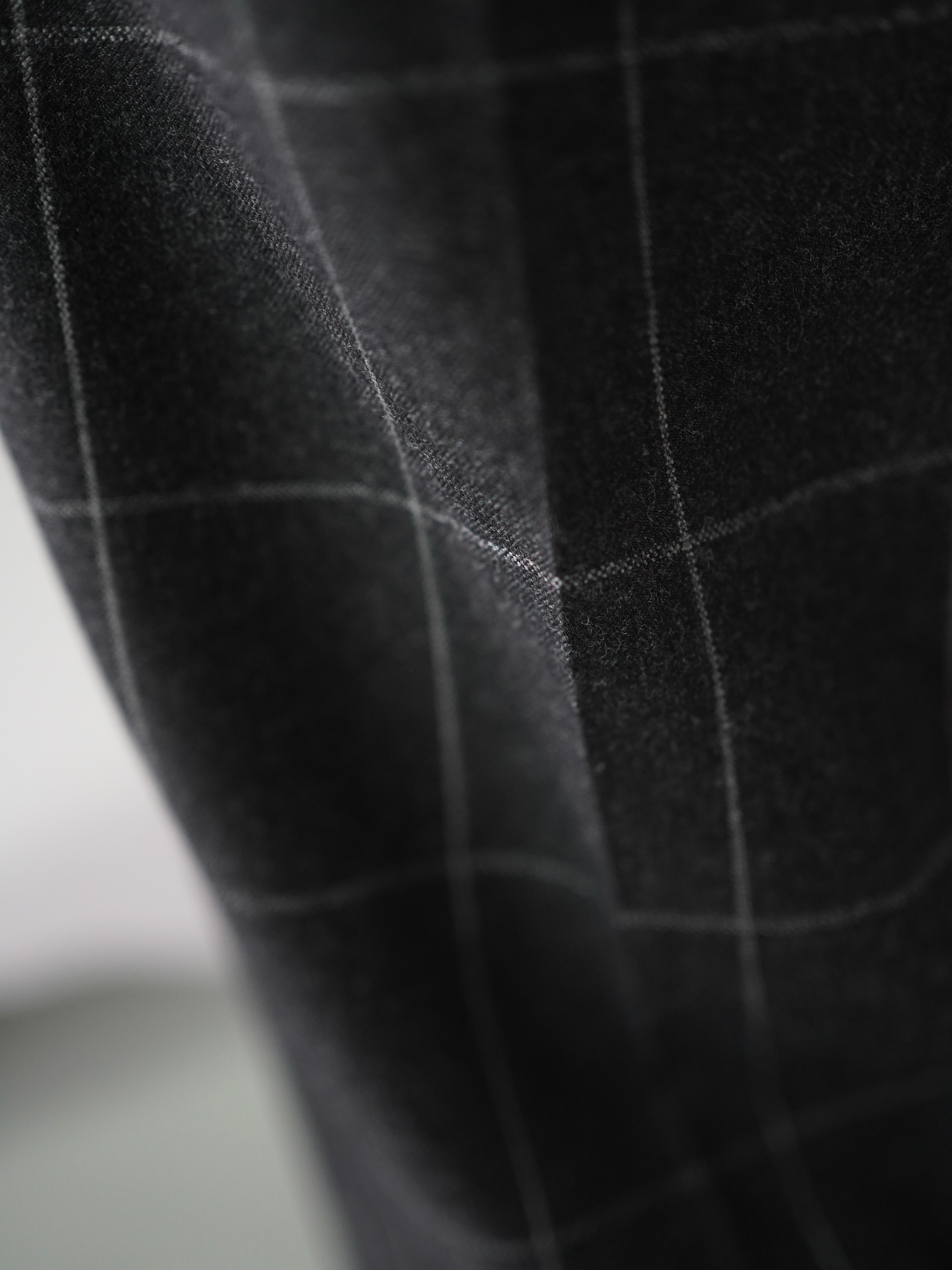 英国の伝統的な模様「ウィンドウペン」の弱起毛ウールスラックス。