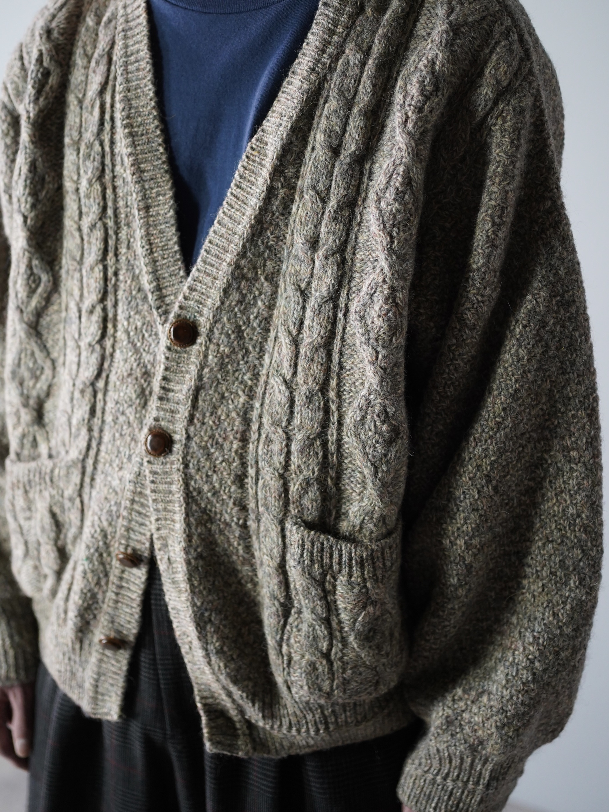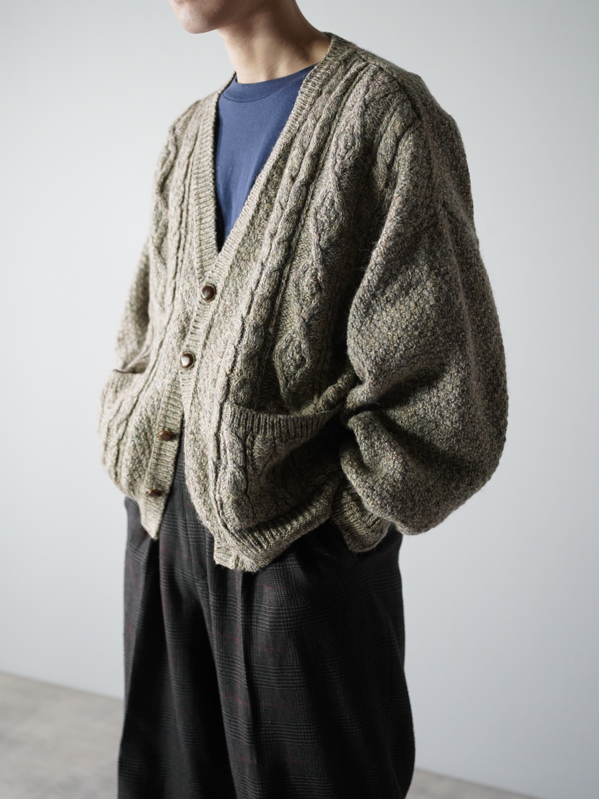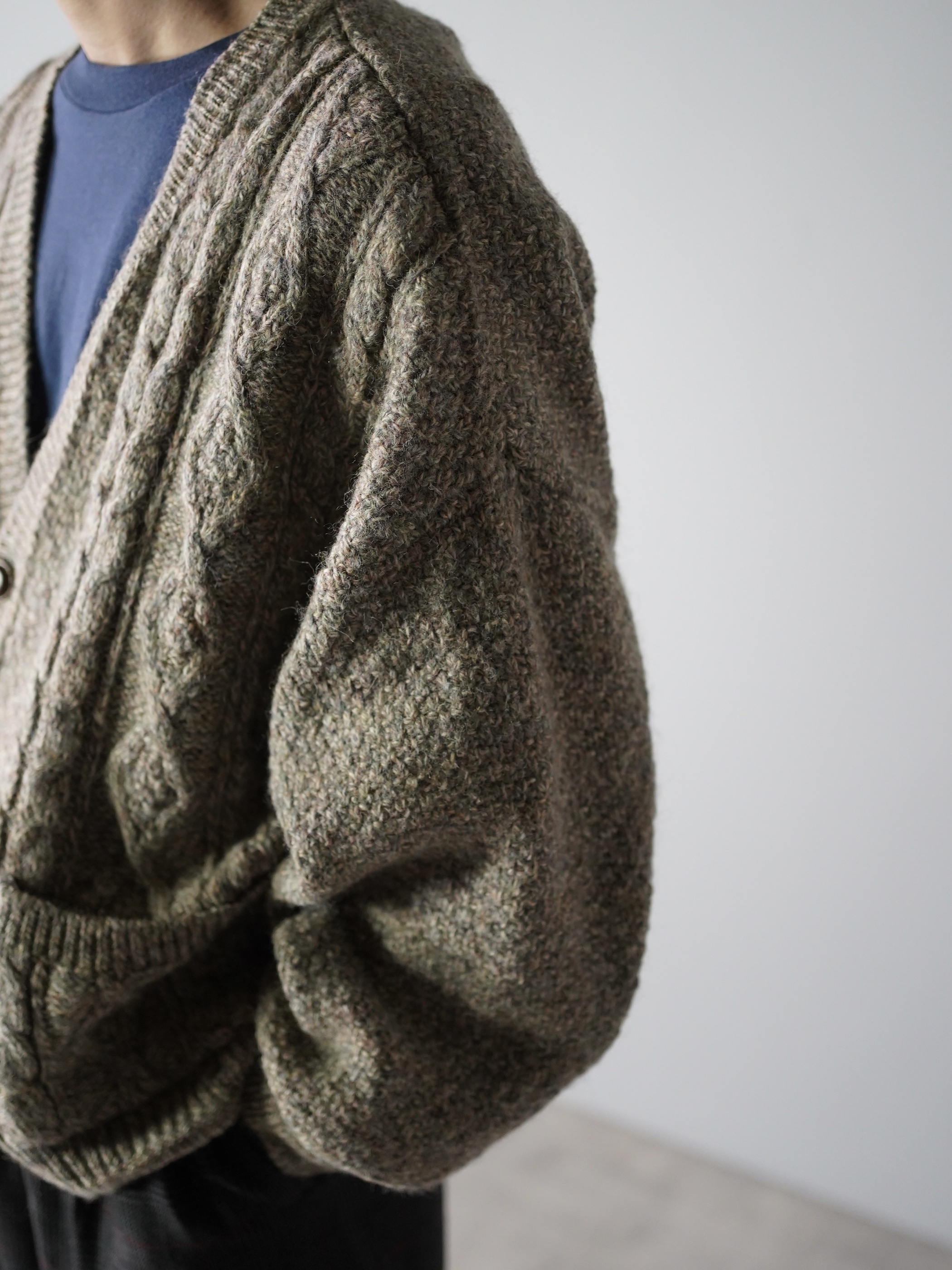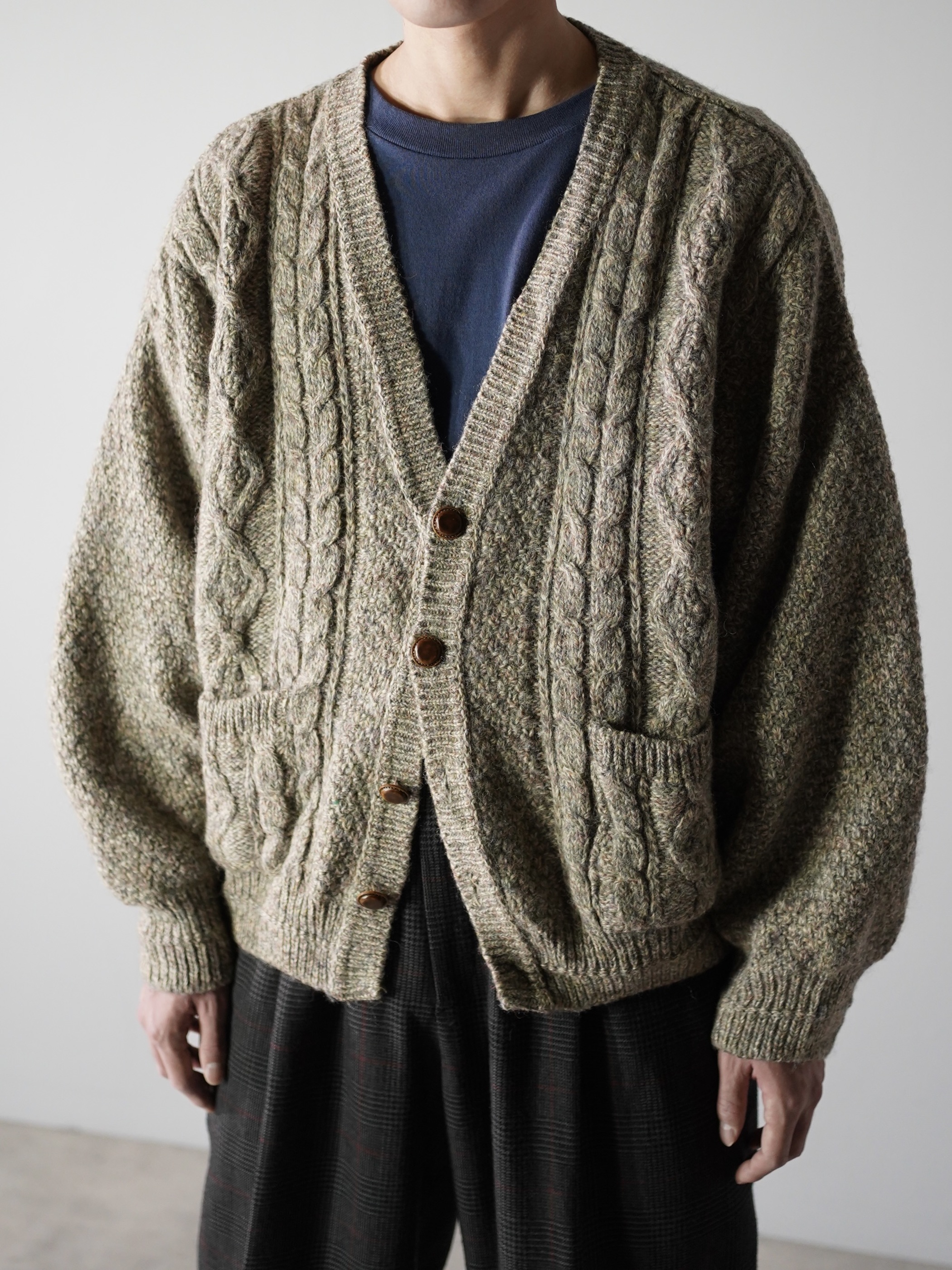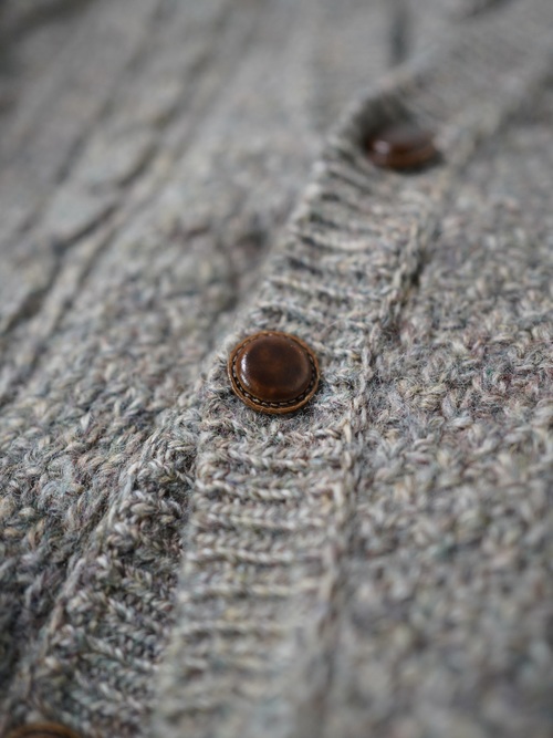 スコットランド生地・イギリス仕立てのニットカーディガン。