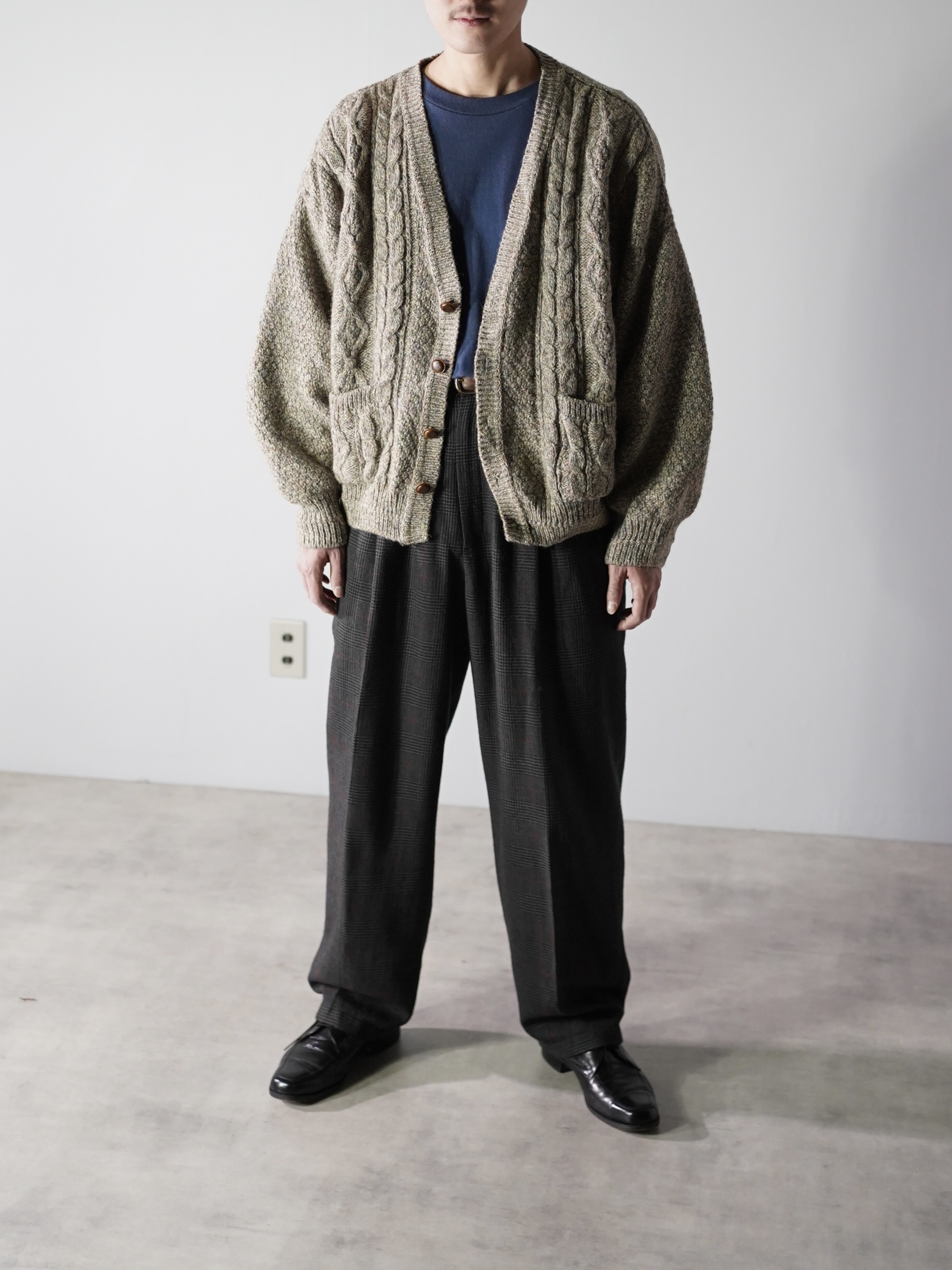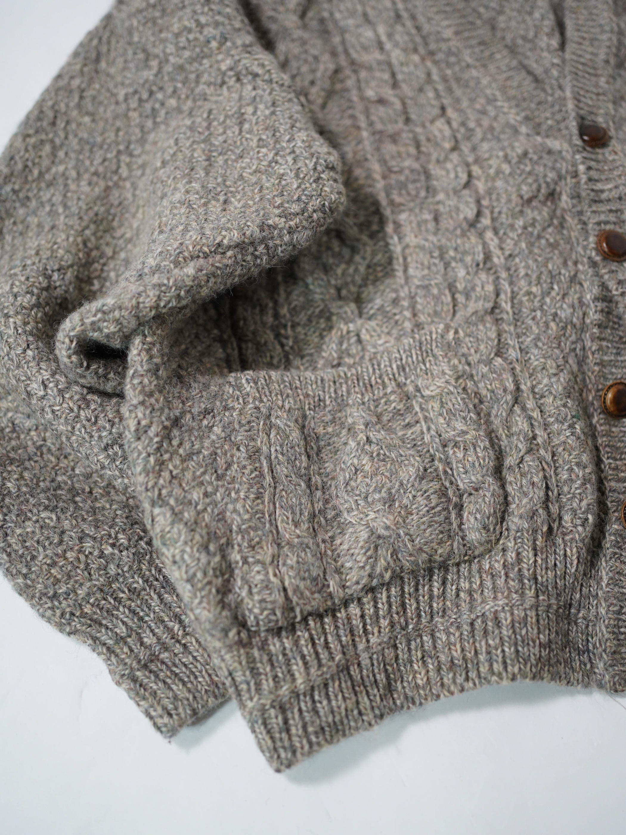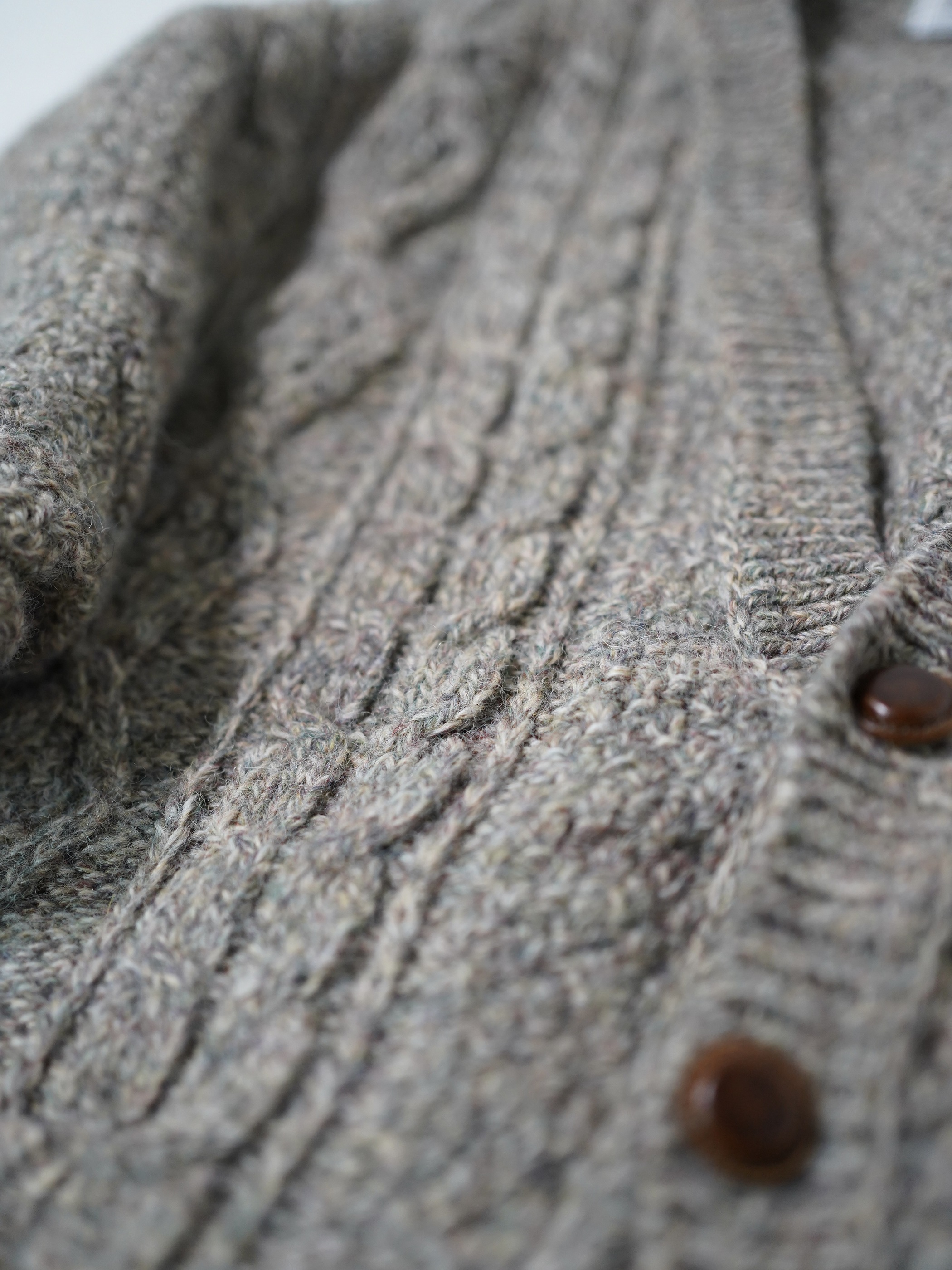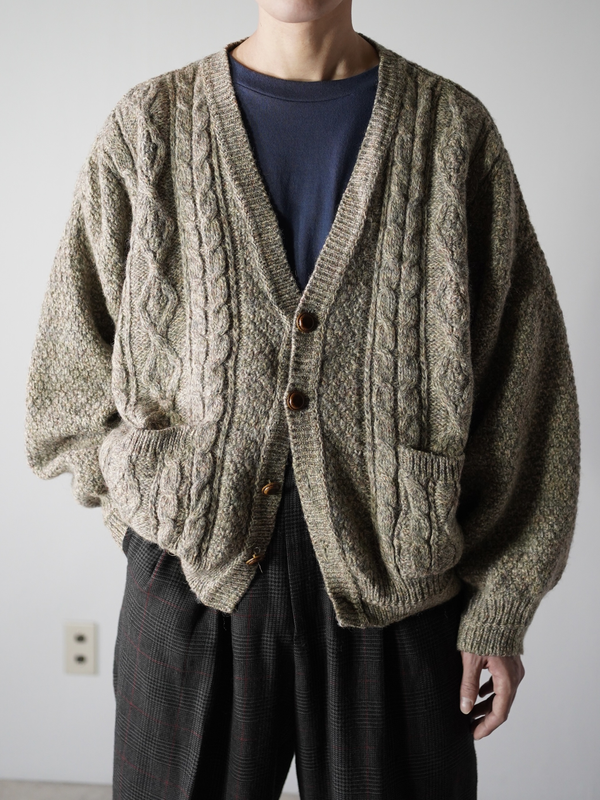 スコットランド生地・イギリス仕立てのニットカーディガン。