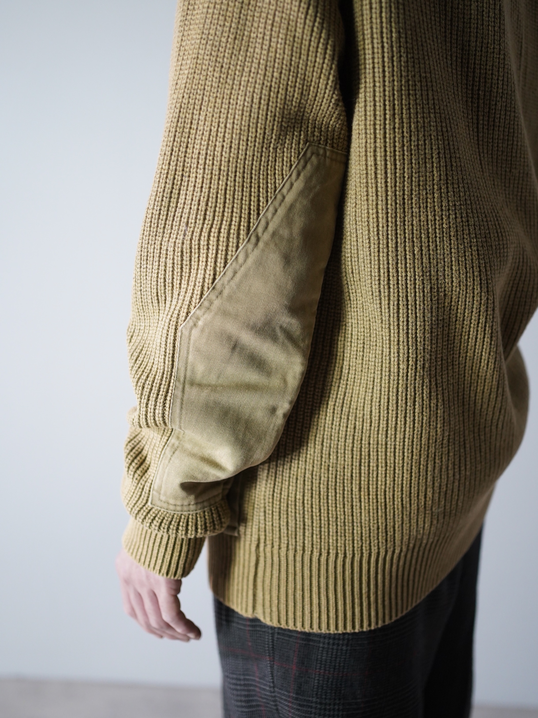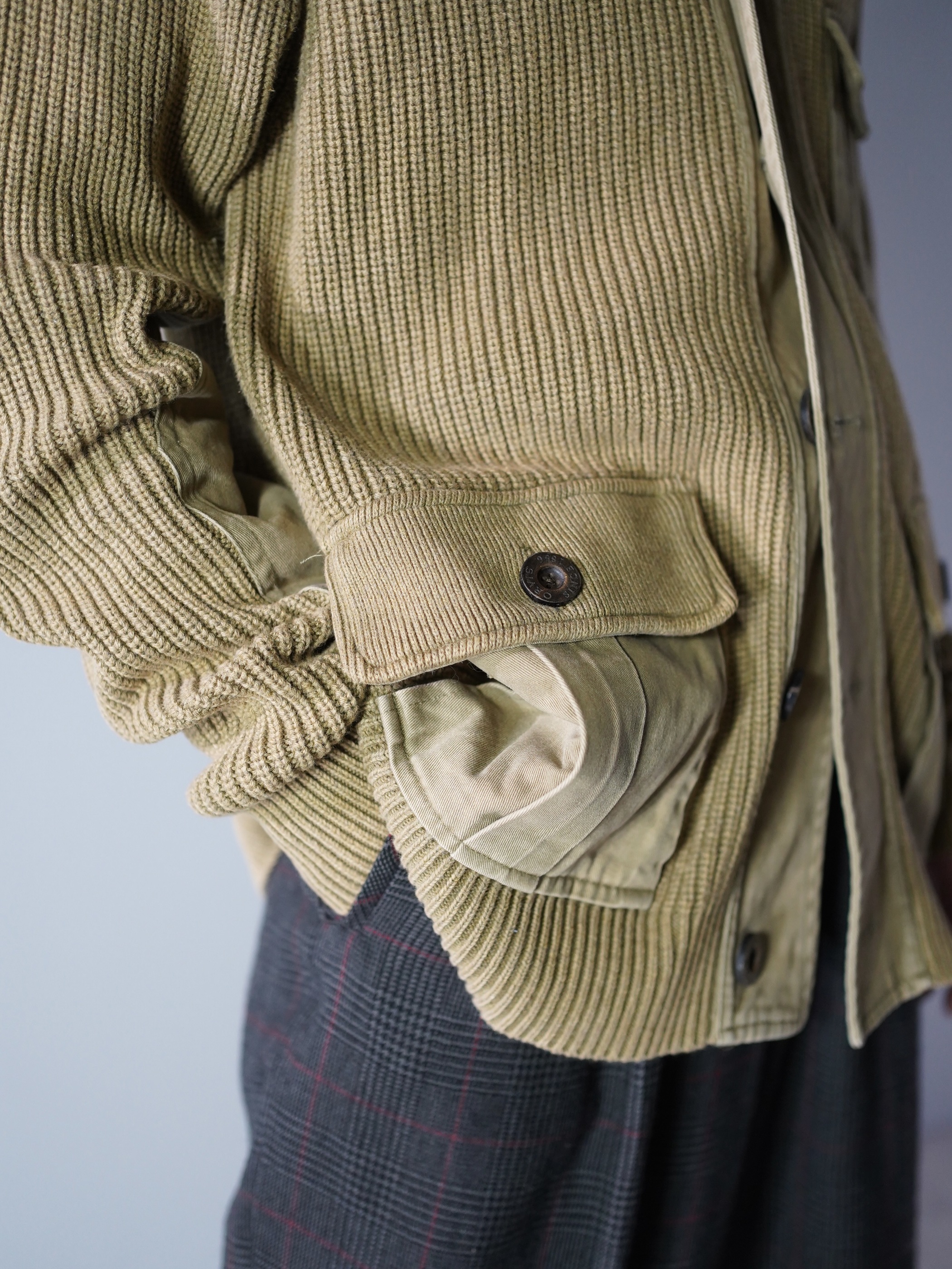 天竺編み・畦編みでニッティングされた「ORVIS」のデザインニットジャケット。