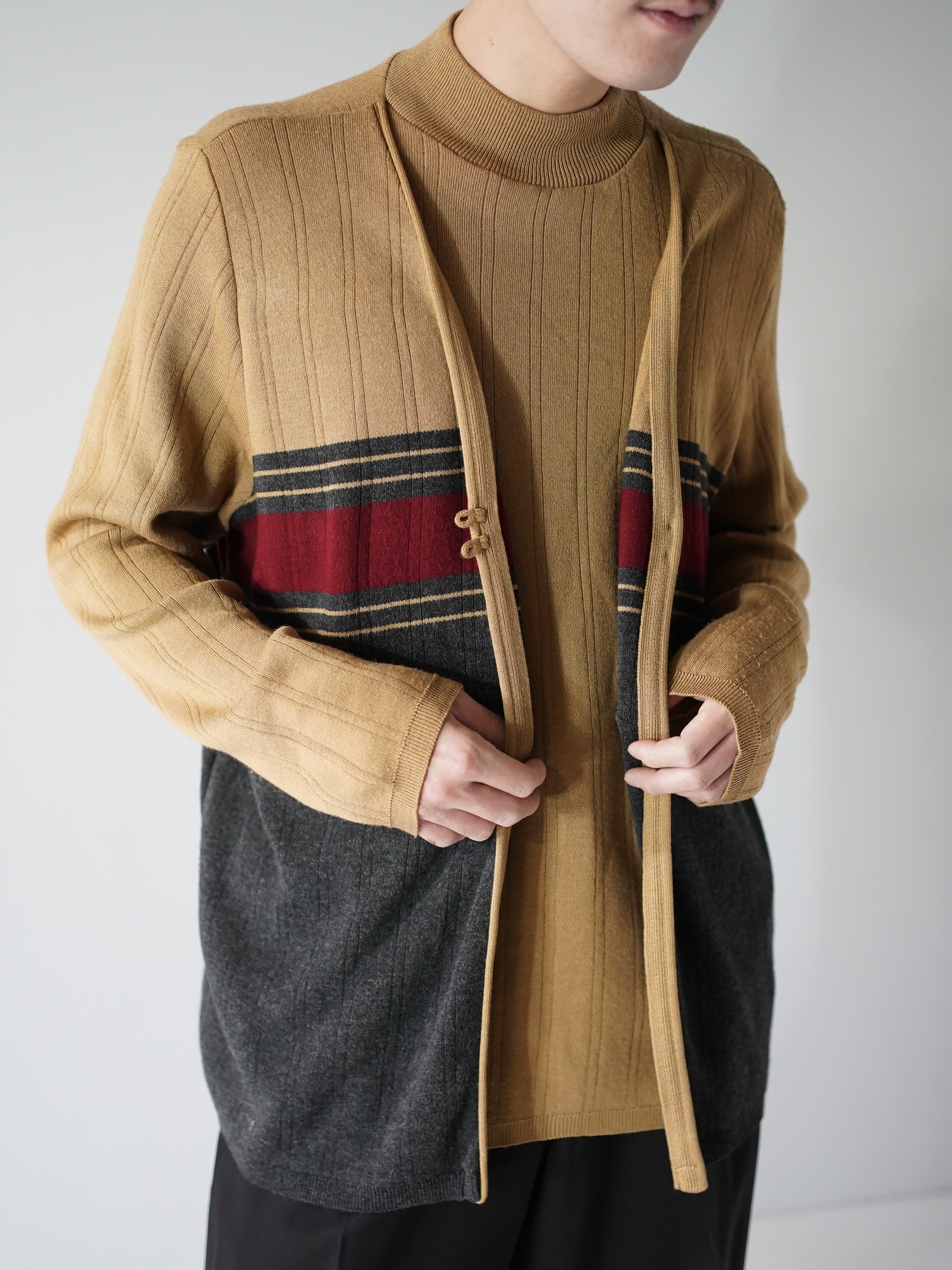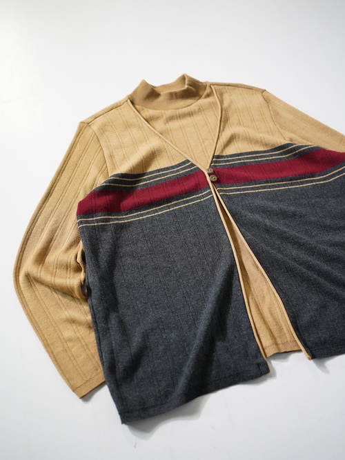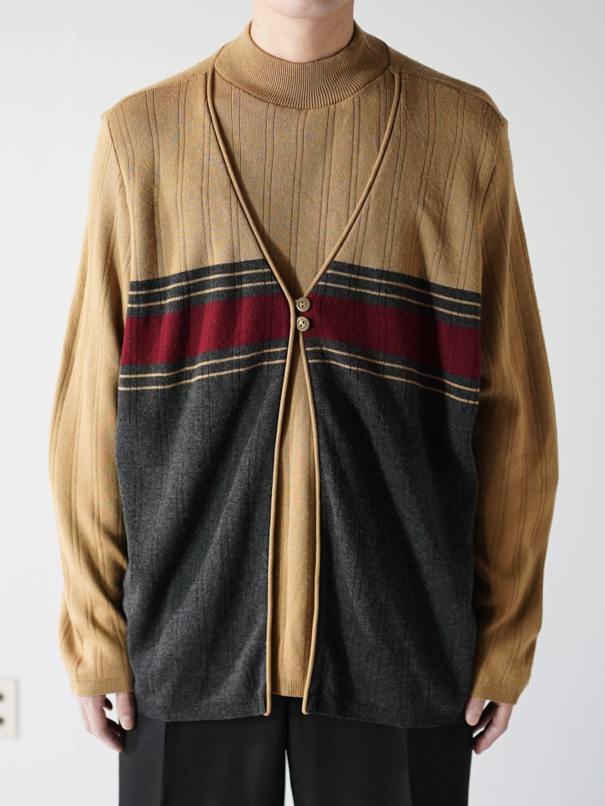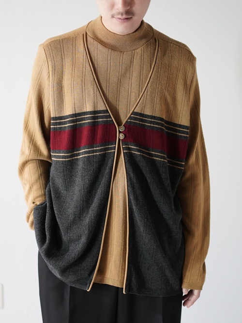 ・1990's ALFRED DUNNER Fake layered mock neck knit sweter / Made in USA