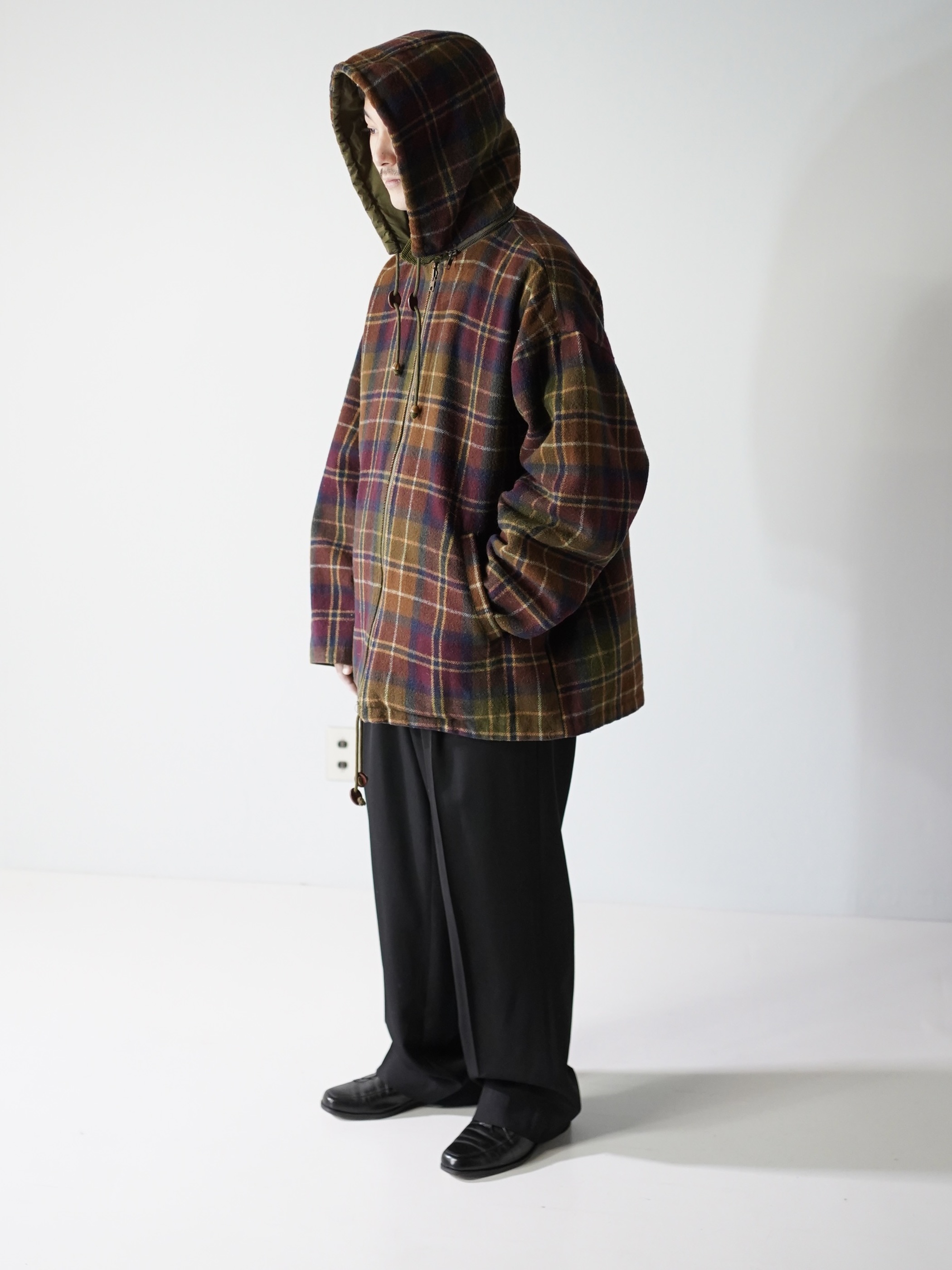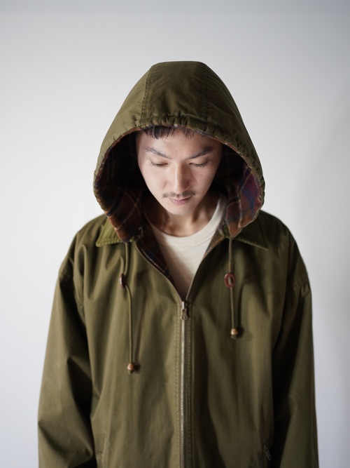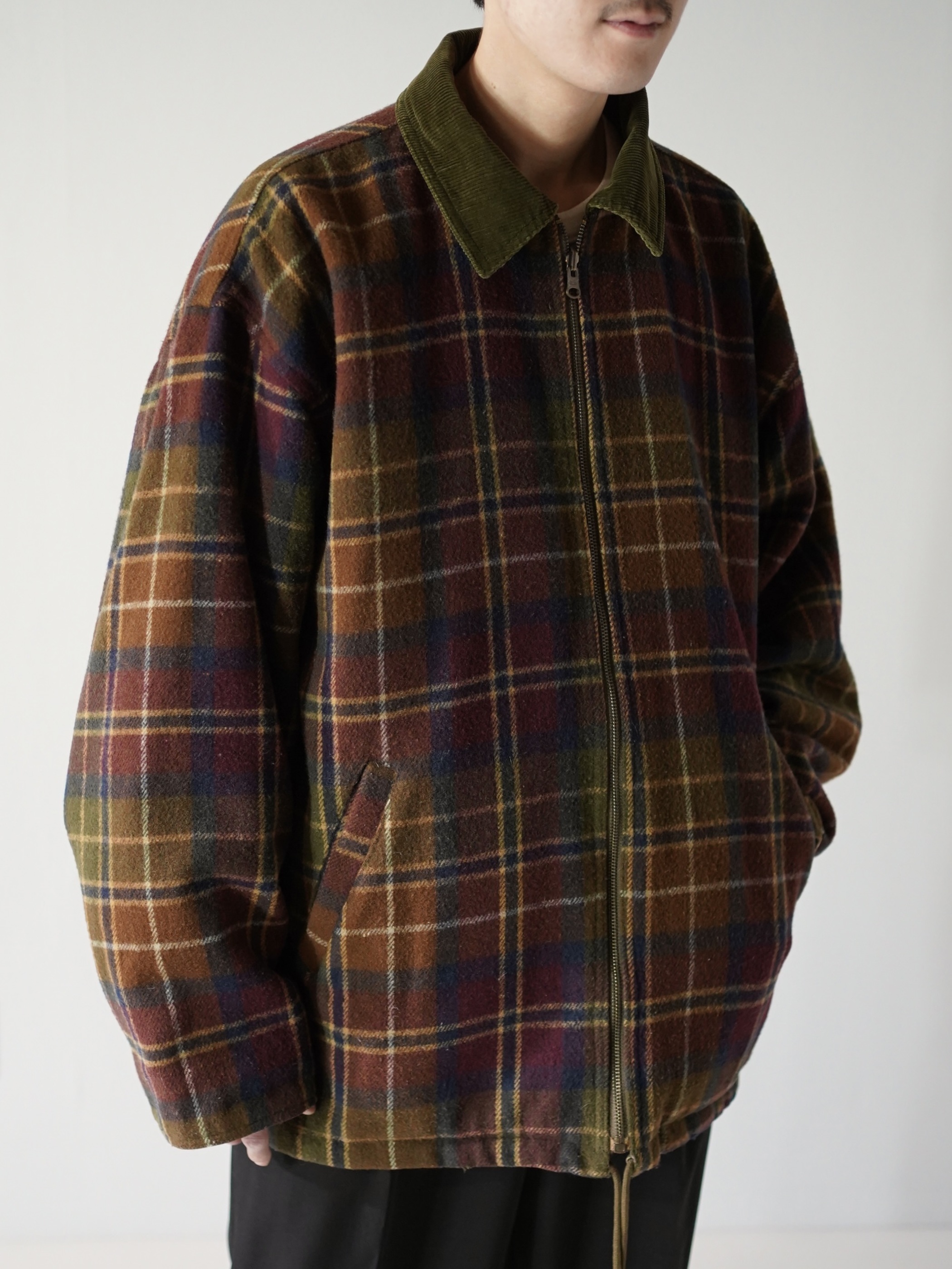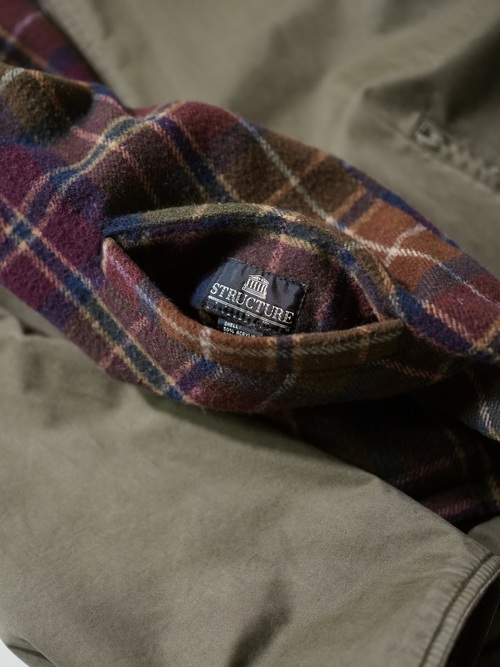 ・1990's STRUCTURE Cotton shell × flannel reversible zip blouson / with Detachable hood