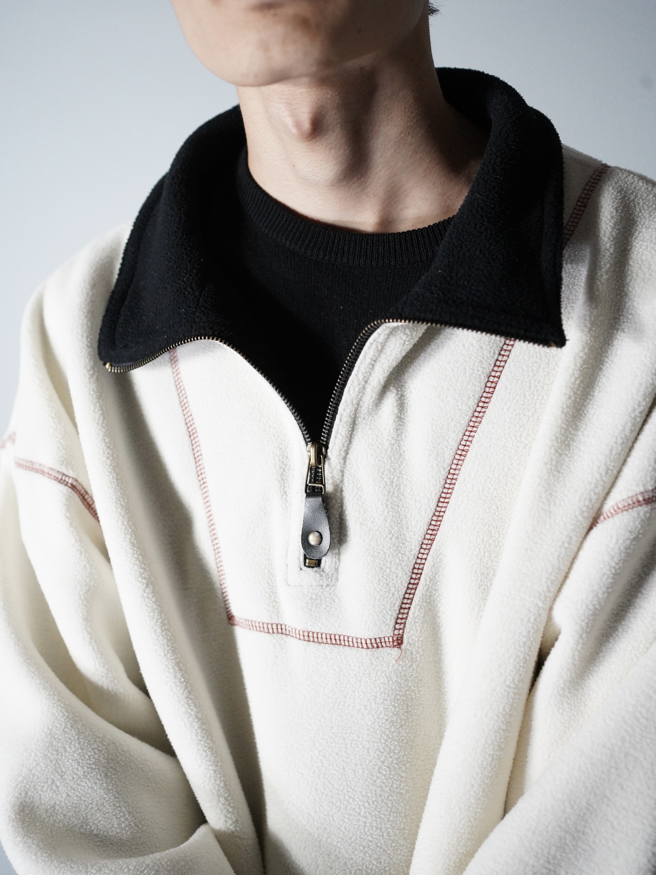 「スポーツ」×「クラシック」の中間を突いたデザイン、ハーフジップ・プルオーバーフリース。