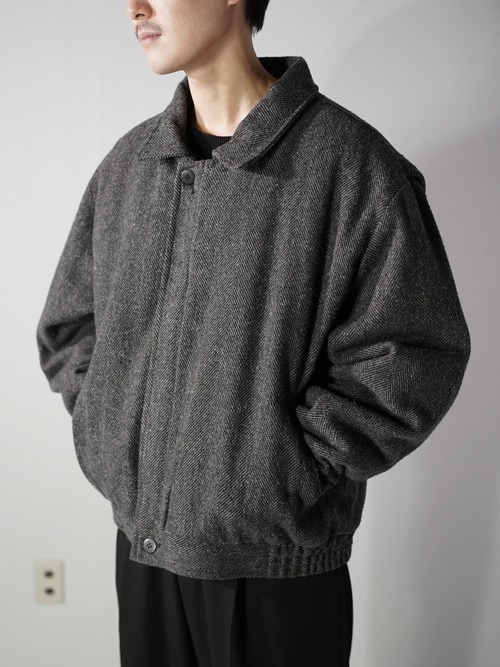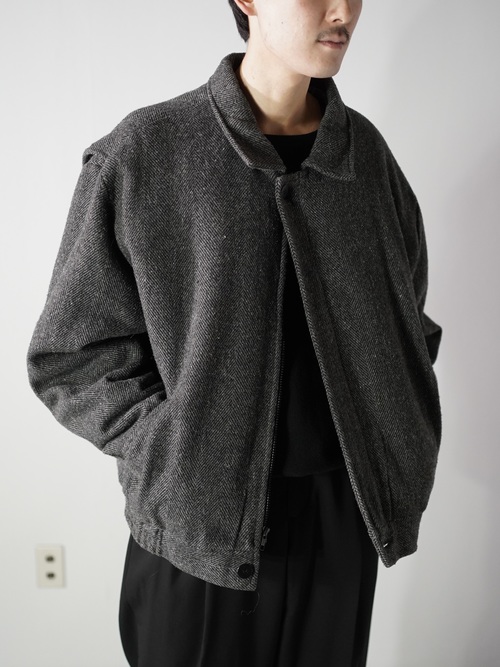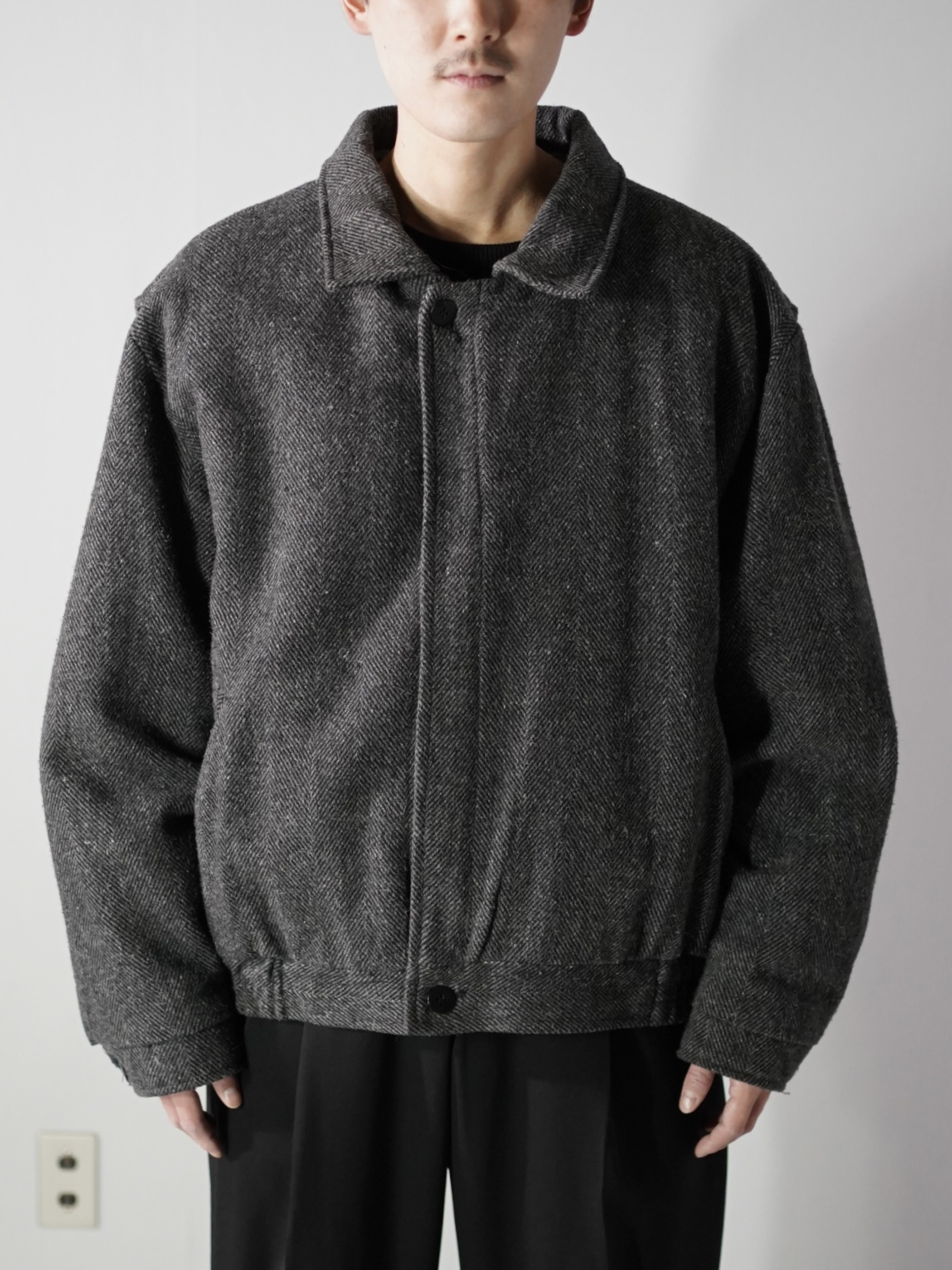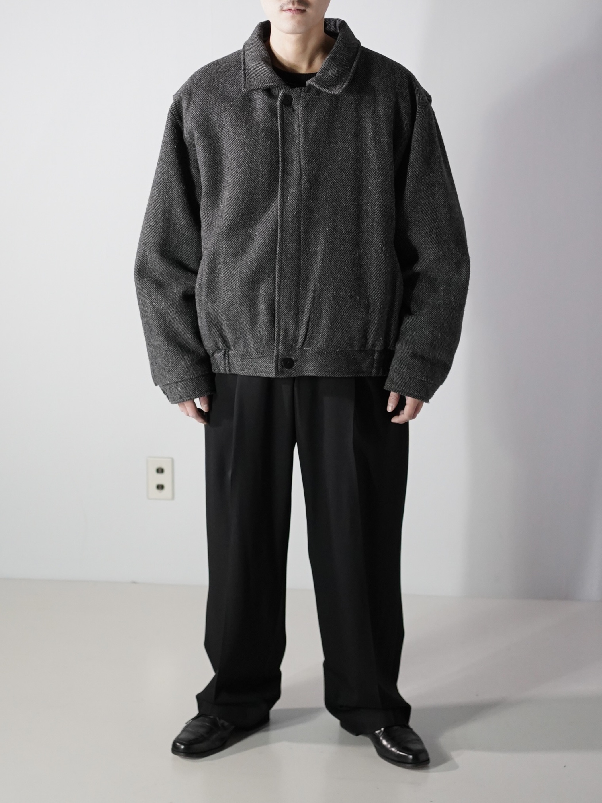 ウールメインのツイード生地ではなく、化繊メインの配合。