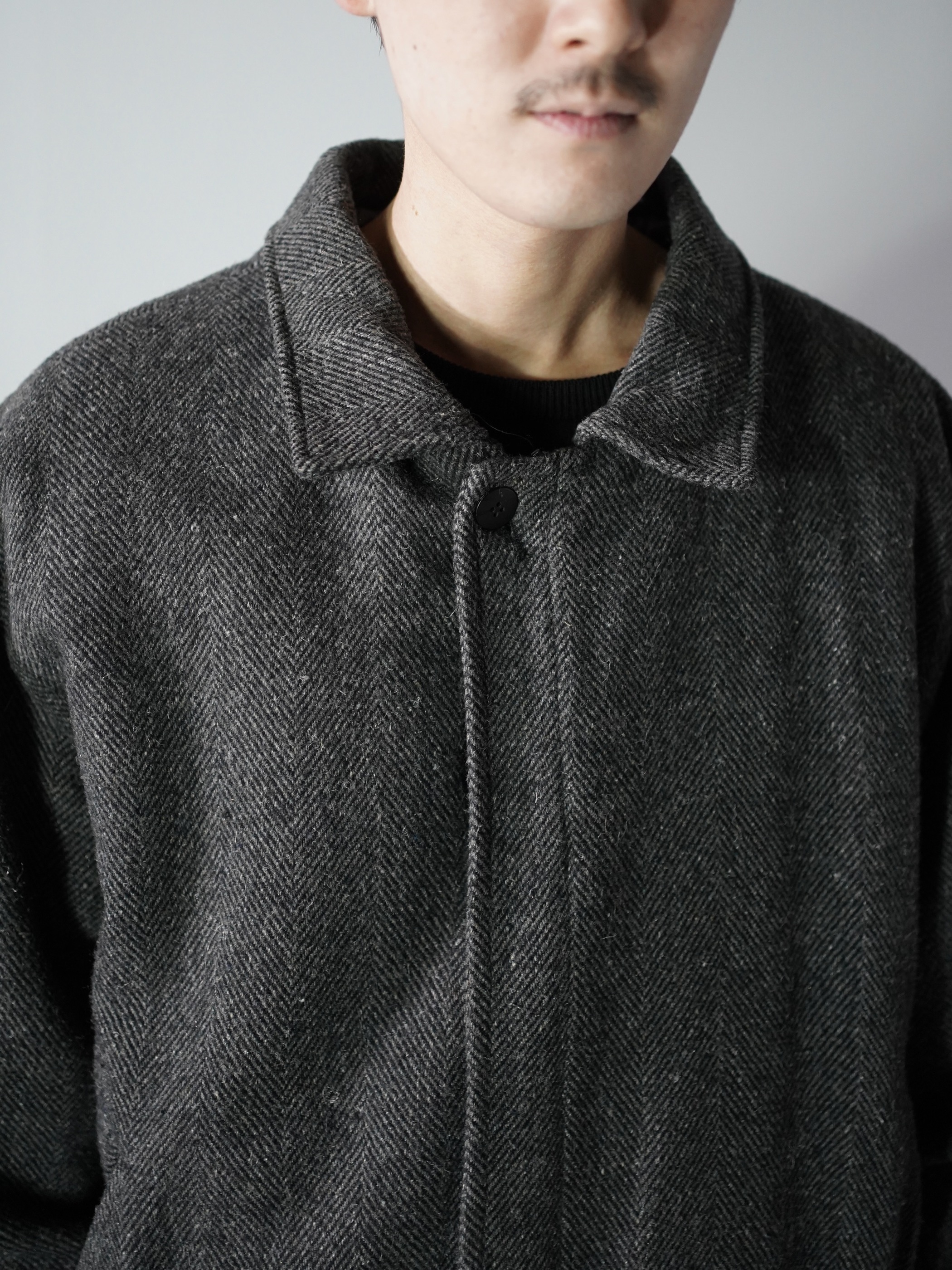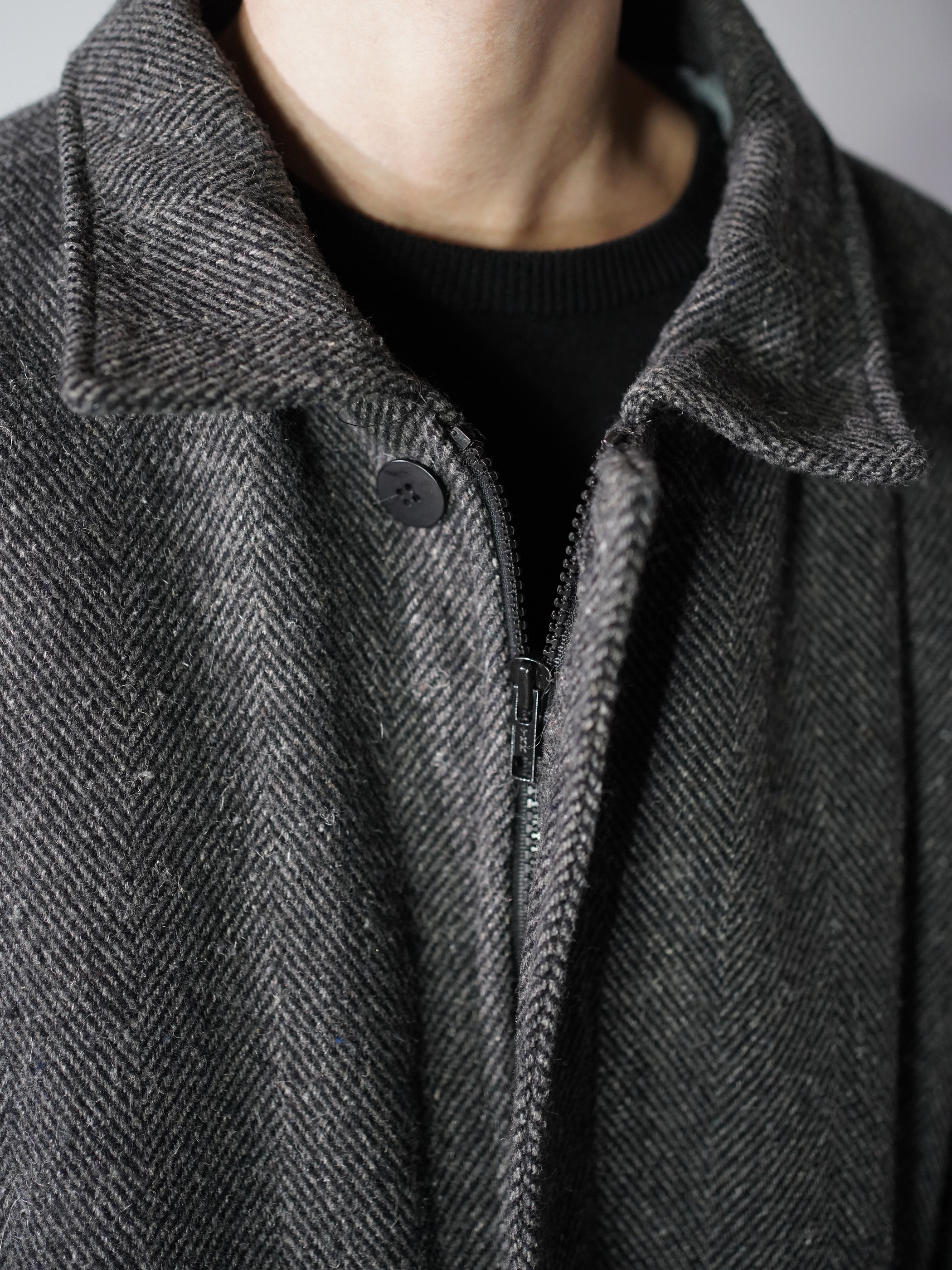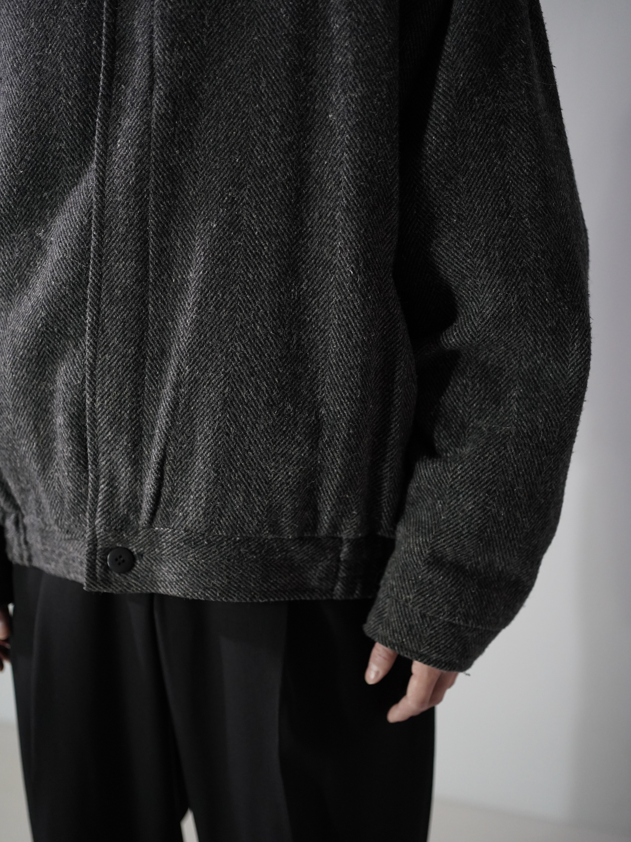 ウールメインのツイード生地ではなく、化繊メインの配合。
