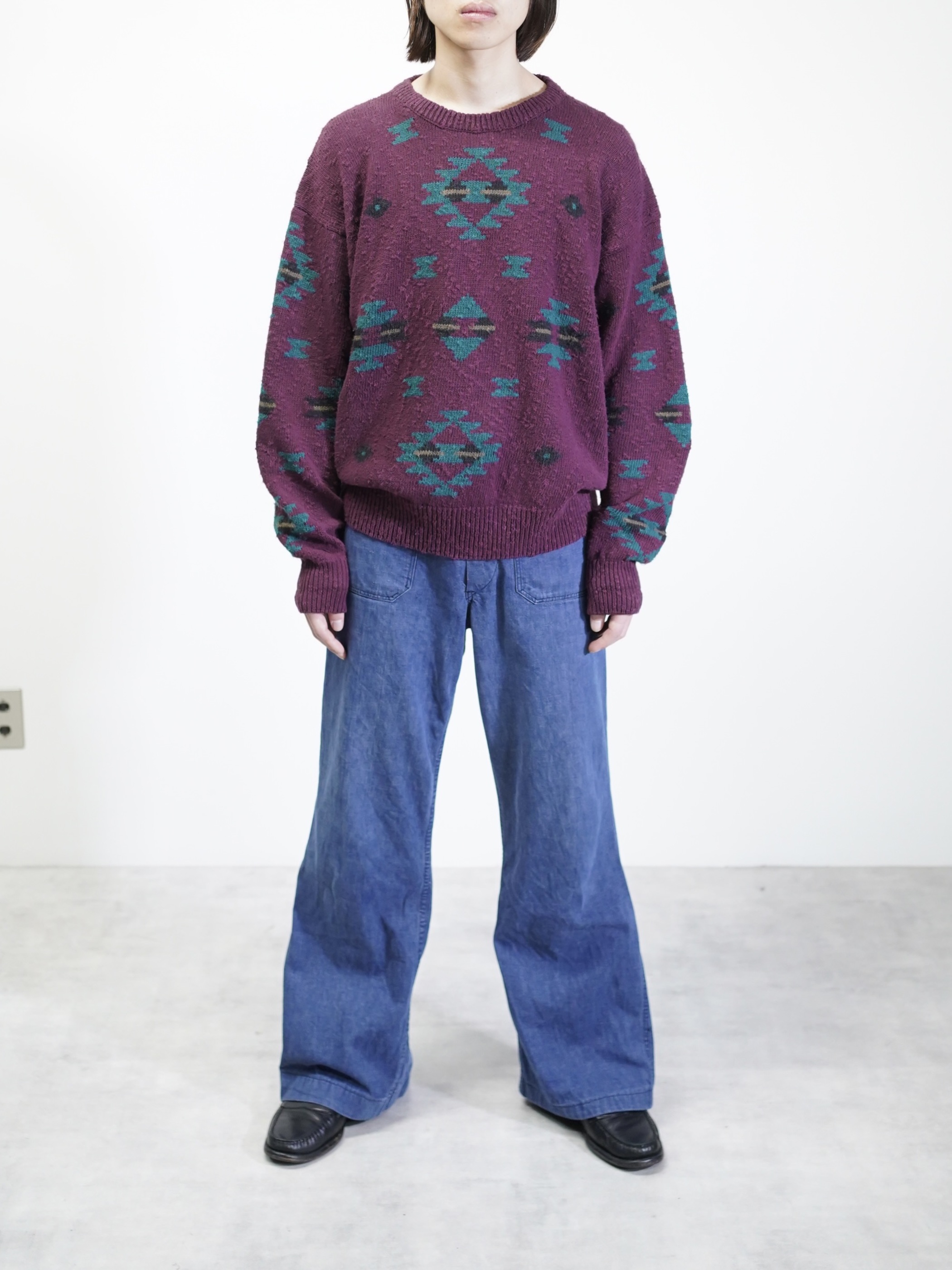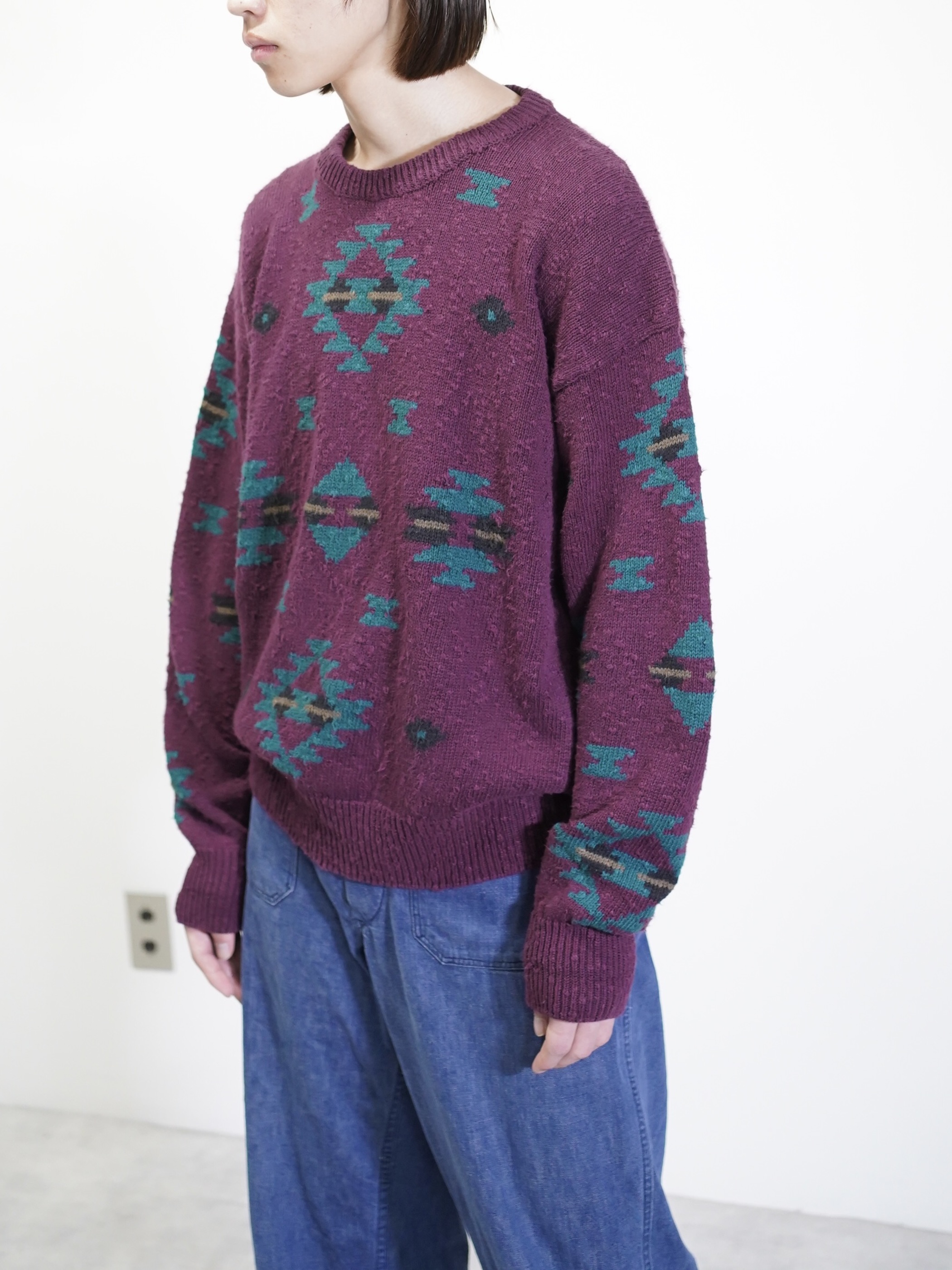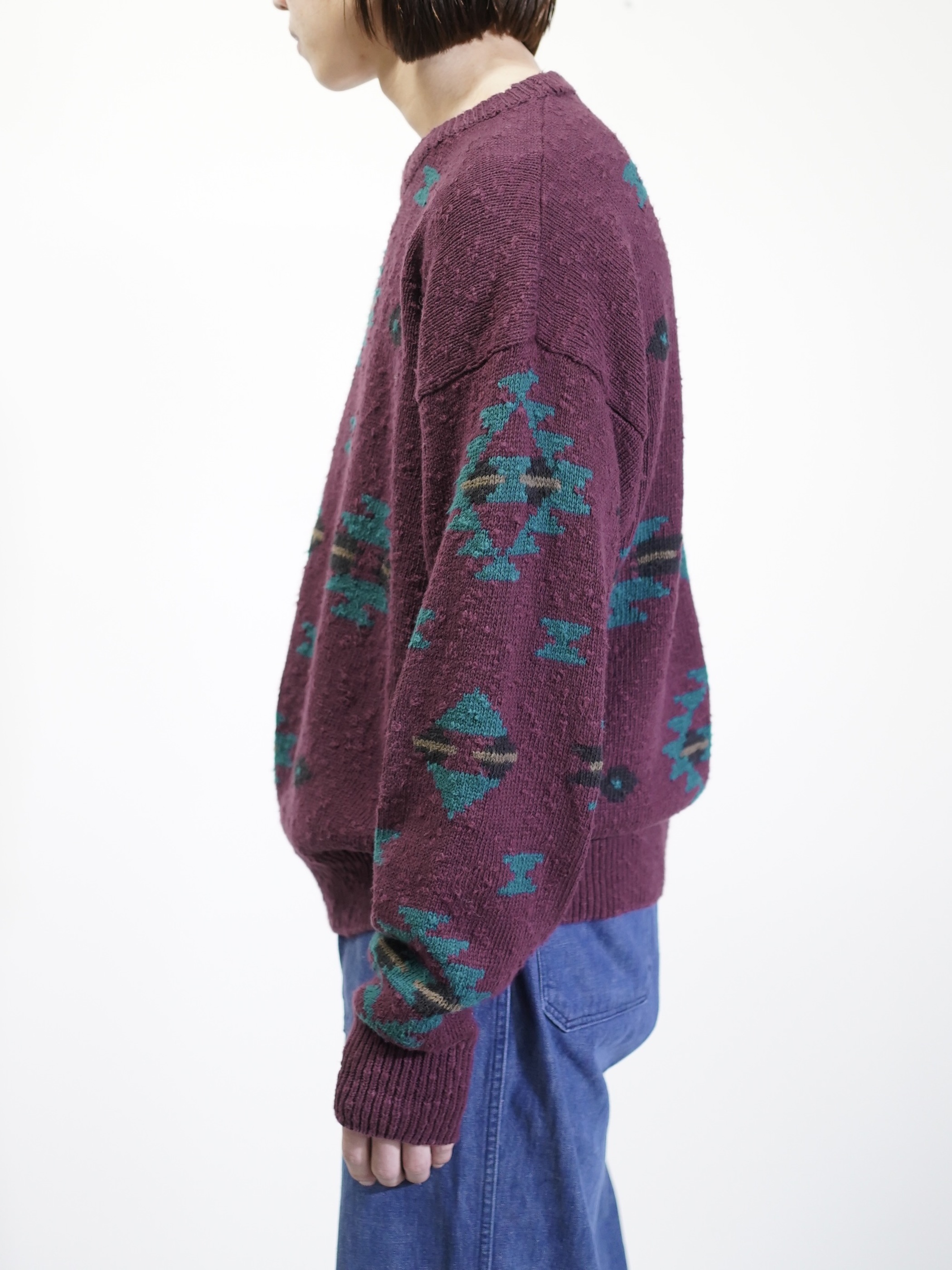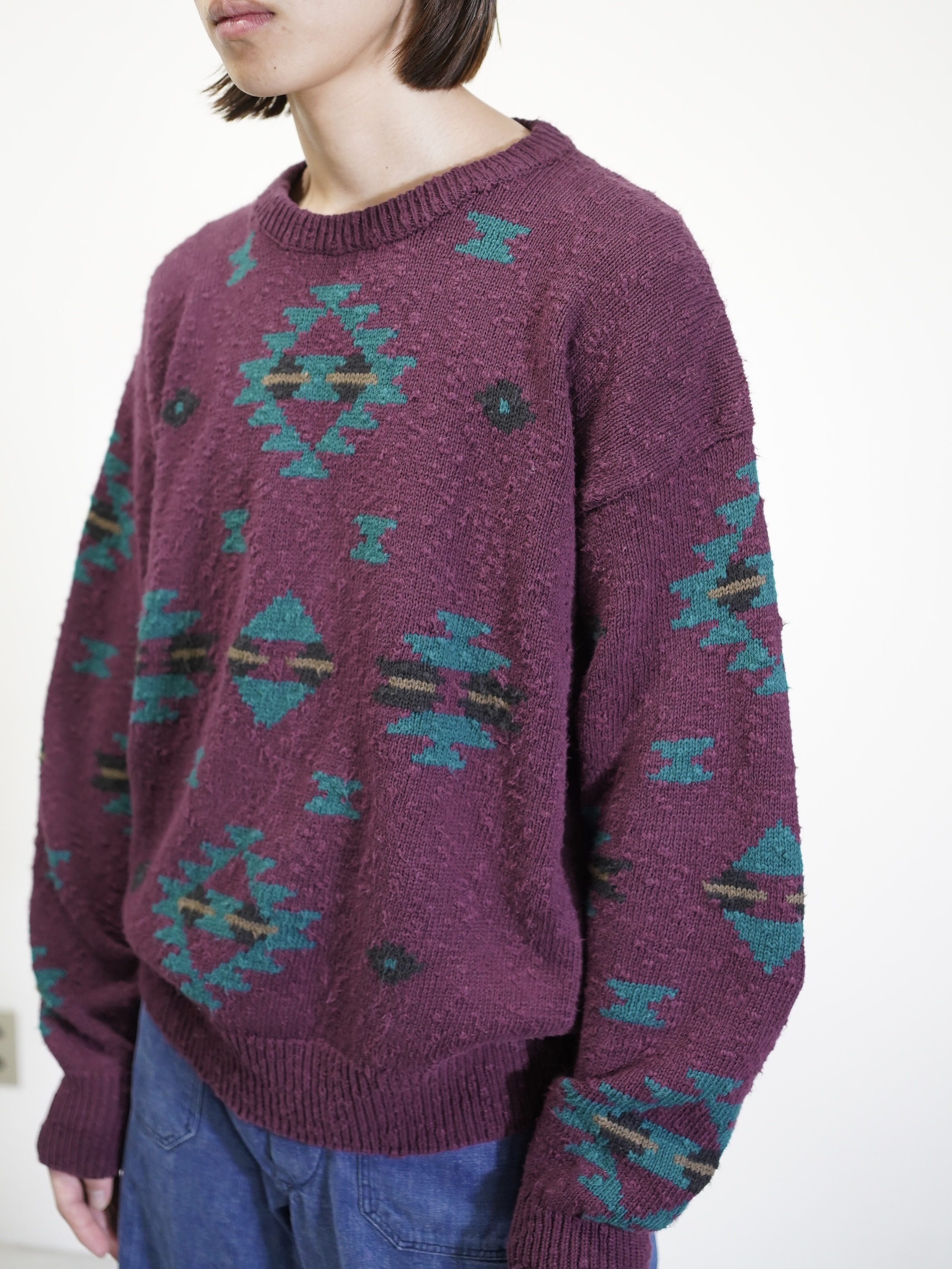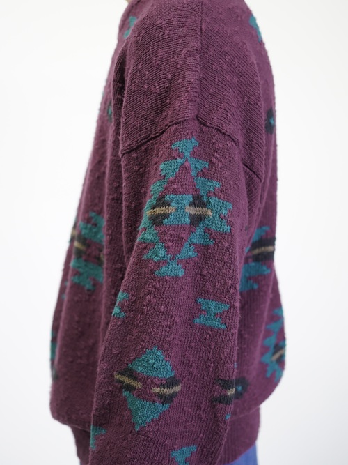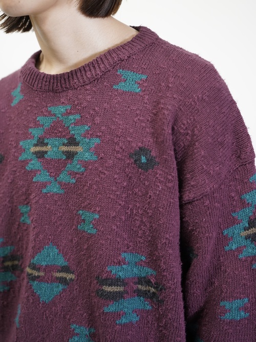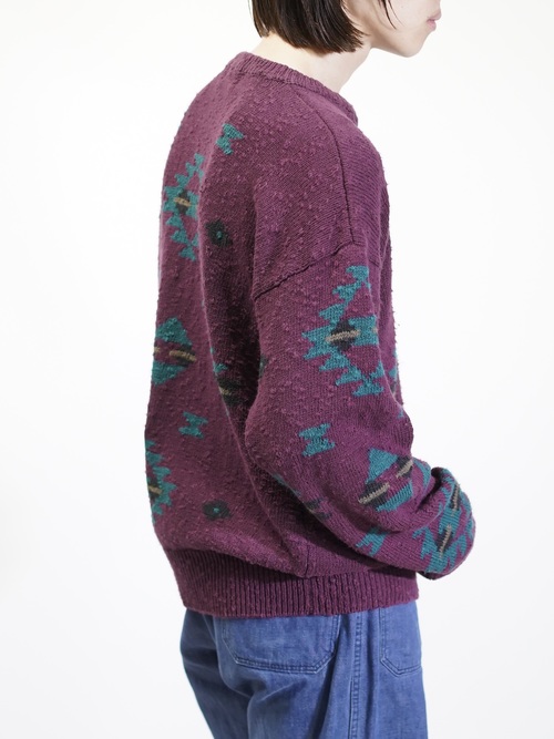 ボコボコとしたネップスラブ生地に、好配色のネイティブパターン。