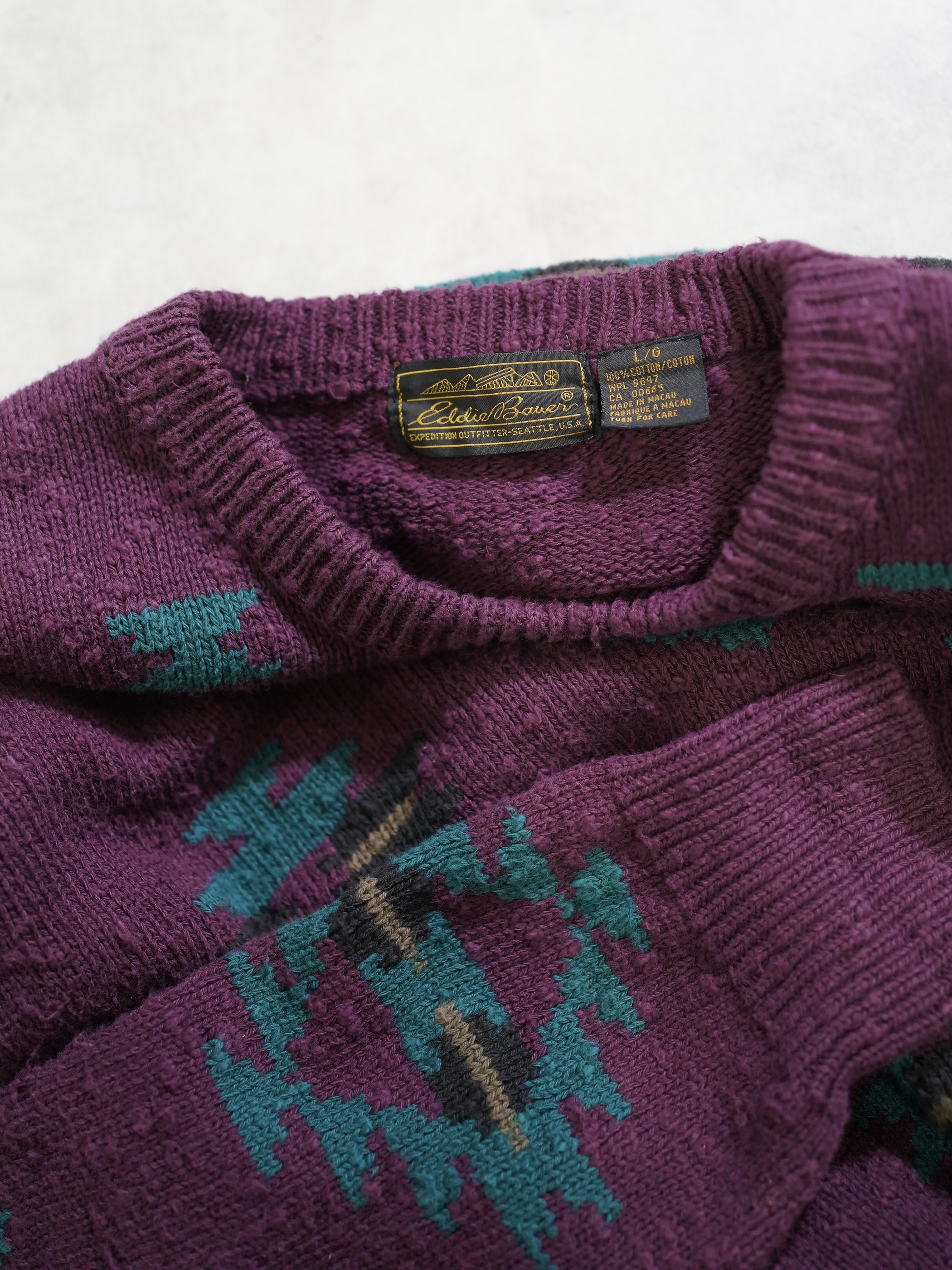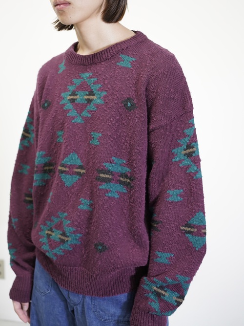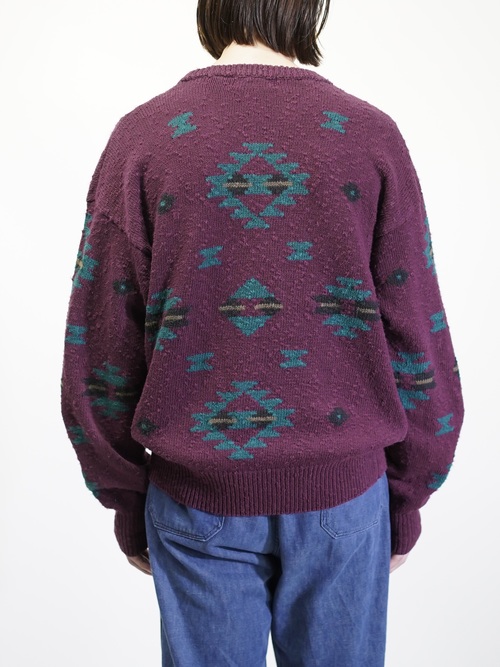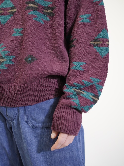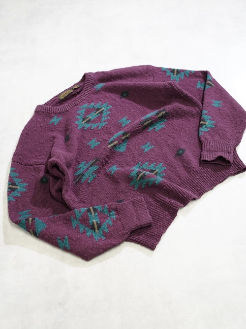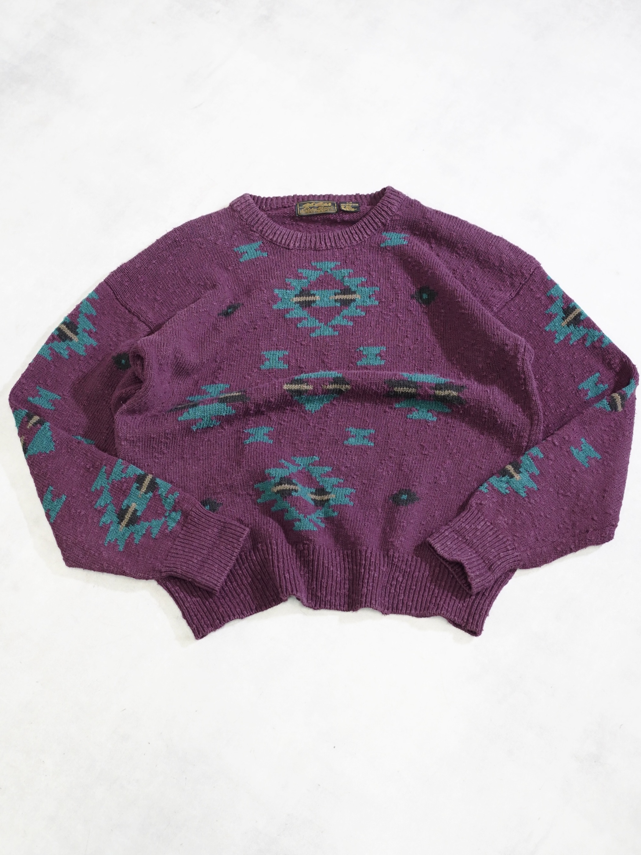 1980's Eddie Bauer Southwestern geometric cotton nep-slub knit sweater
