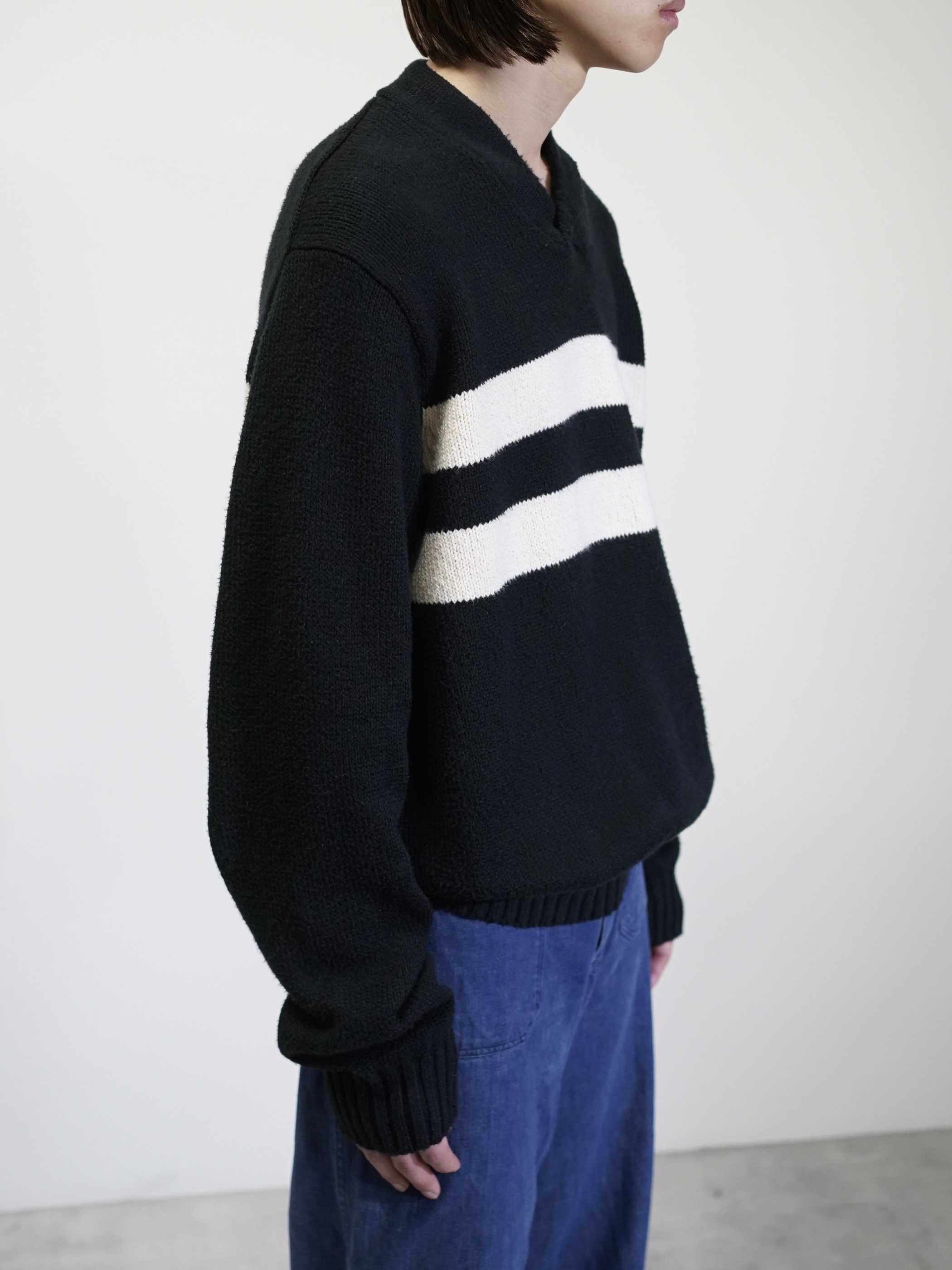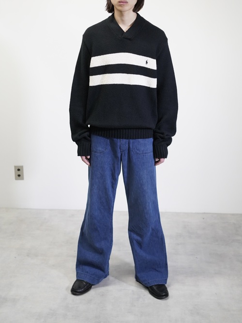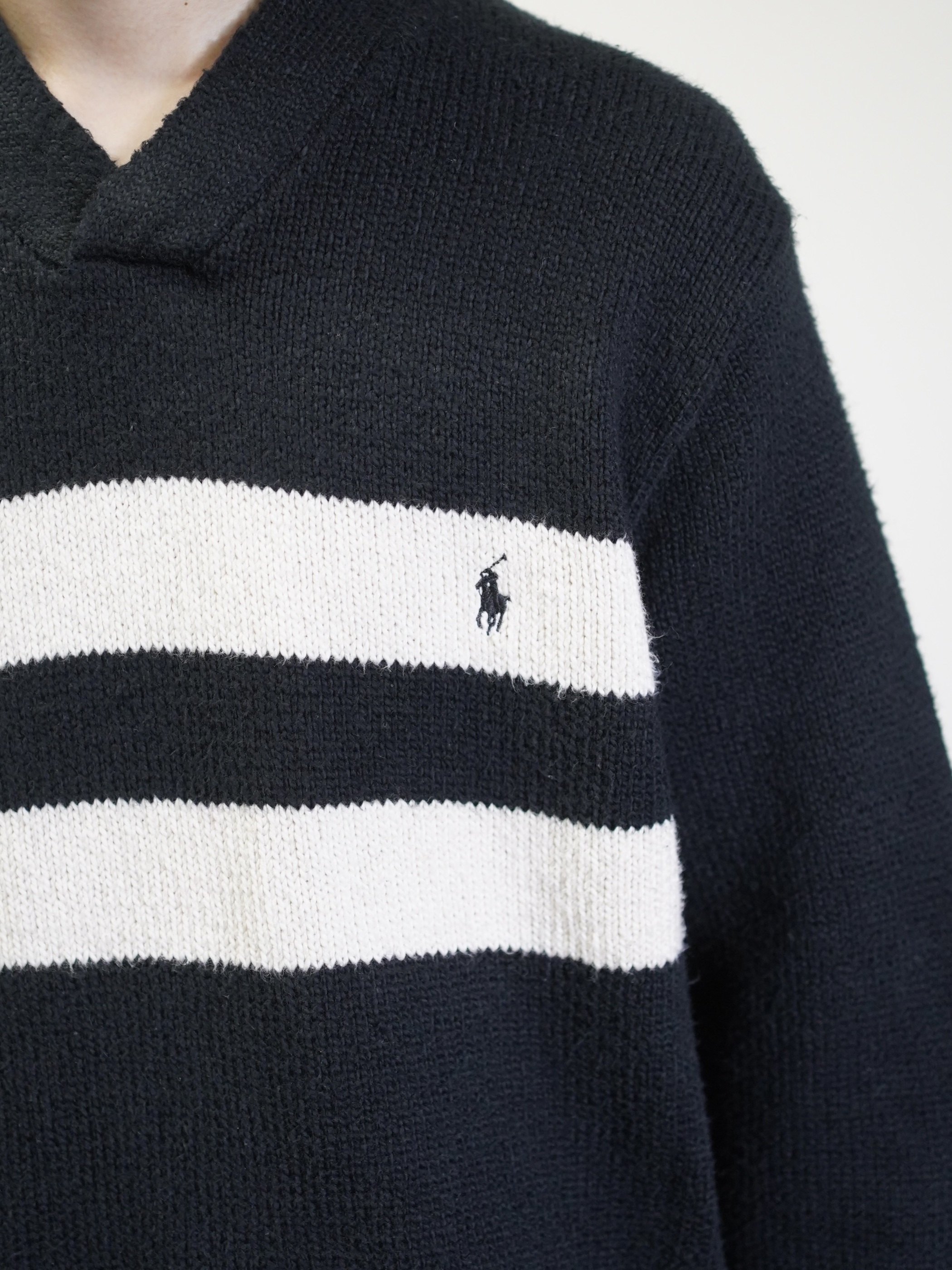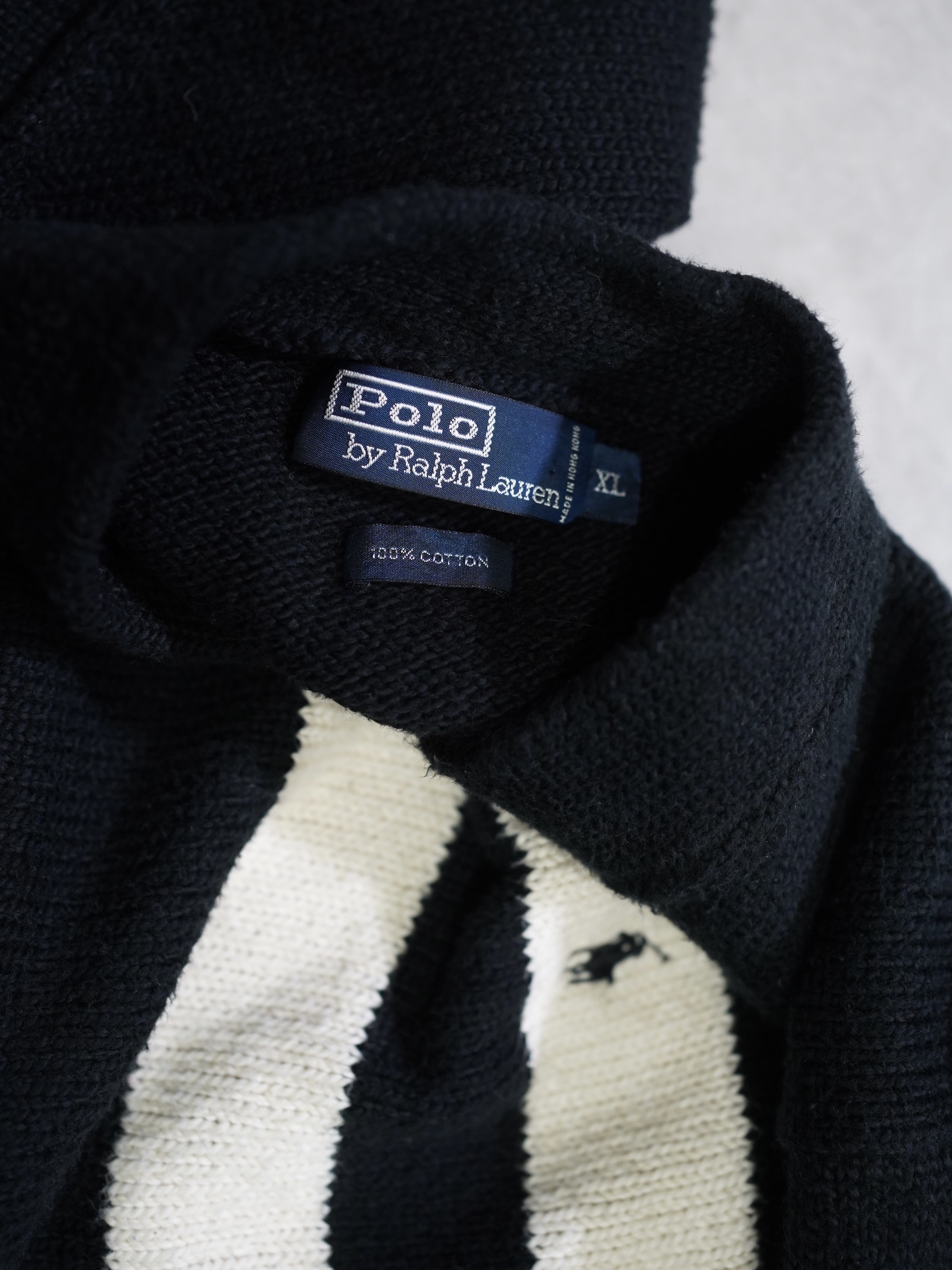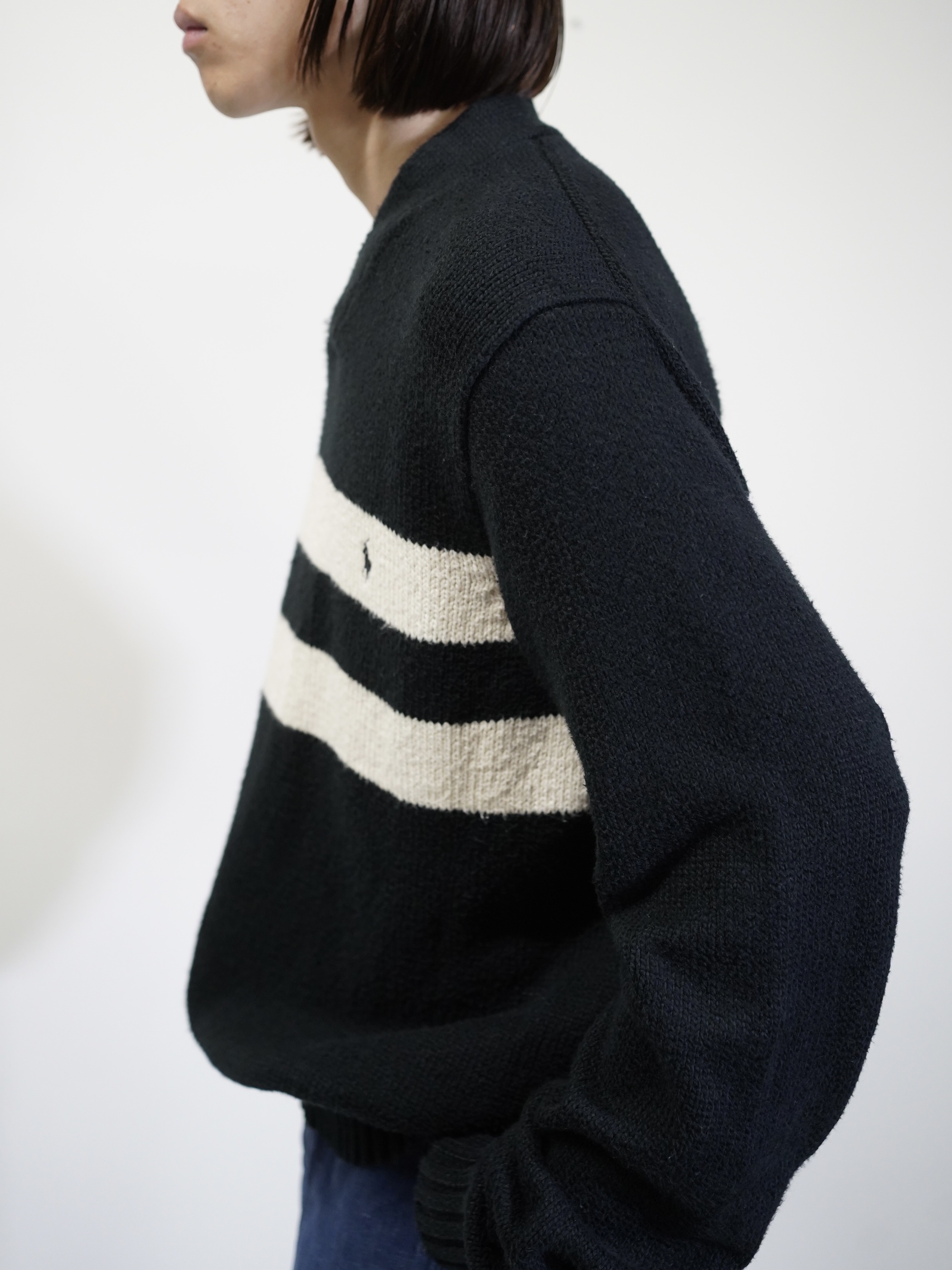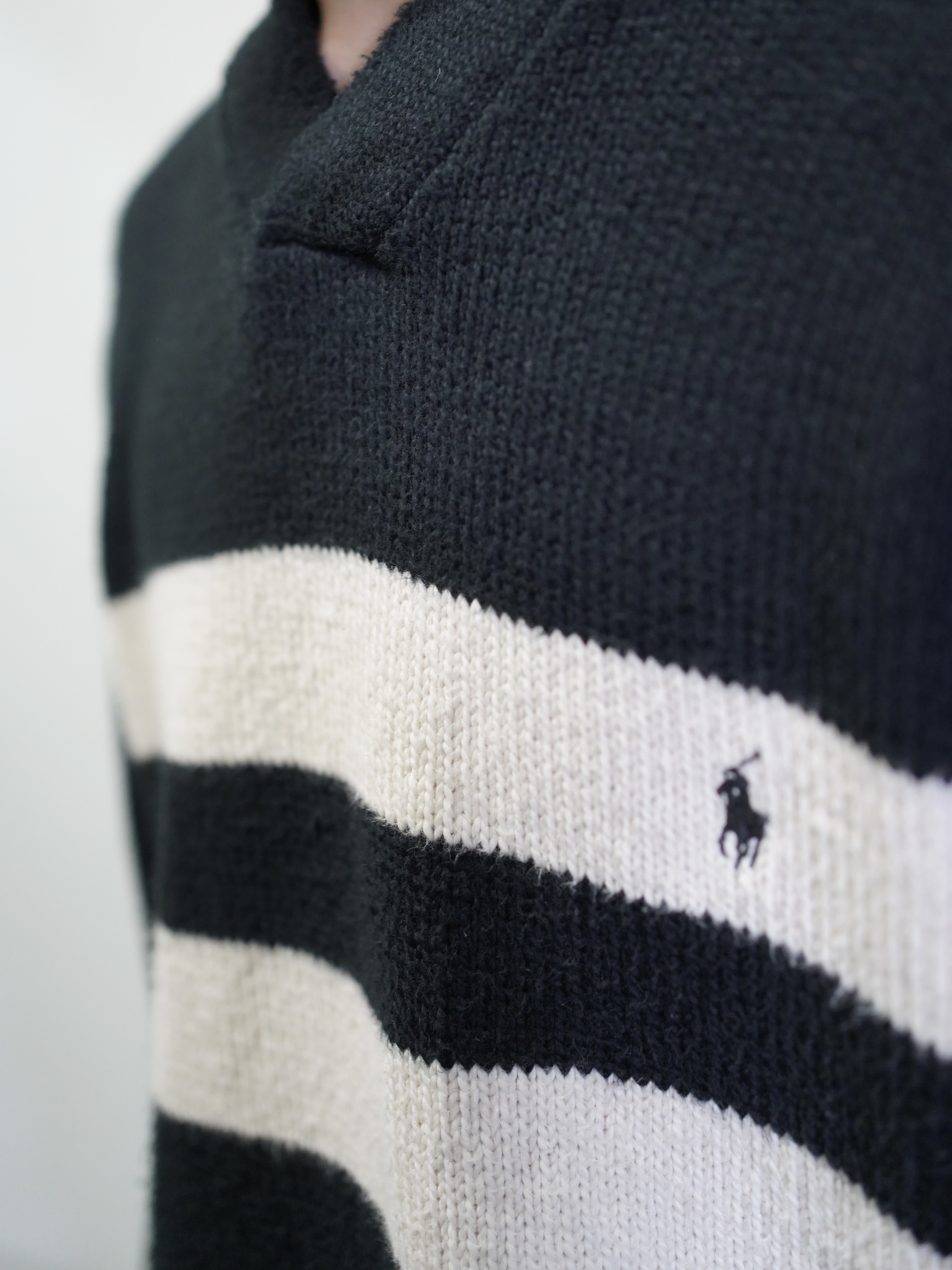 1990's Polo by Ralph Lauren 100% Cotton Vintage lettered motif V-neck knit sweater/Made in Hong Kong
