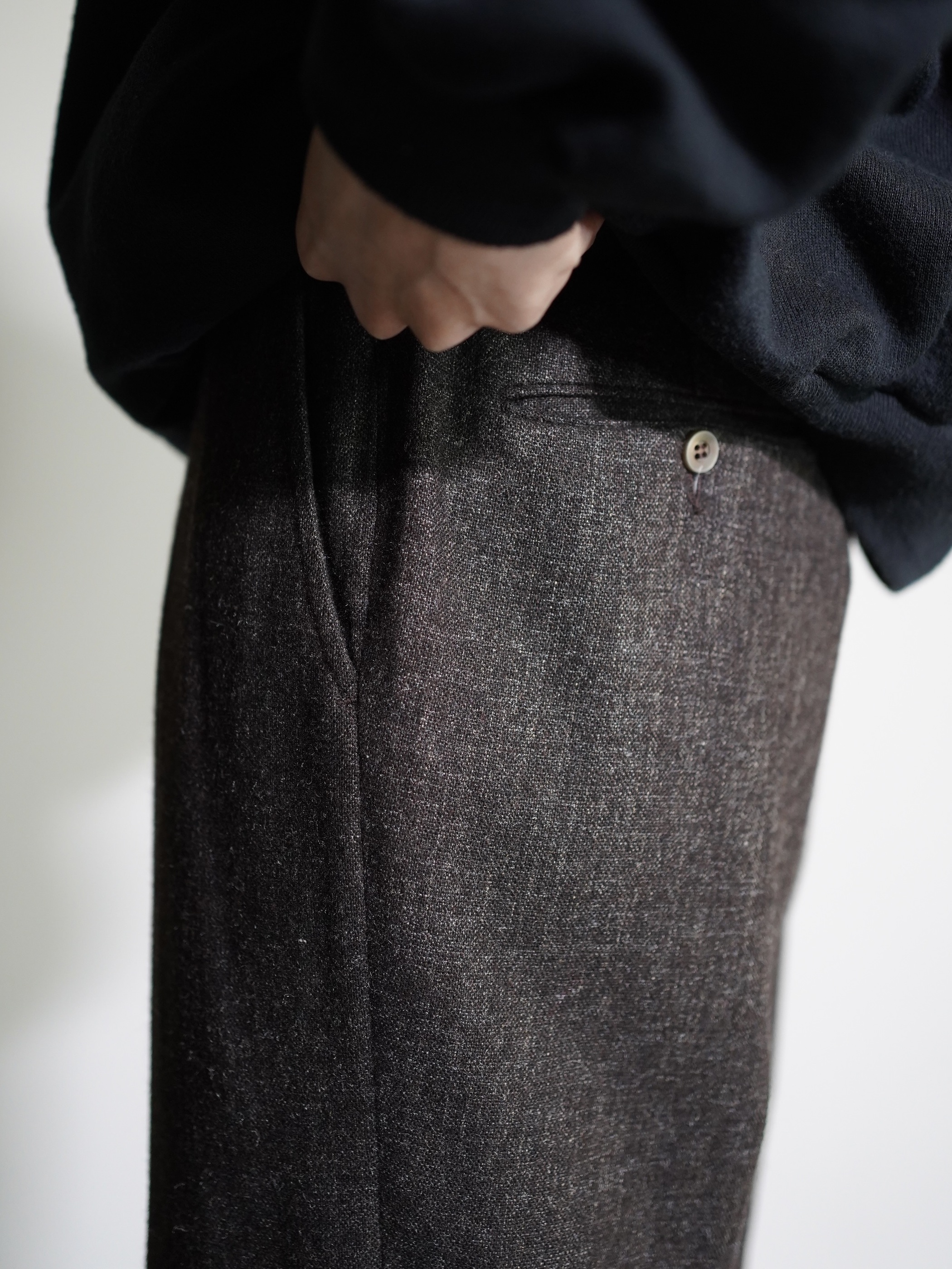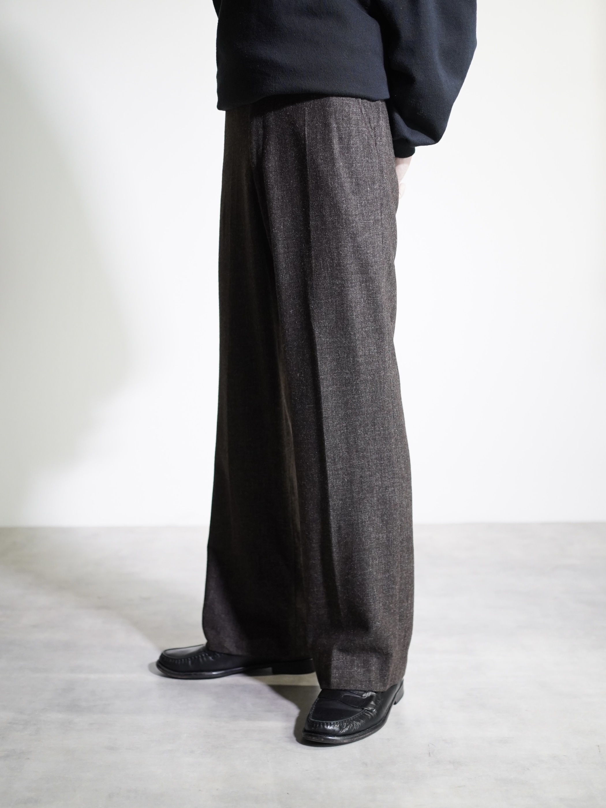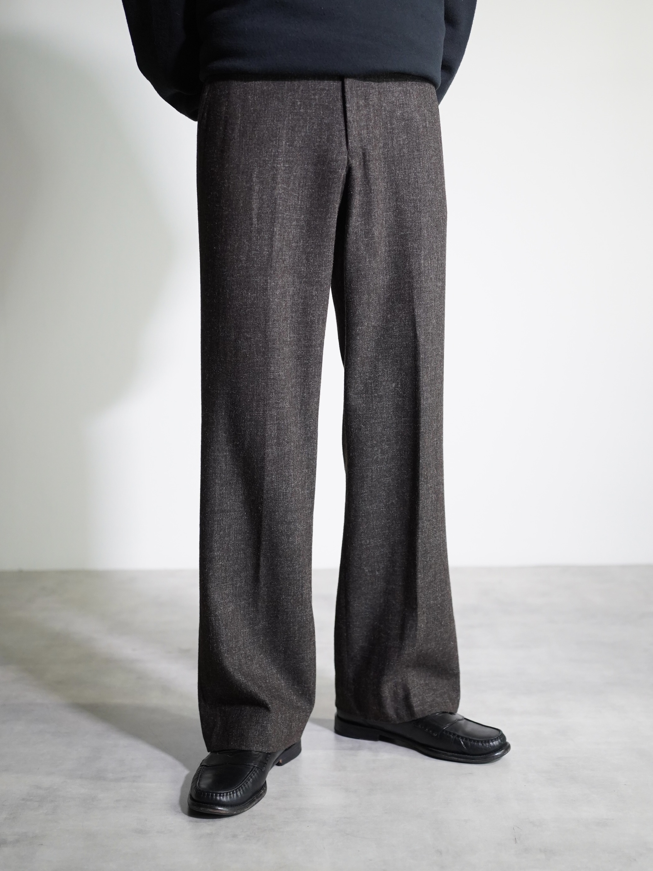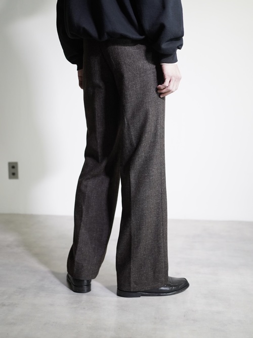 1980's JOHNNY CARSON Nep wool fabric non-tuck dress trousers