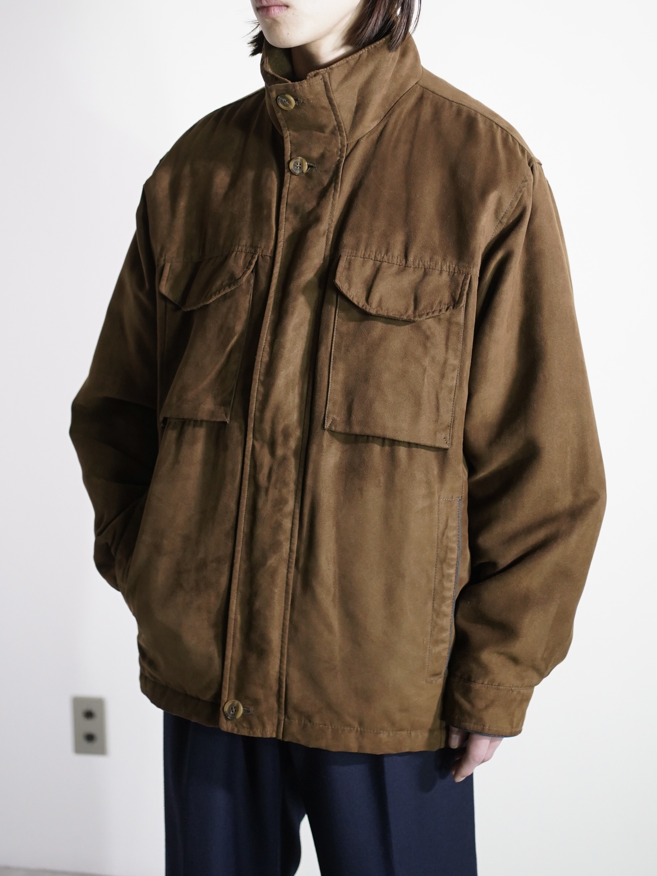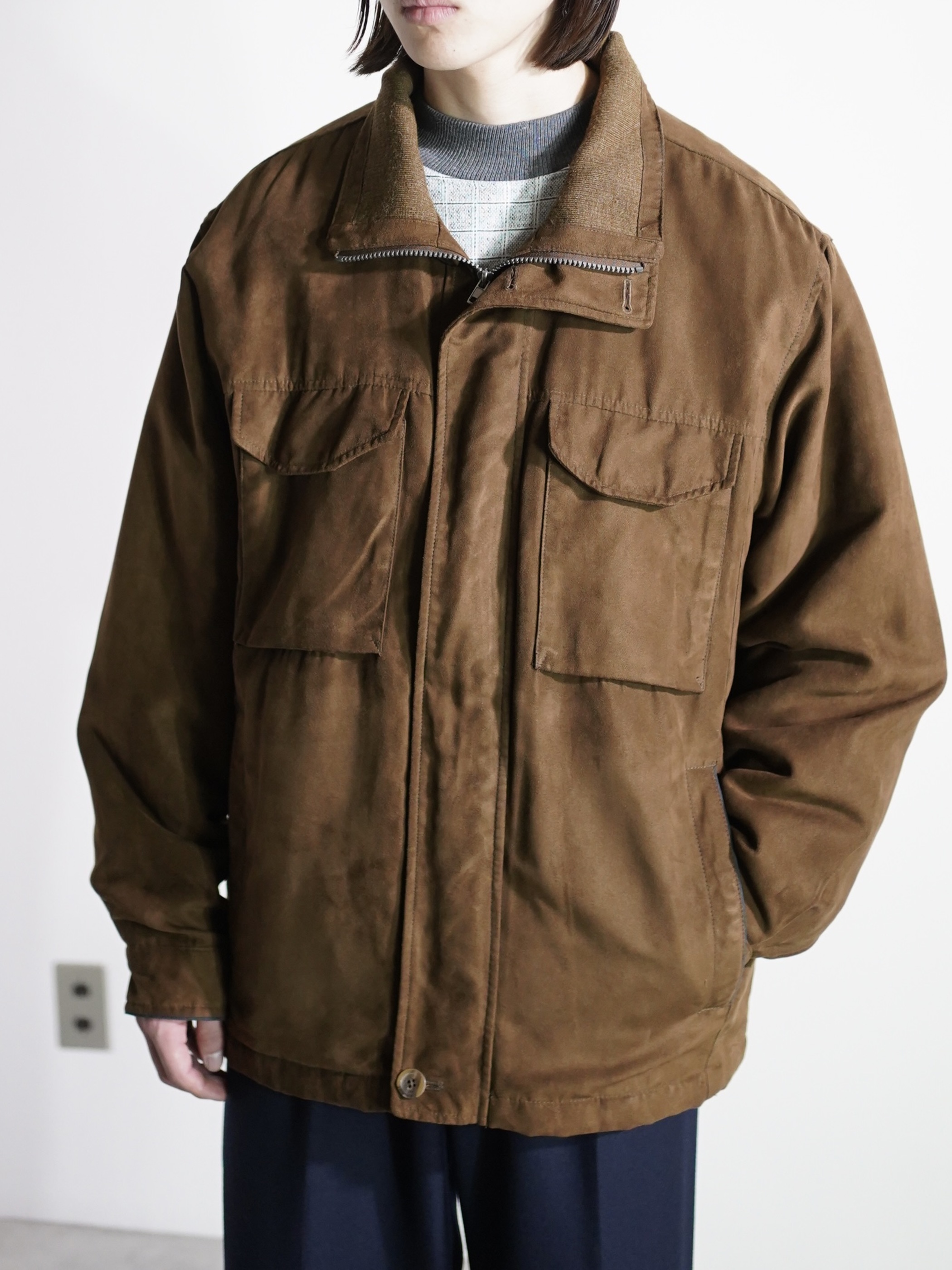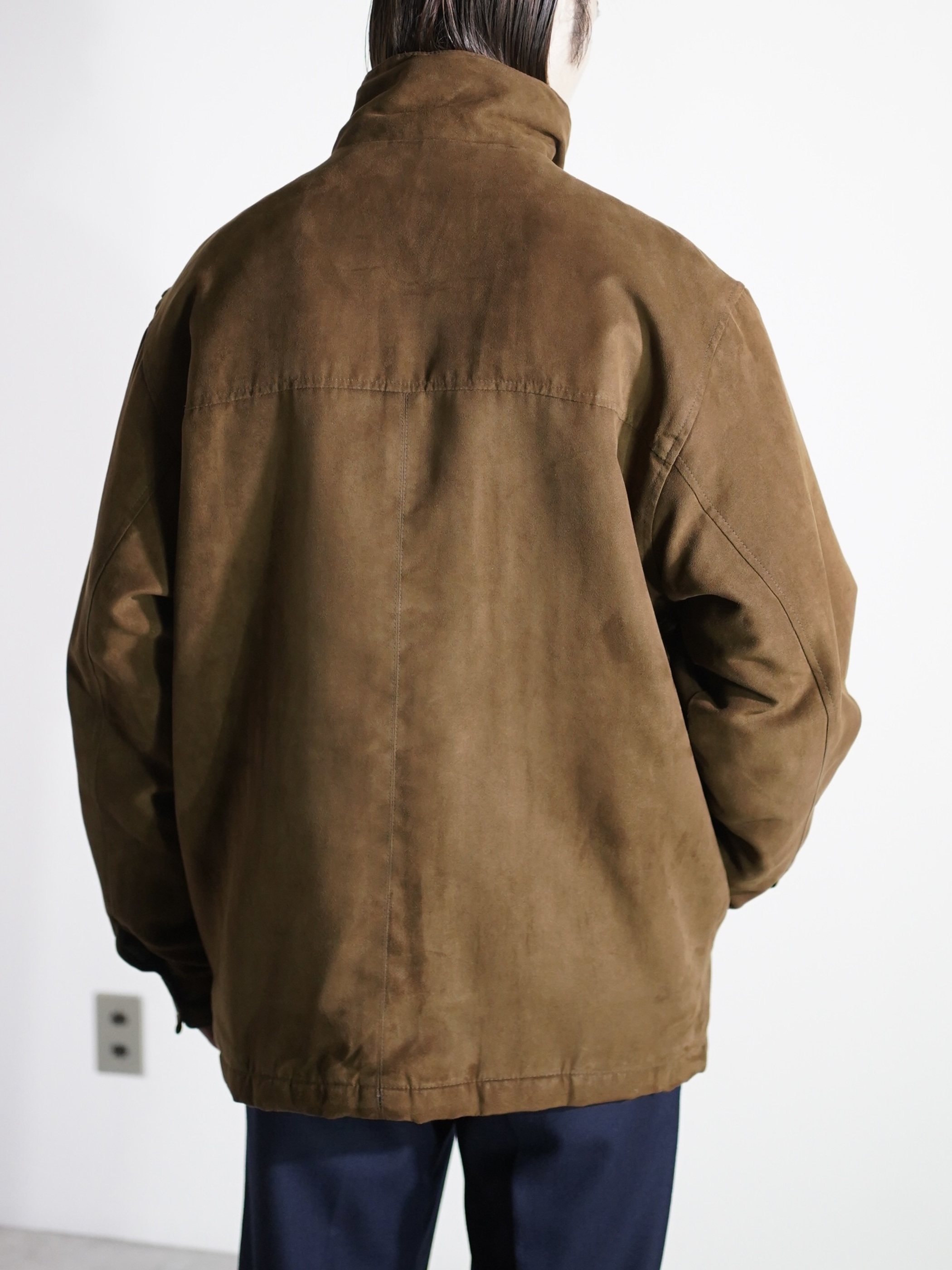 1990~00's St John's Bay Fake suède 4p stand-neck padded blouson/herring bone liner