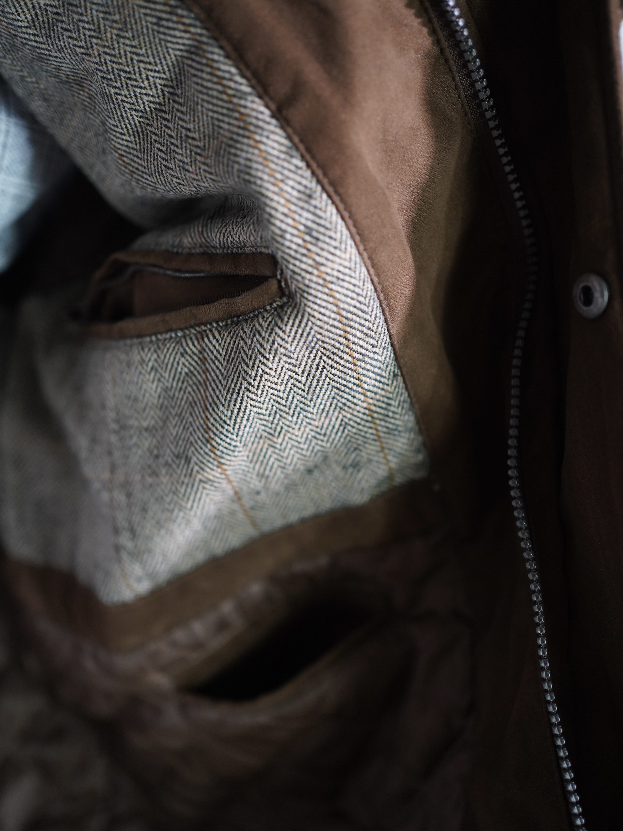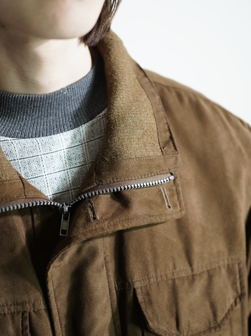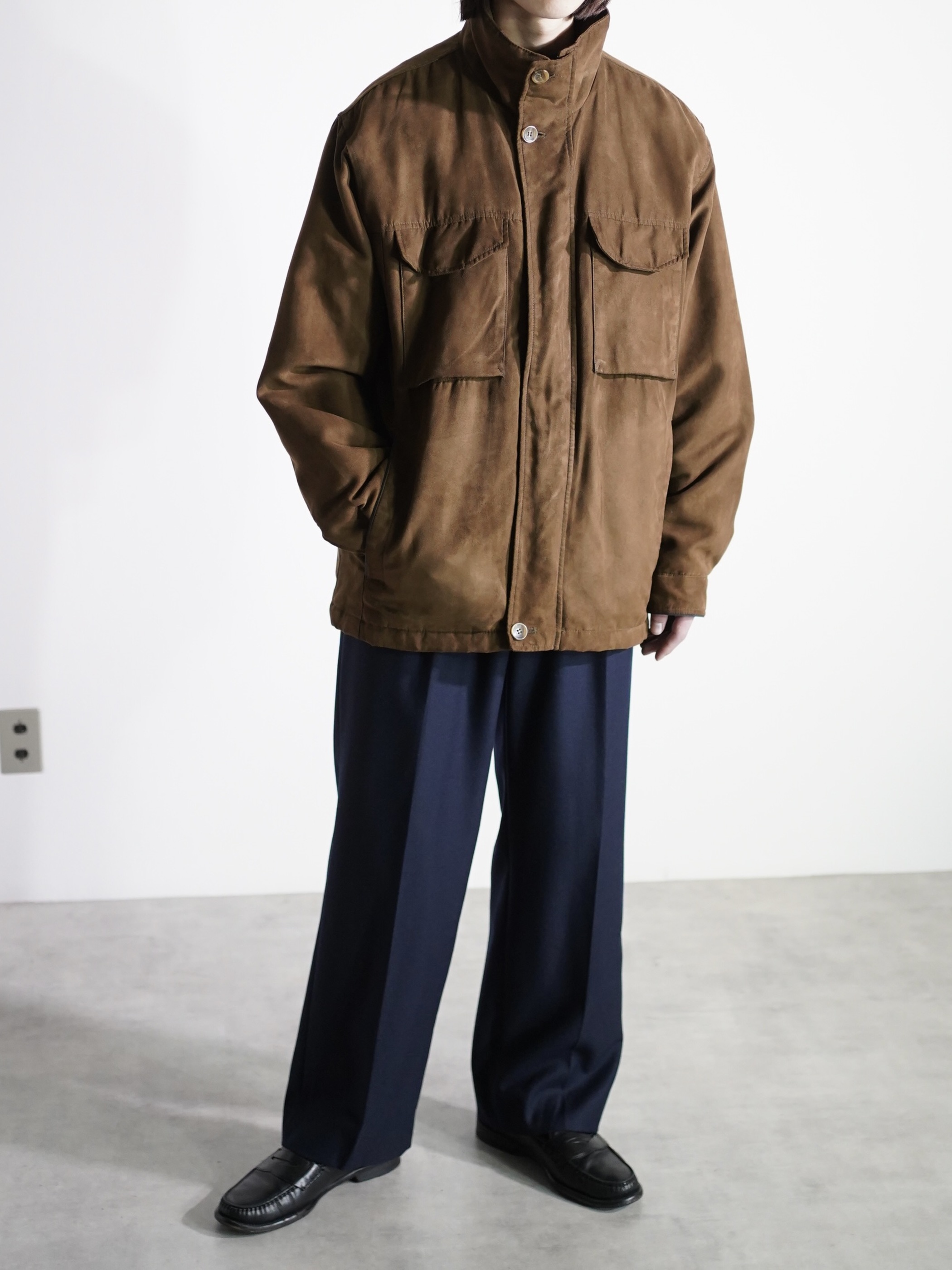 1990~00's St John's Bay Fake suède 4p stand-neck padded blouson/herring bone liner