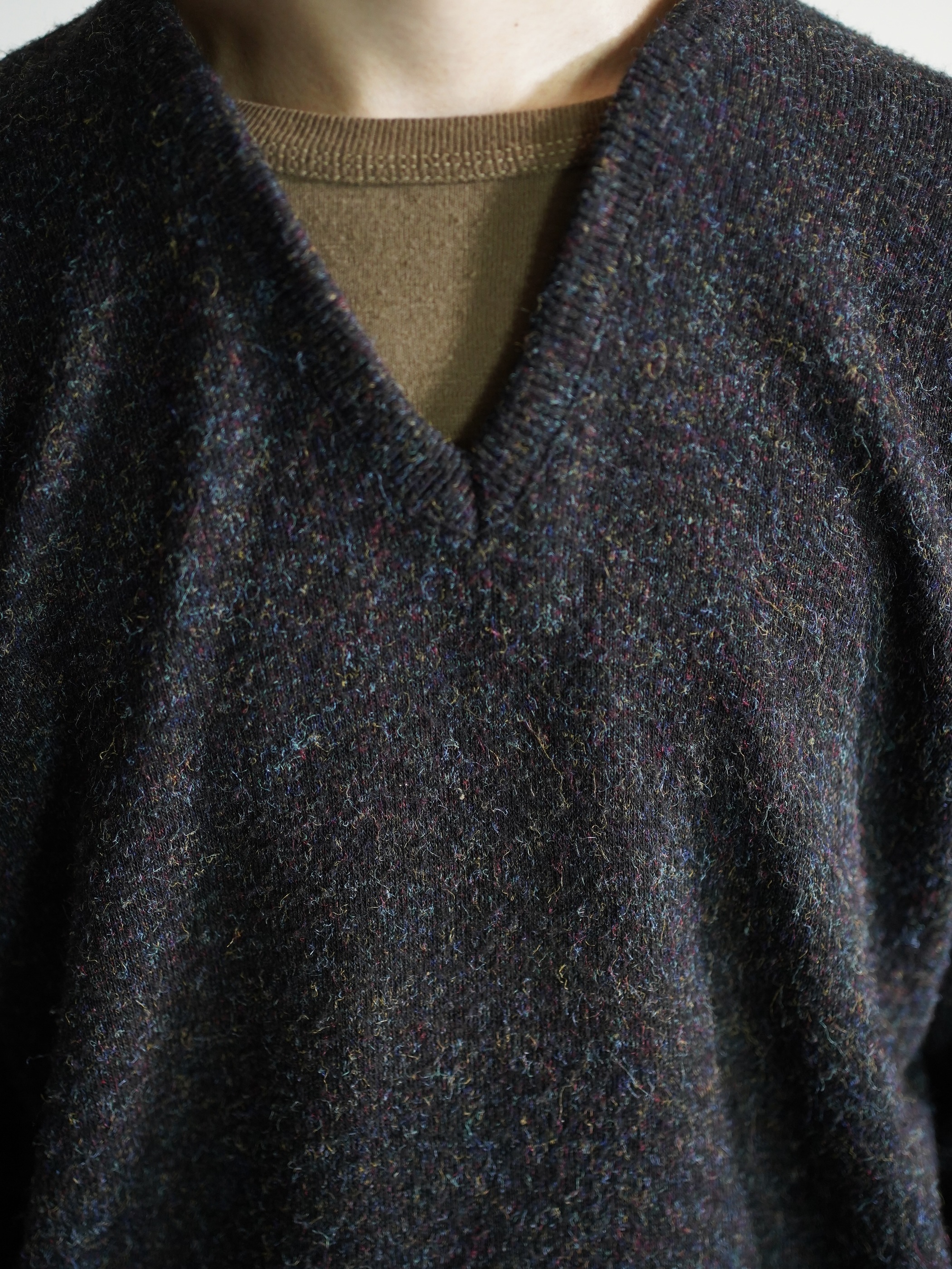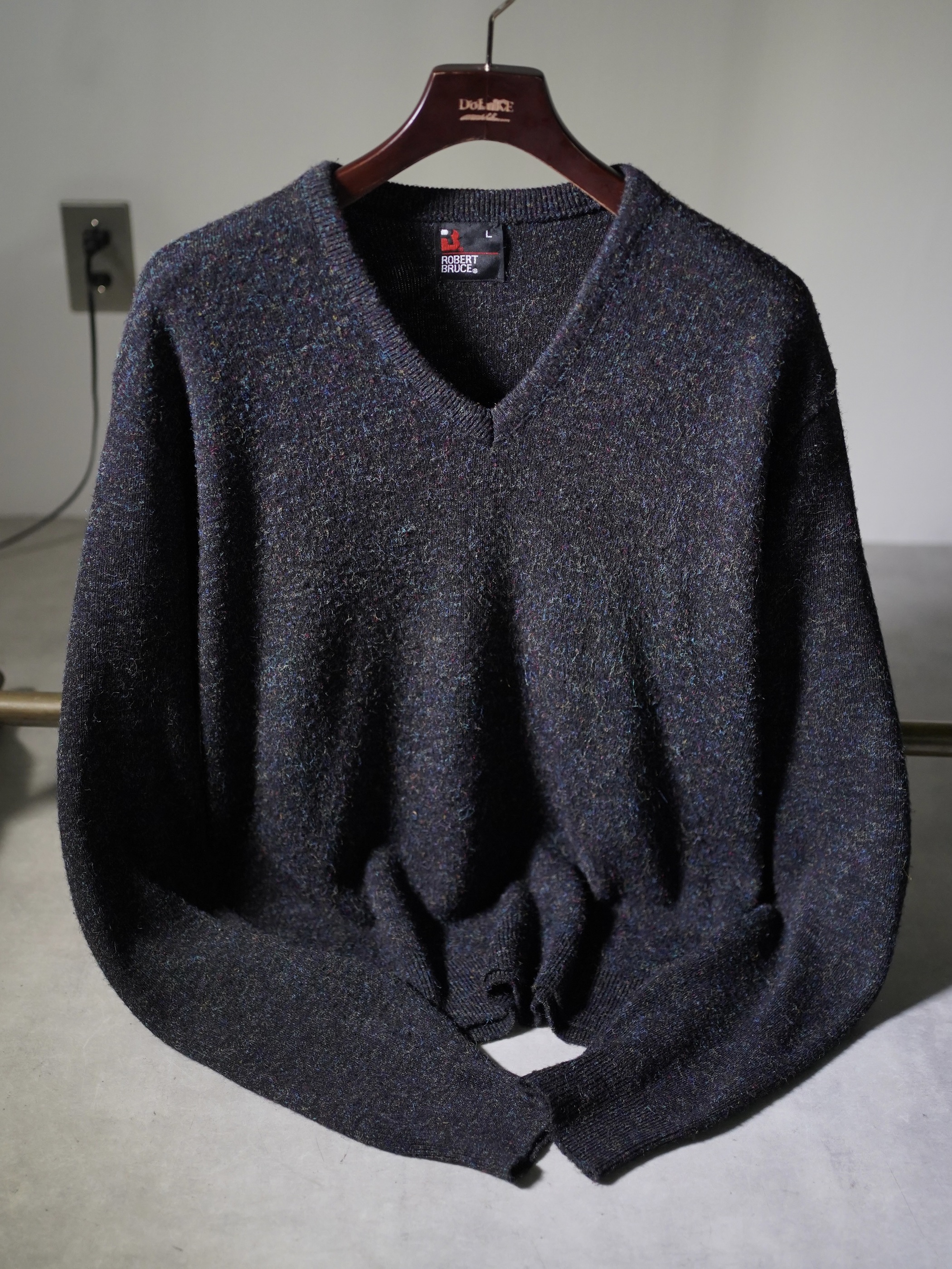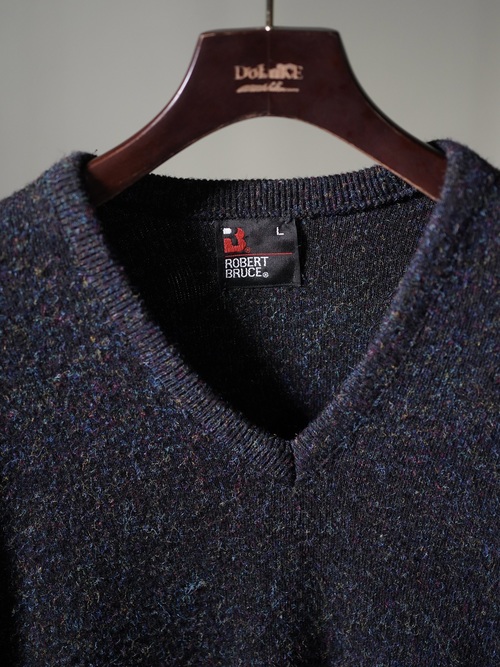 1980's Robert Bruce ORLON Acrylic mélange V-neck knit sweater/Made in USA
