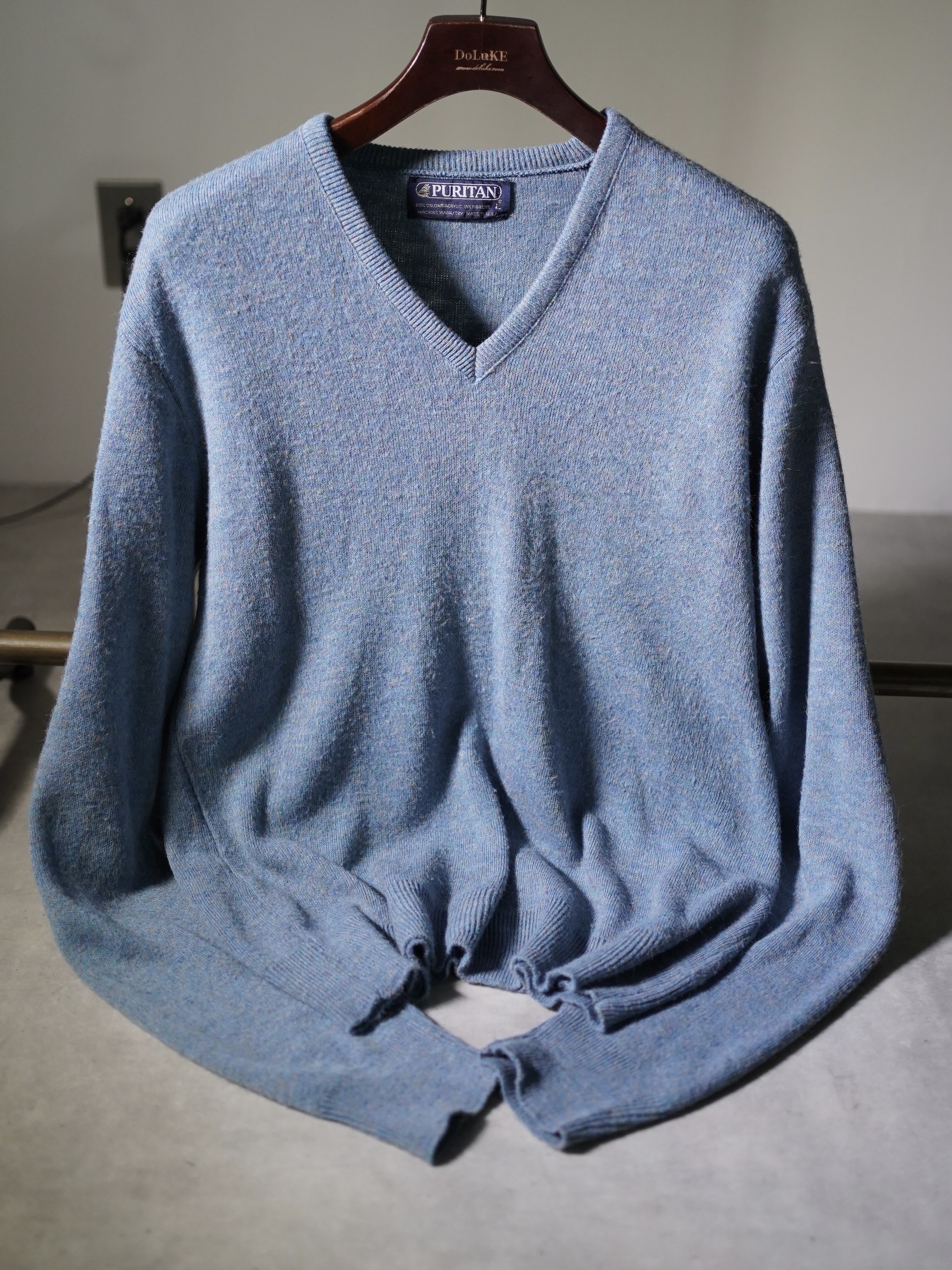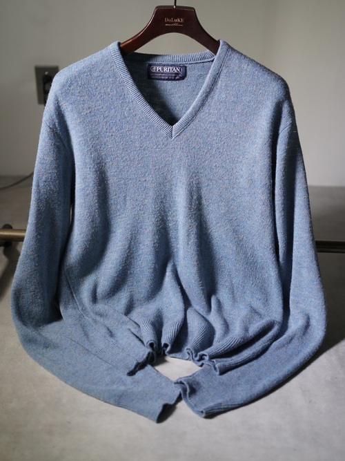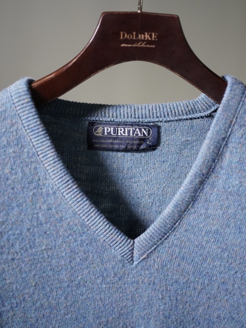 1980's PURITAN ORLON Acrylic mélange V-neck knit sweater/Made in USA