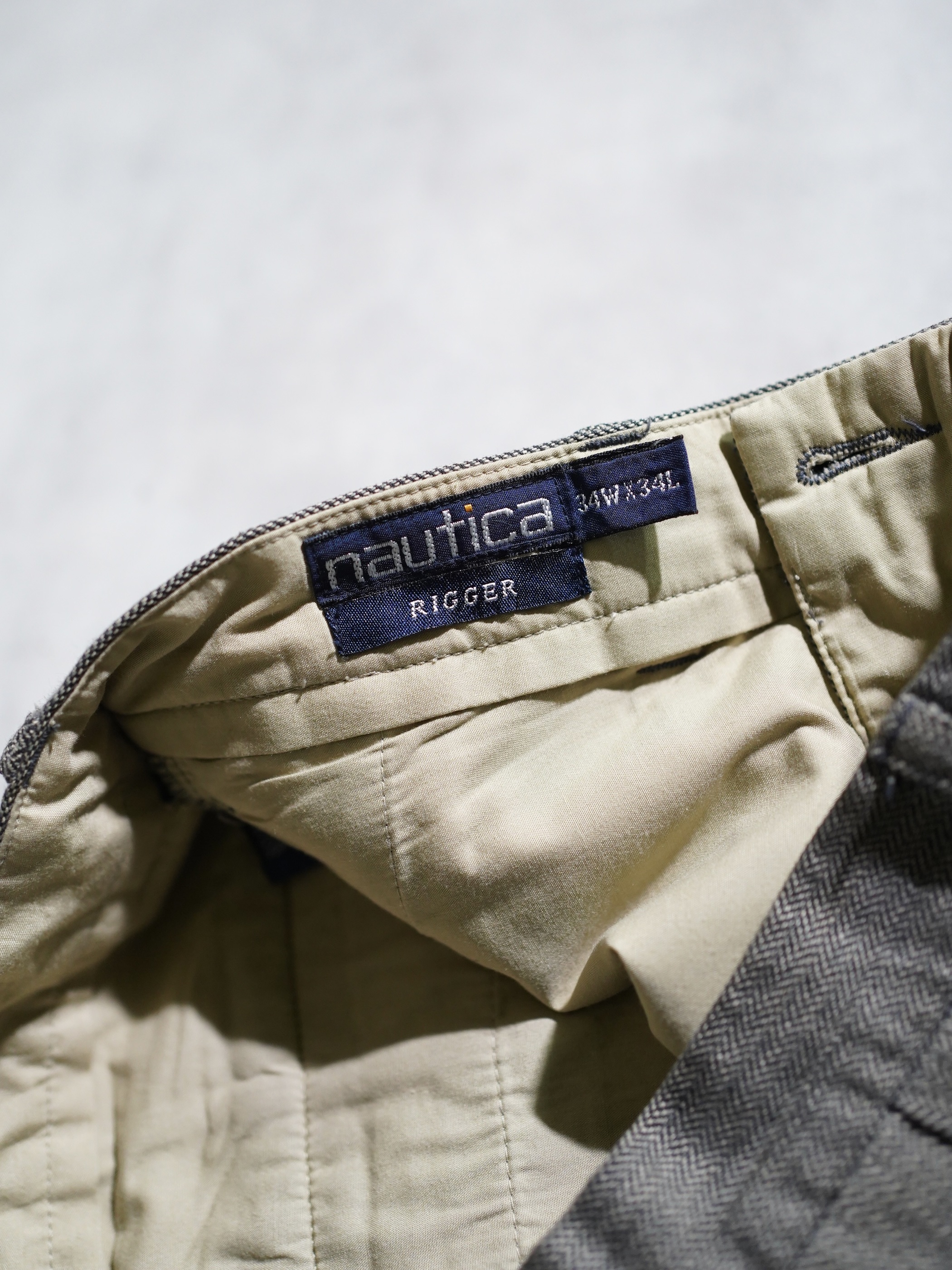 1990's nautica Rigger herringbone 2tuck trousers/Made in Hong Kong