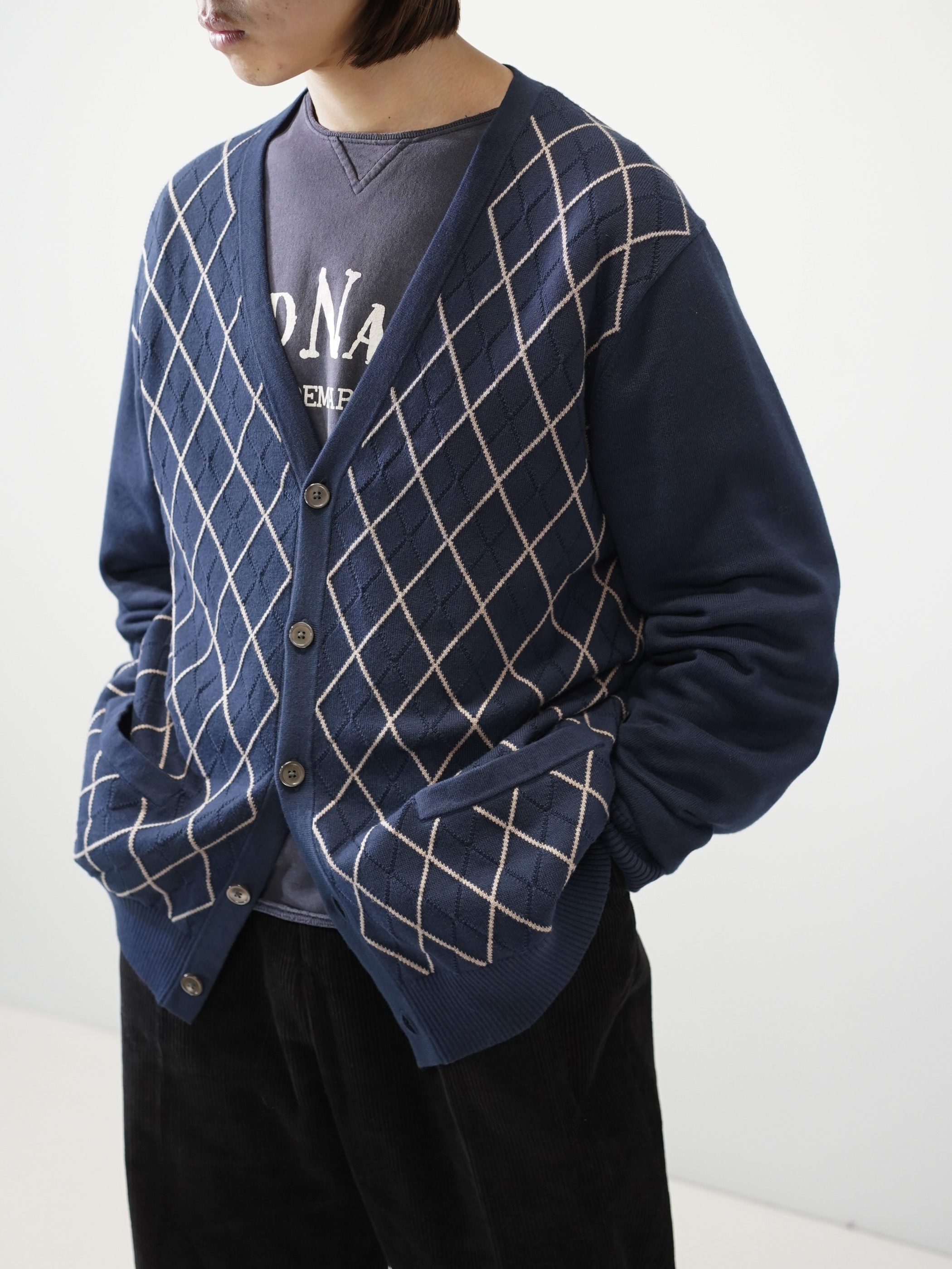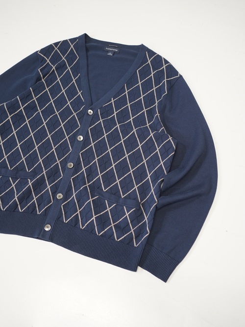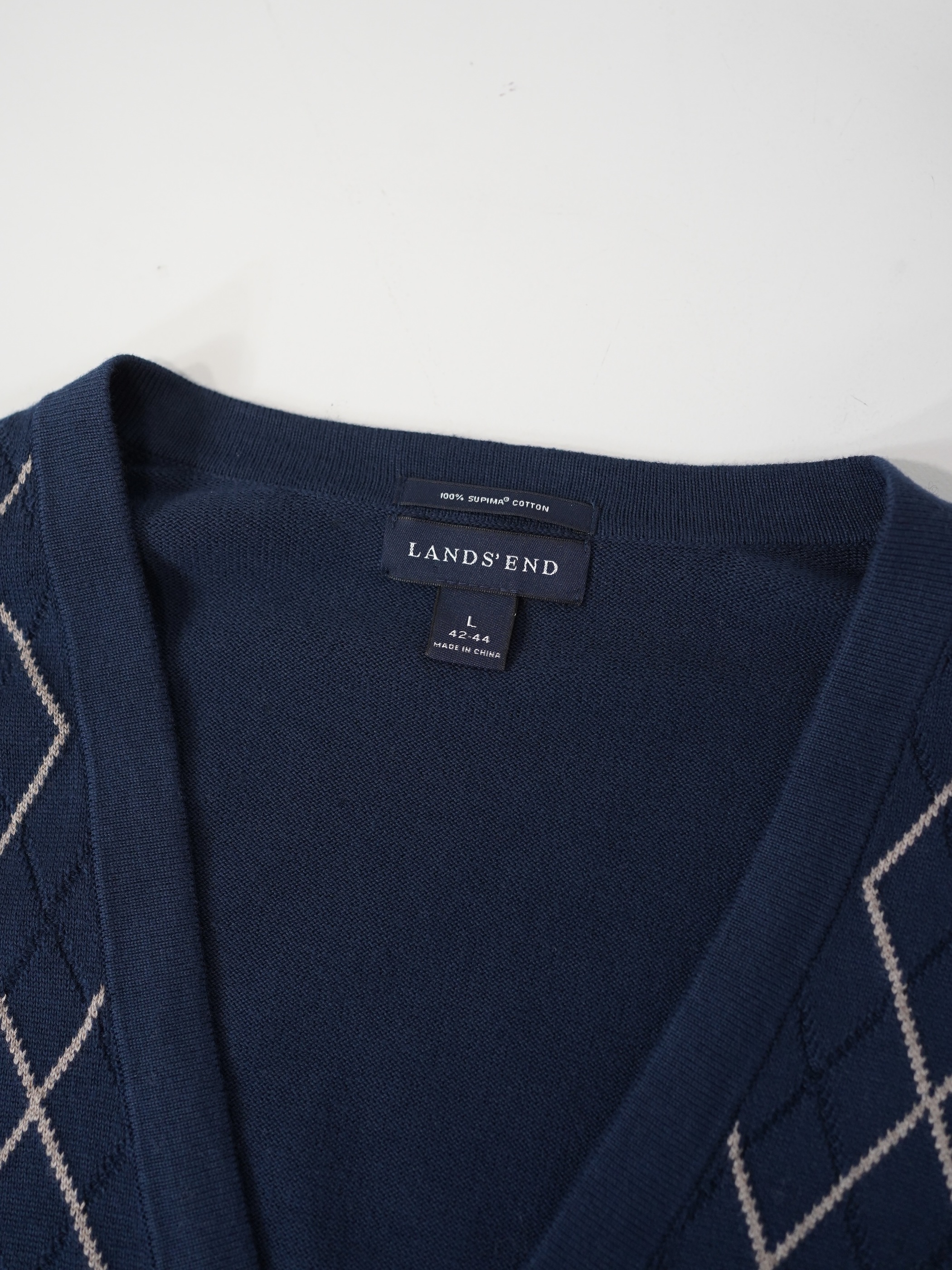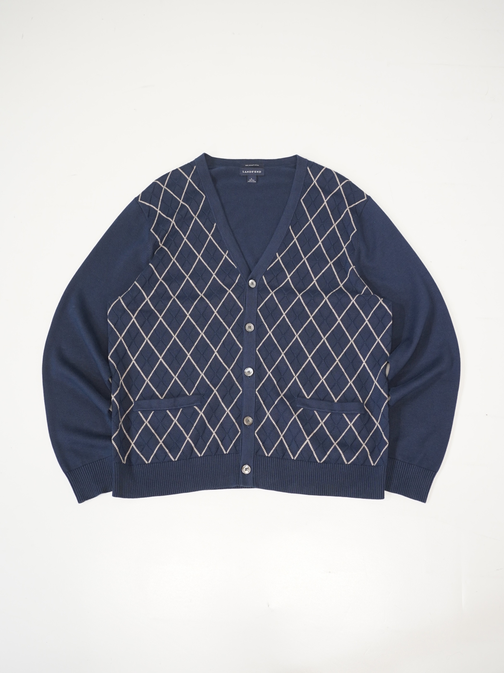 ・LANDS'END Argyle pattern Supima Cotton knit cardigan