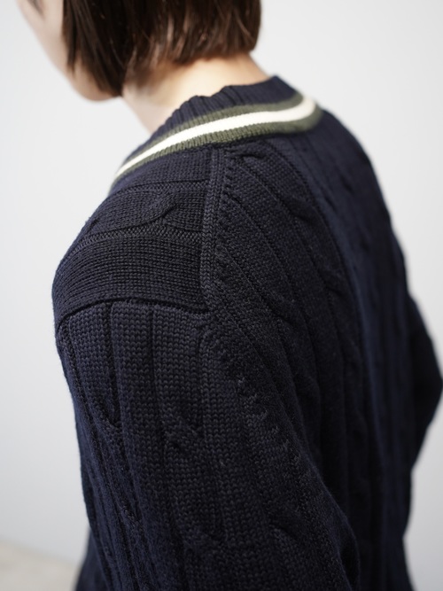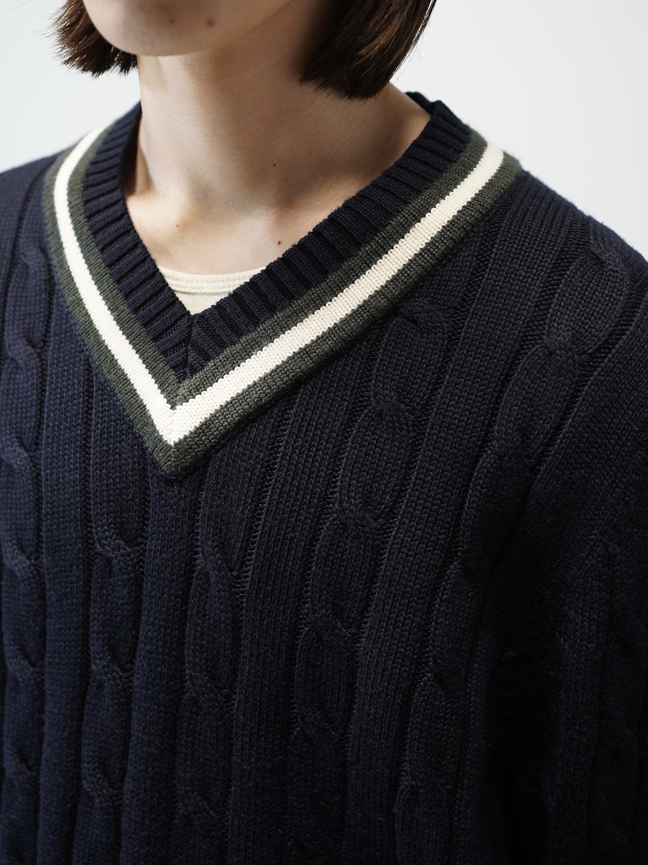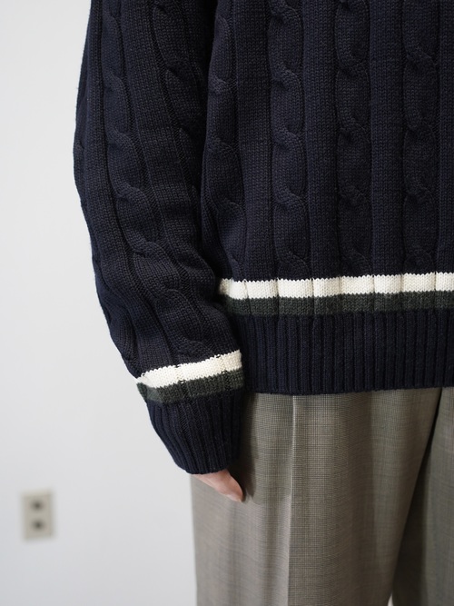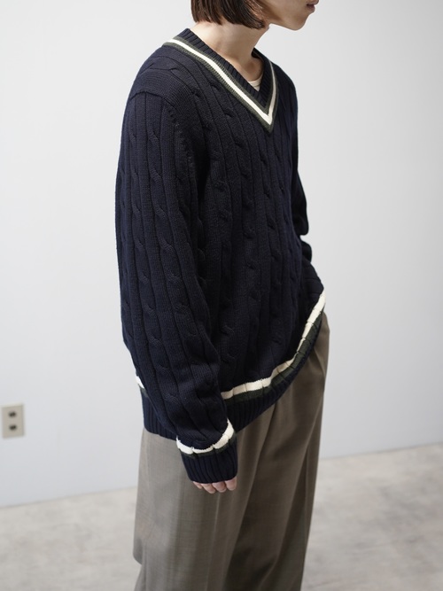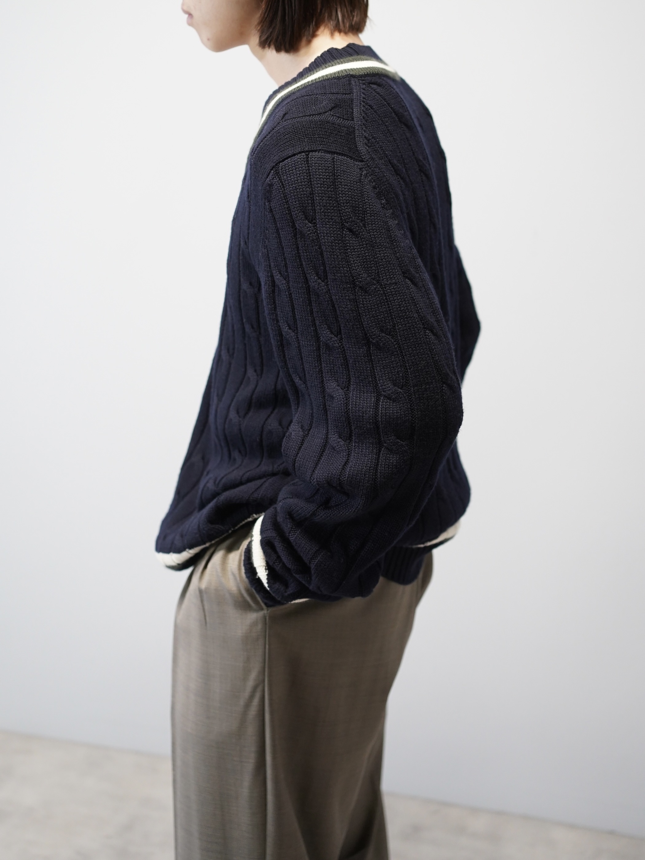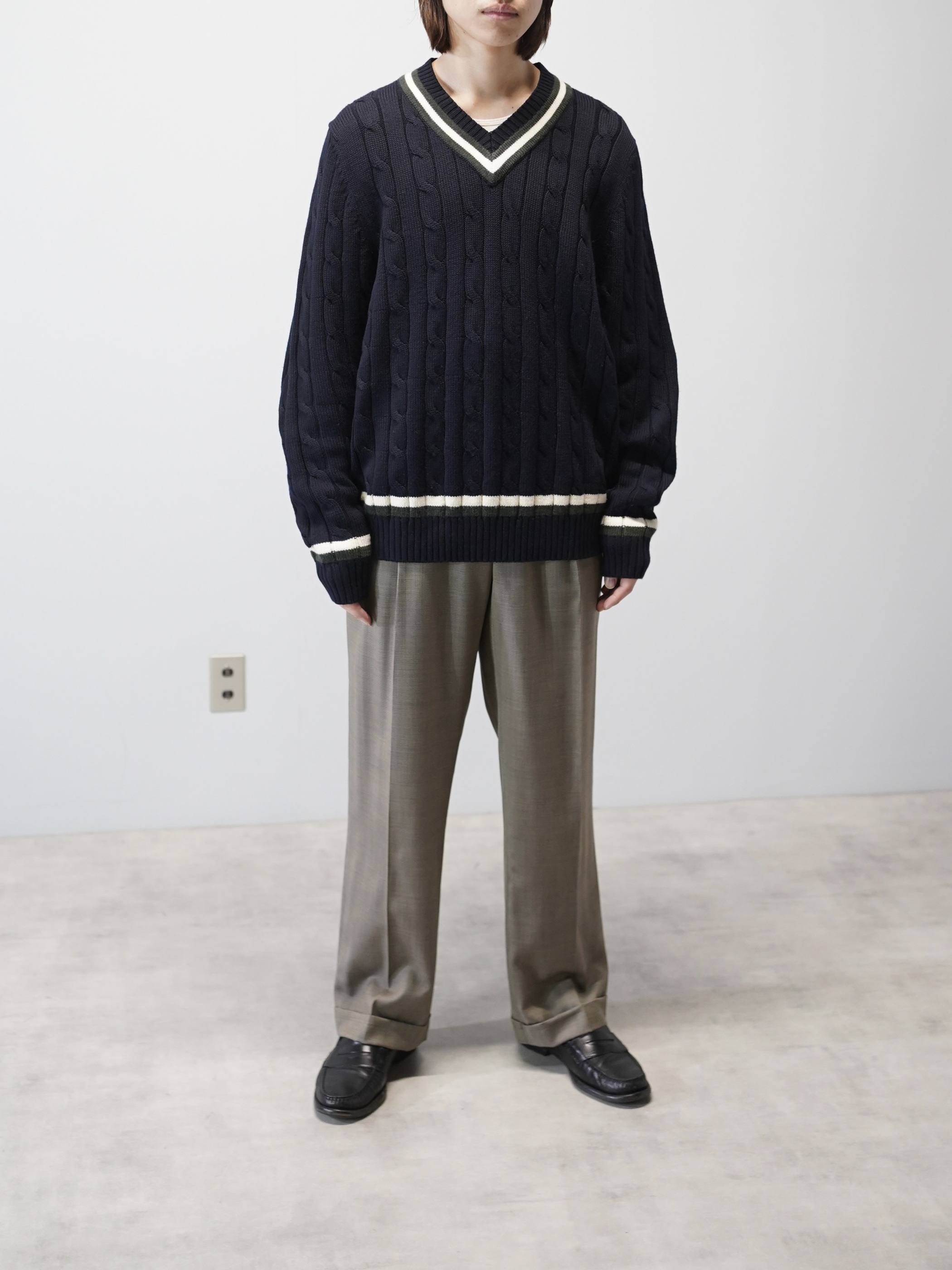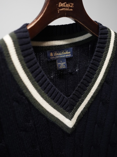 ・Brooks Brothers Extra fine Italian Merino wool V-neck Cable knit sweater / Made in Hong Kong