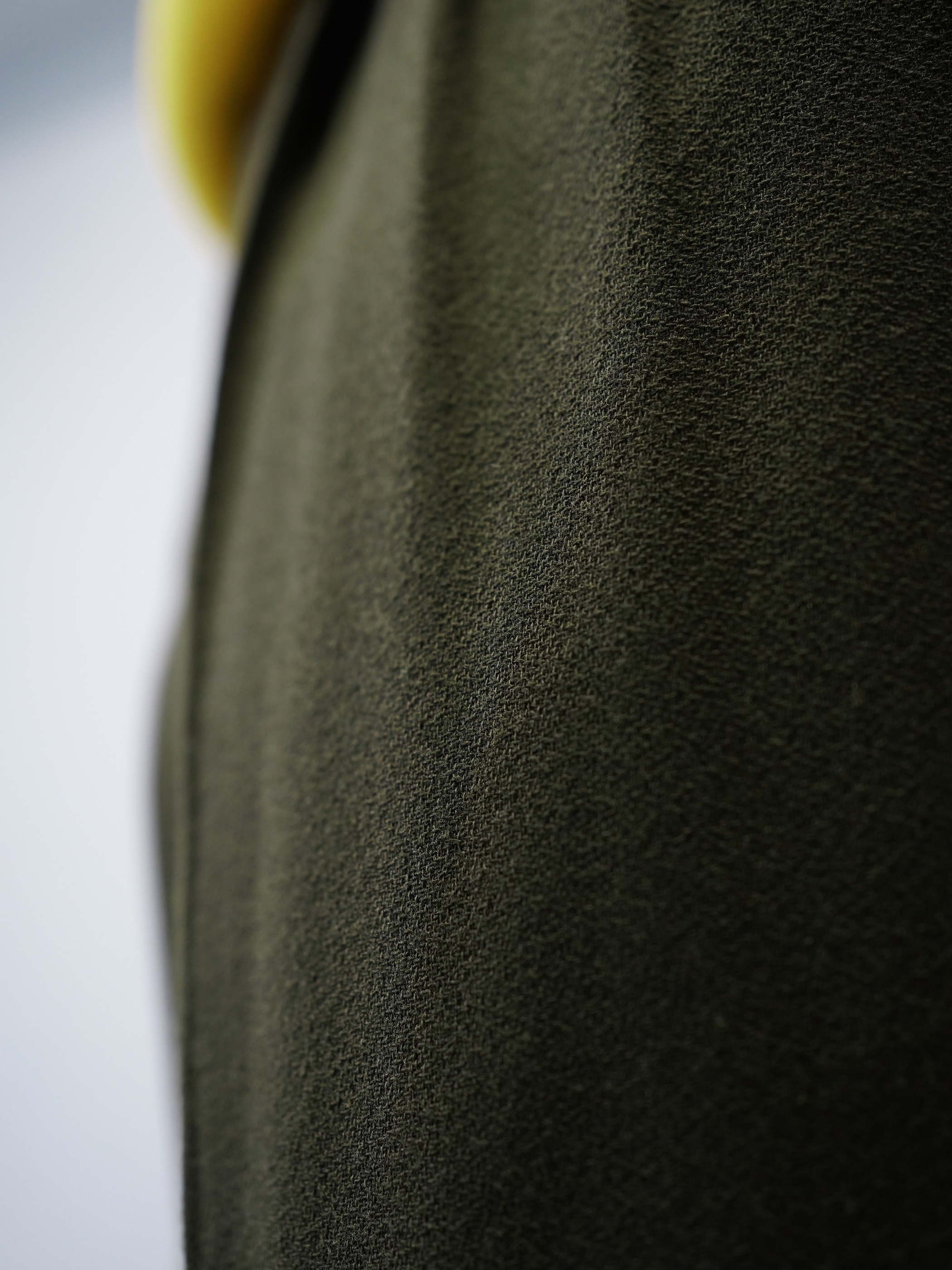 独特な織り地で染め物かのような美しさ、風合いにドキッとしました。