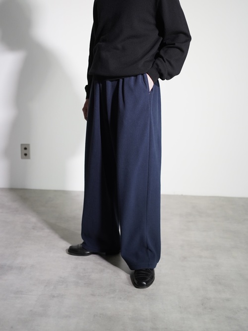アイテム自体は同ブランドでは珍しいアプローチですが、洗練された程よいゆとりを残したテーパードシルエットは”らしい”形状で、余白のあるスラックスのような感覚で着用できる一本です。