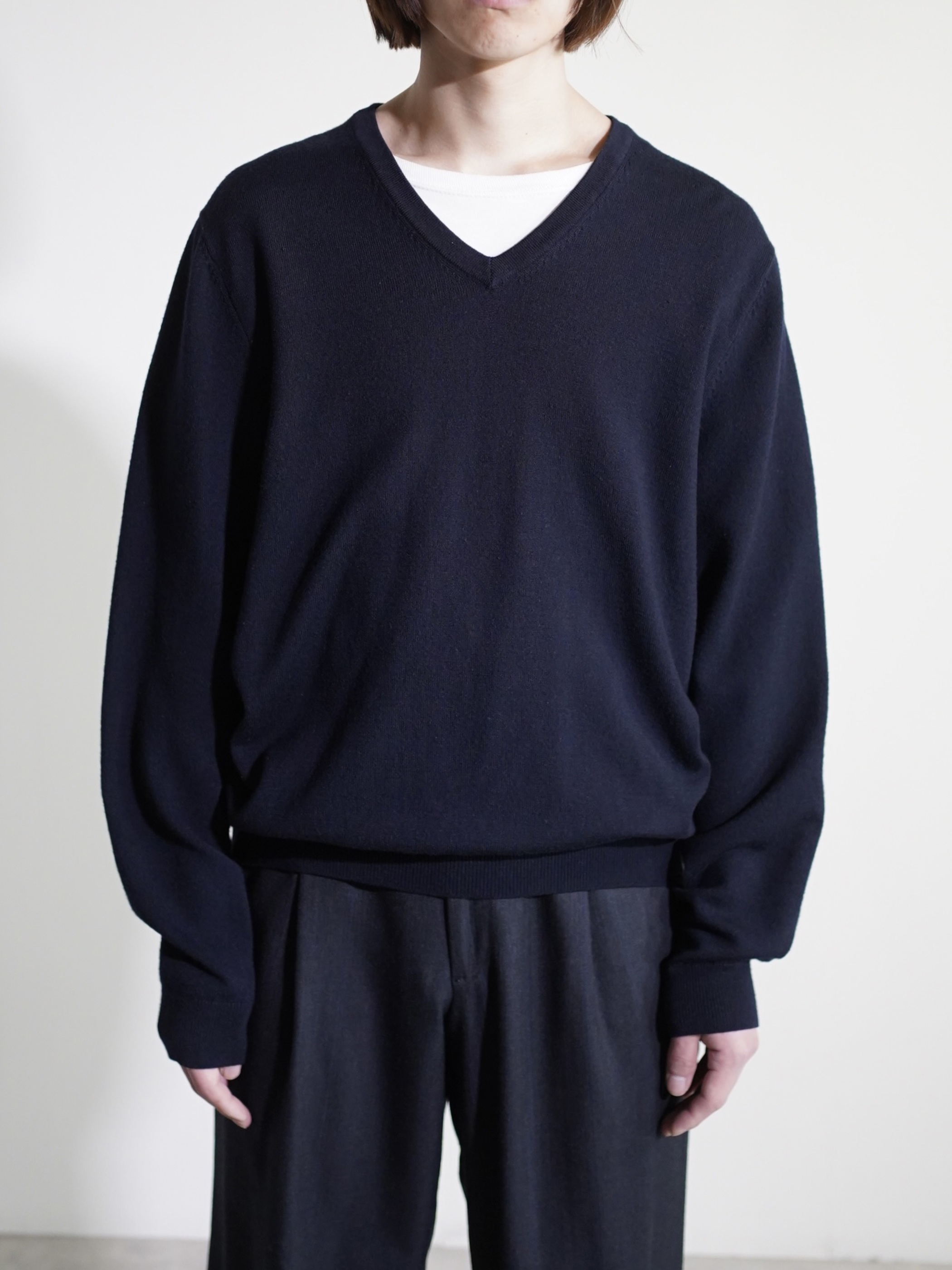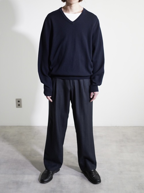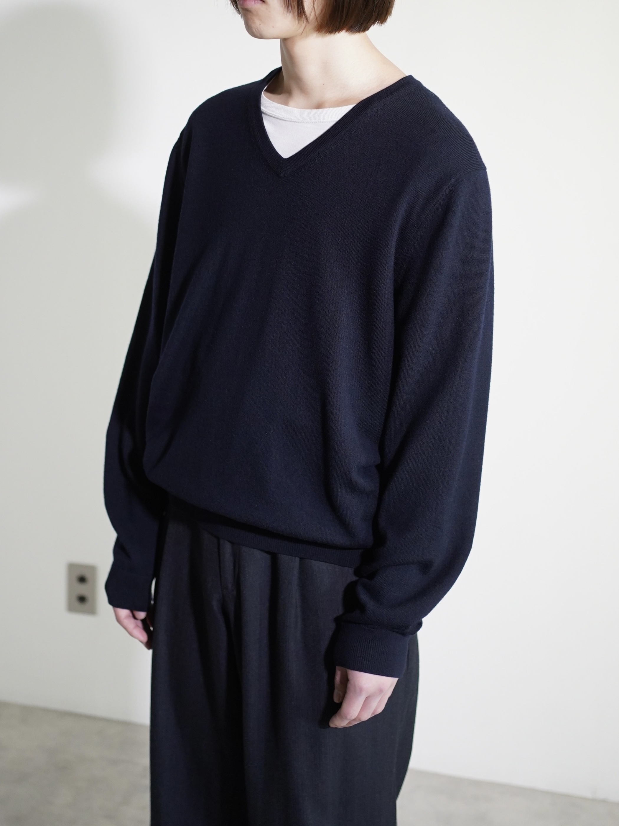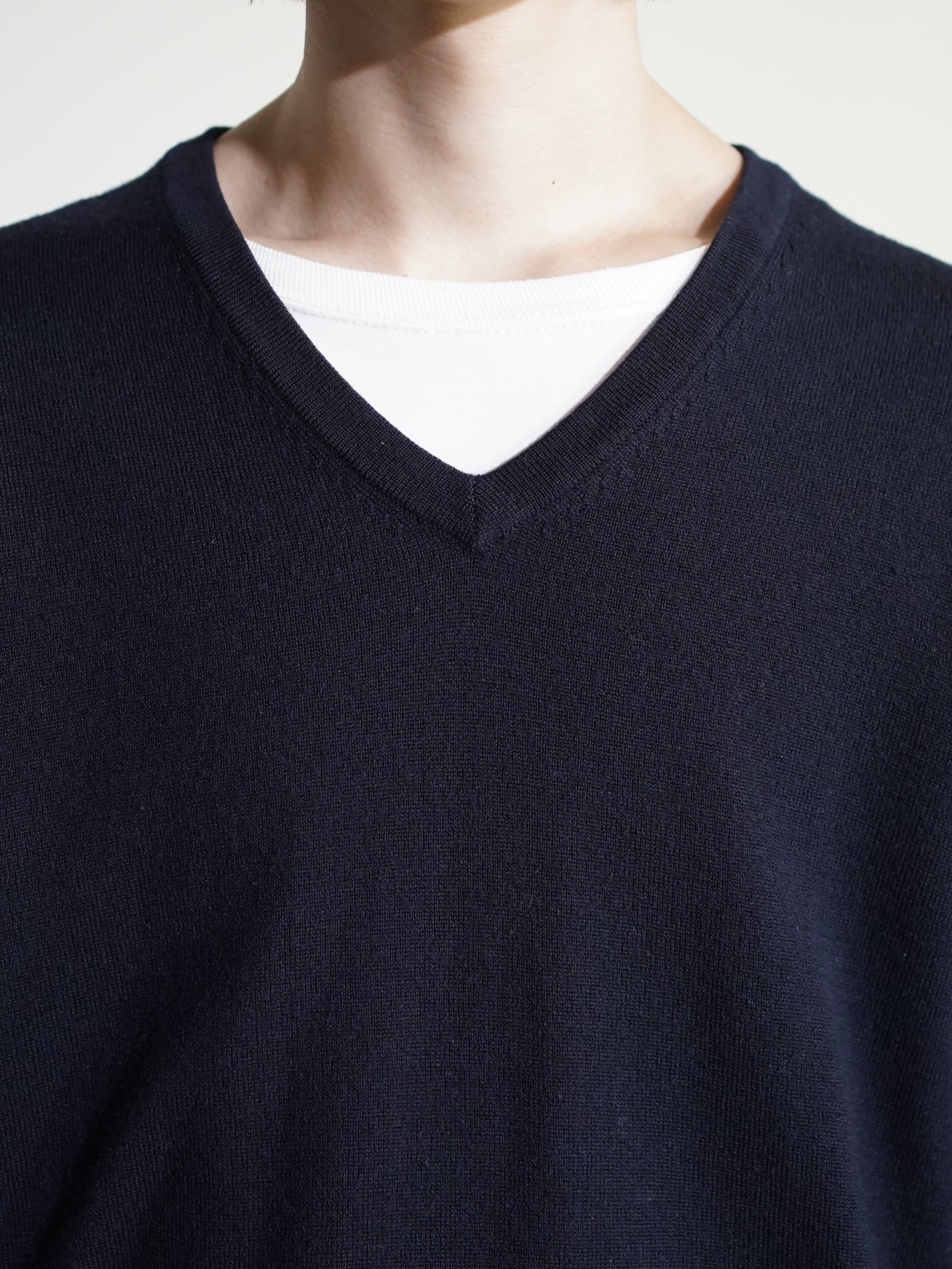 Vネックで意識しているところですが、広すぎず、深すぎないので春先一枚でも。