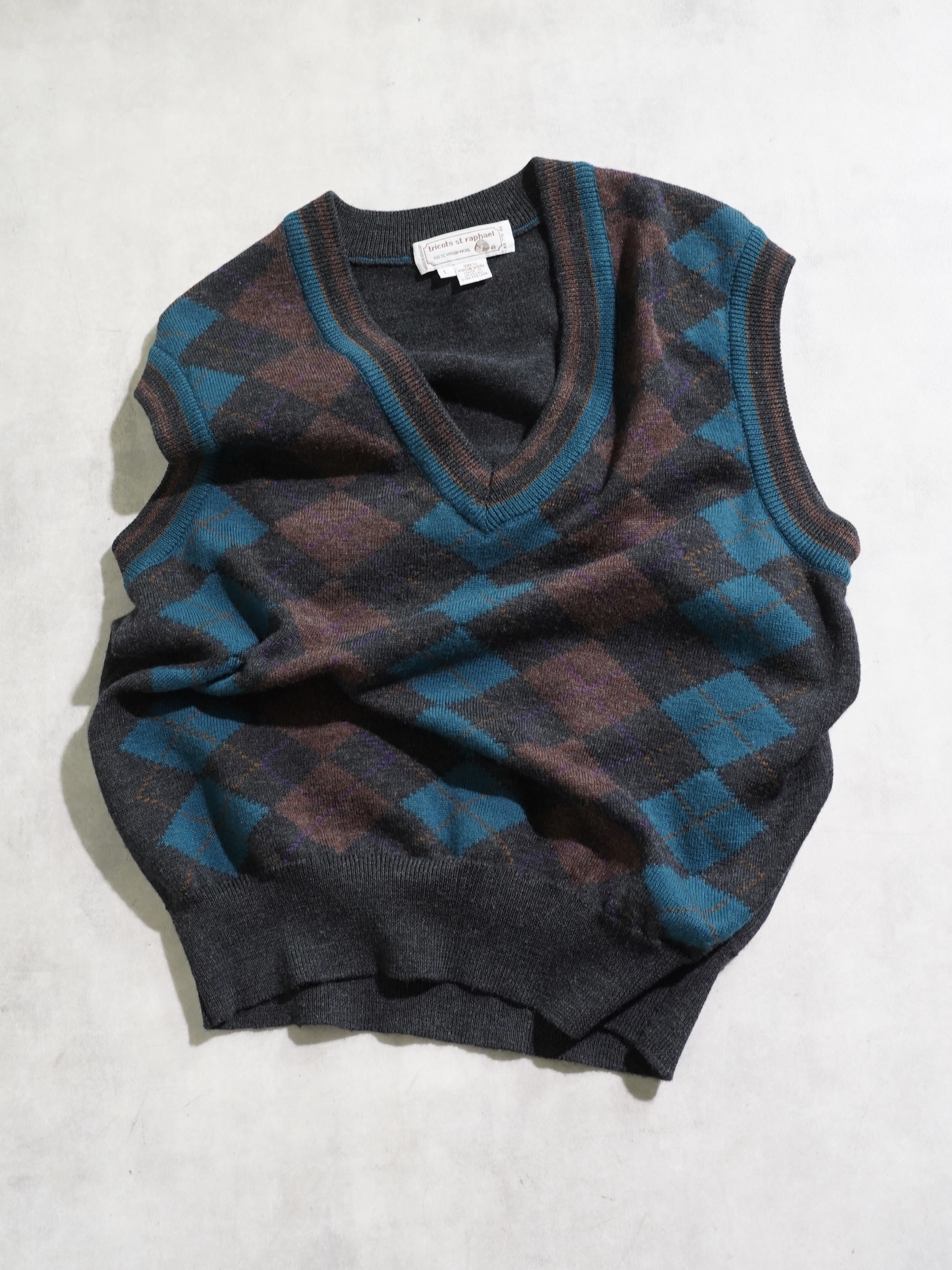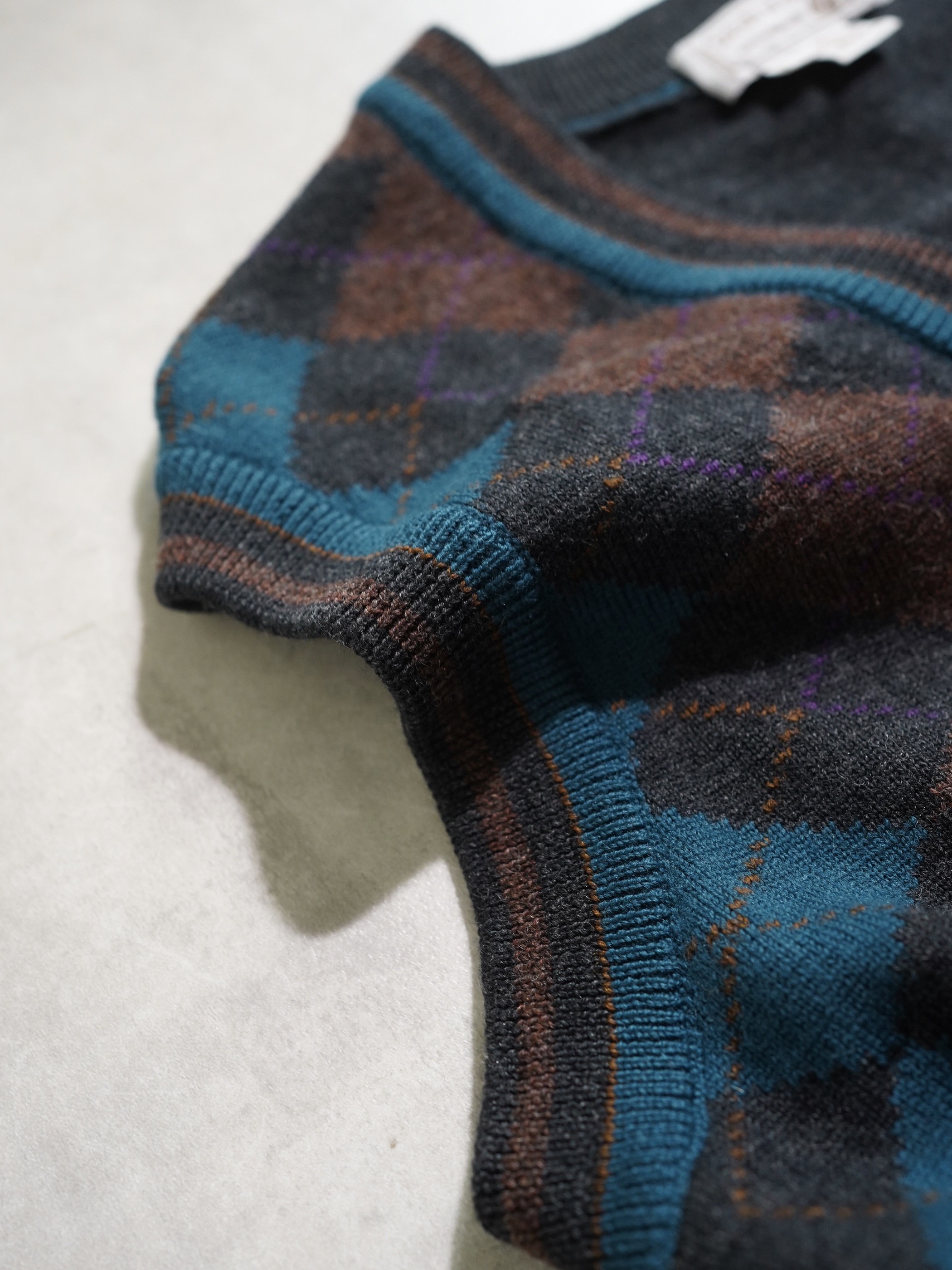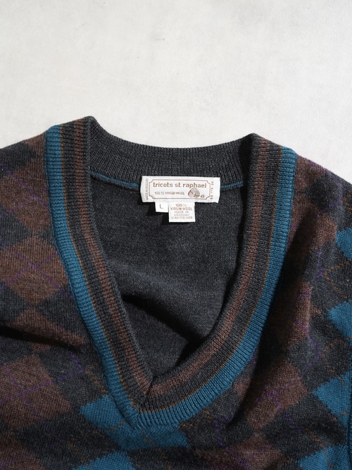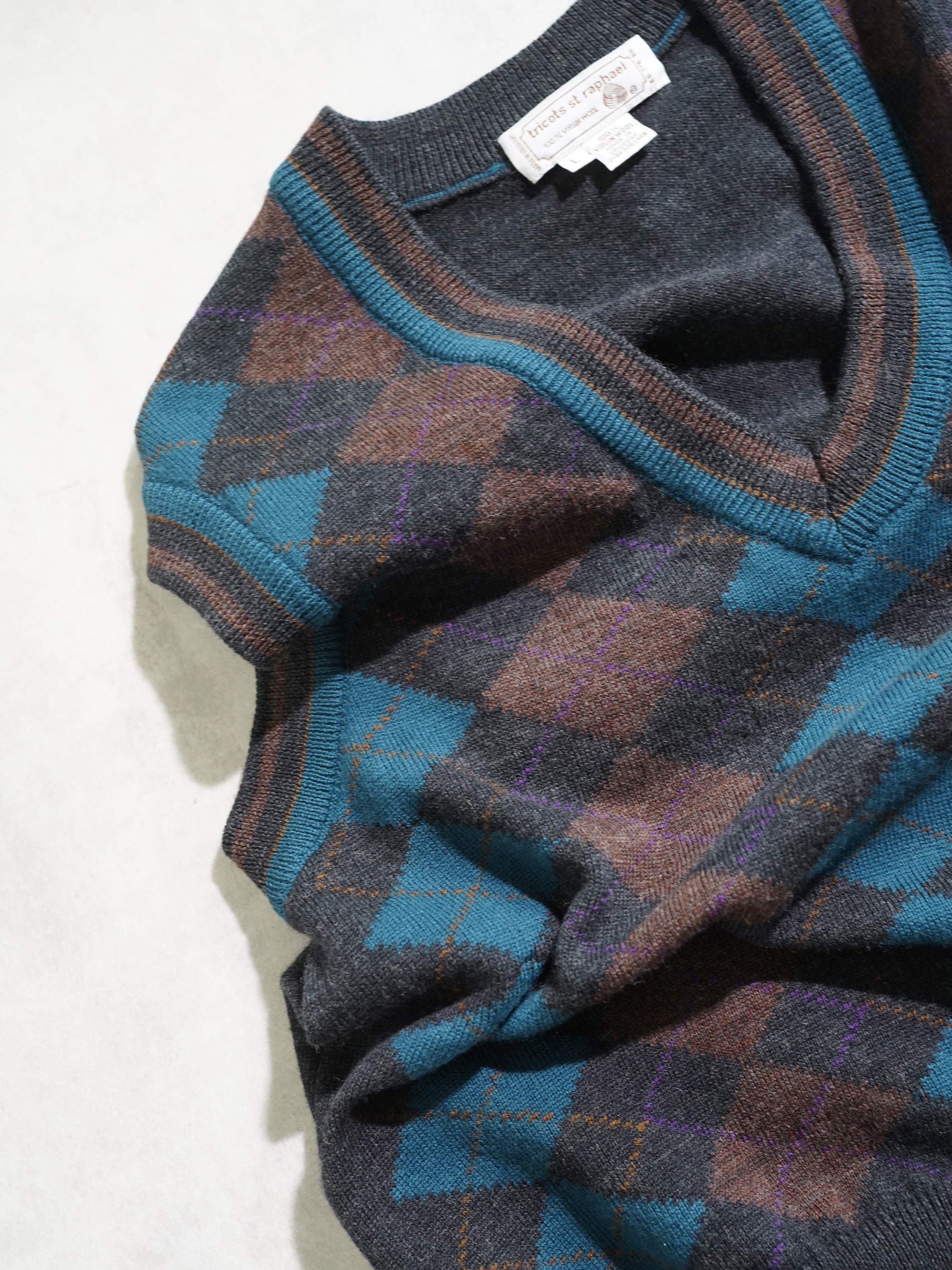 1990's tricots st raphael virgin wool V-neck argyle knit vest/Made in Uruguay