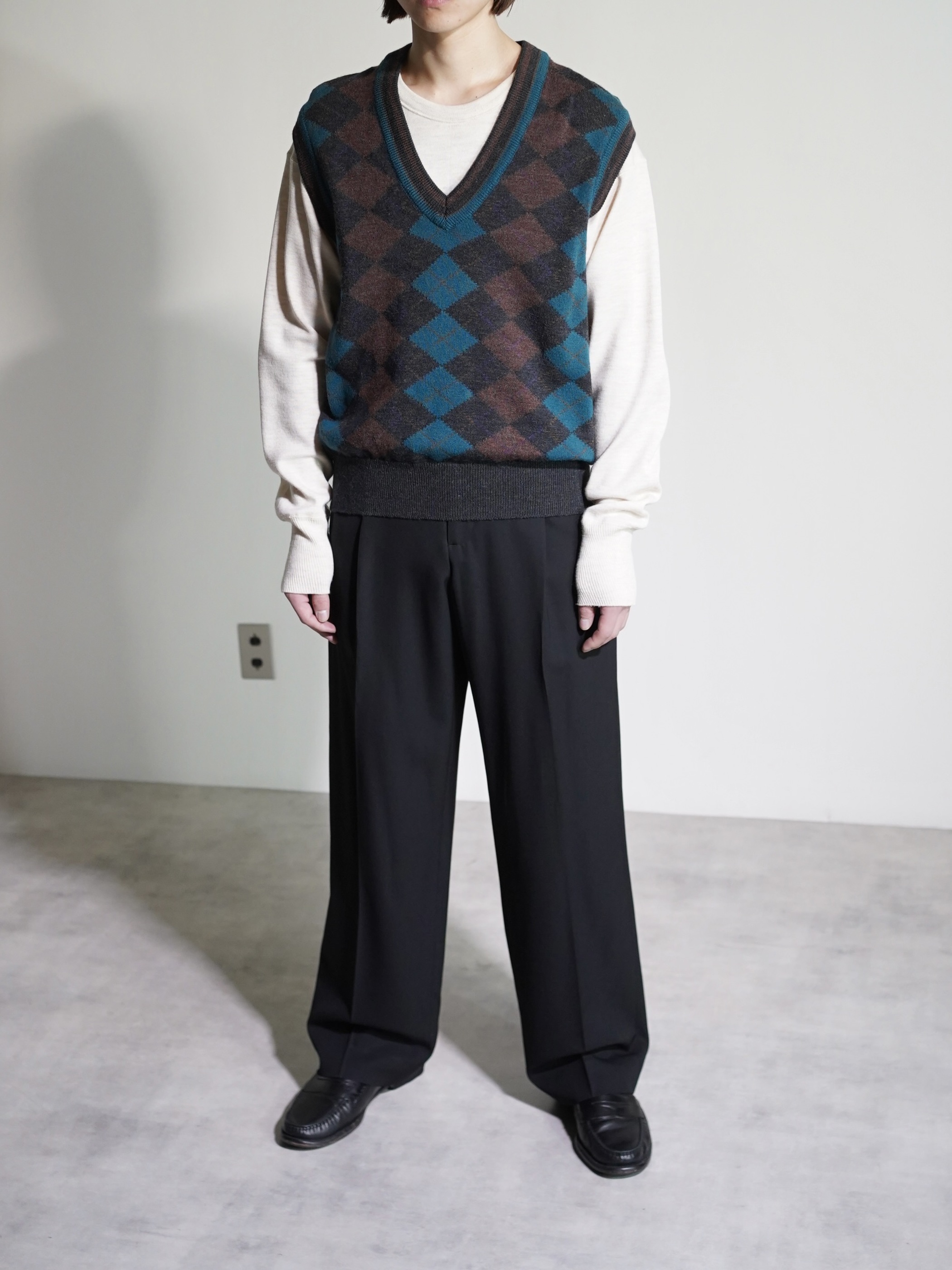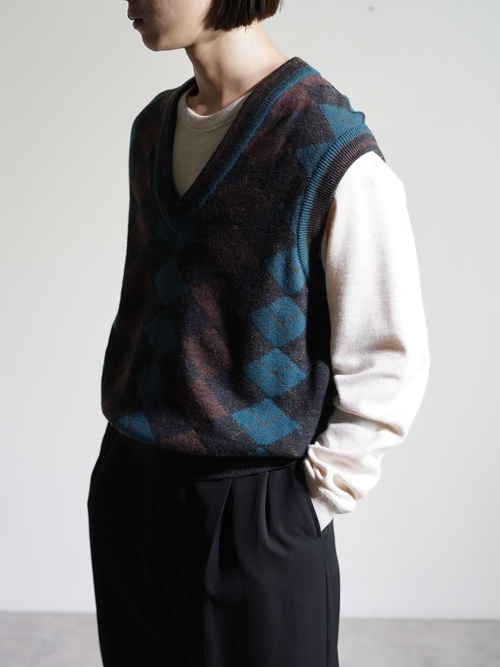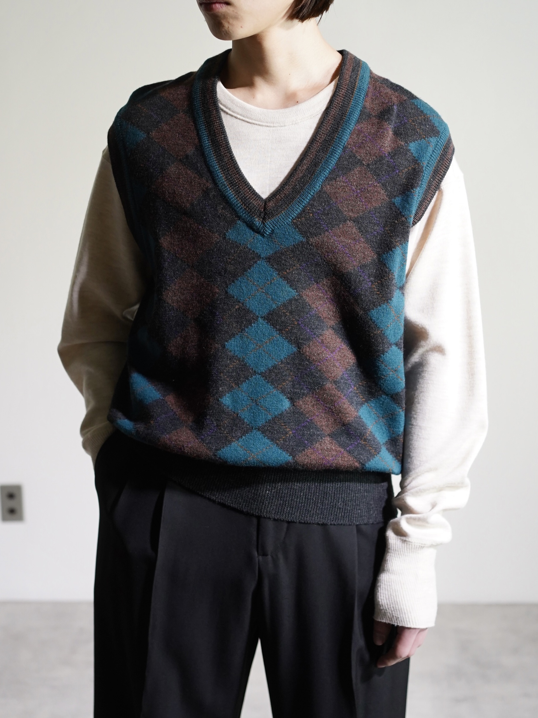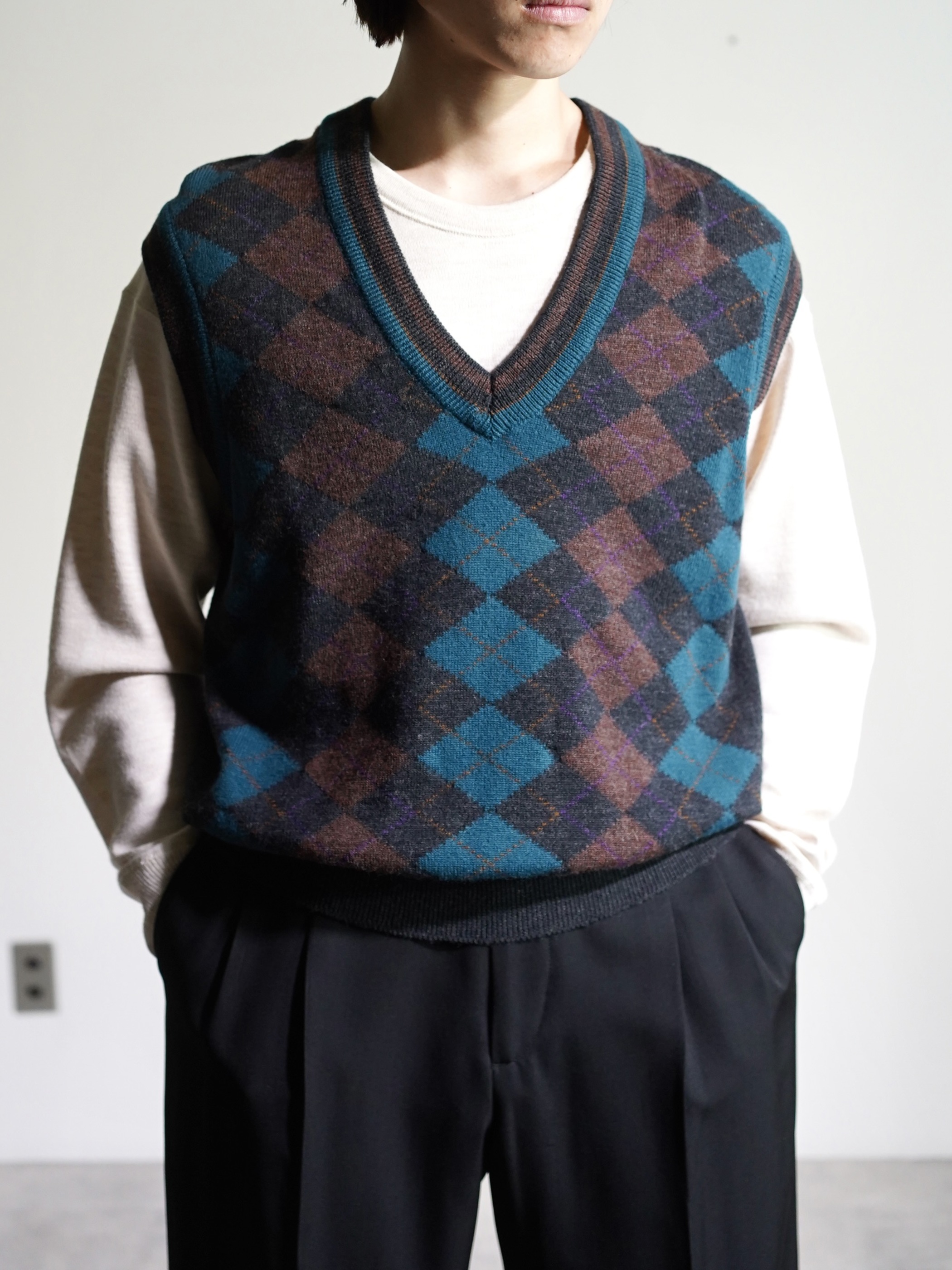 1990's tricots st raphael virgin wool V-neck argyle knit vest/Made in Uruguay