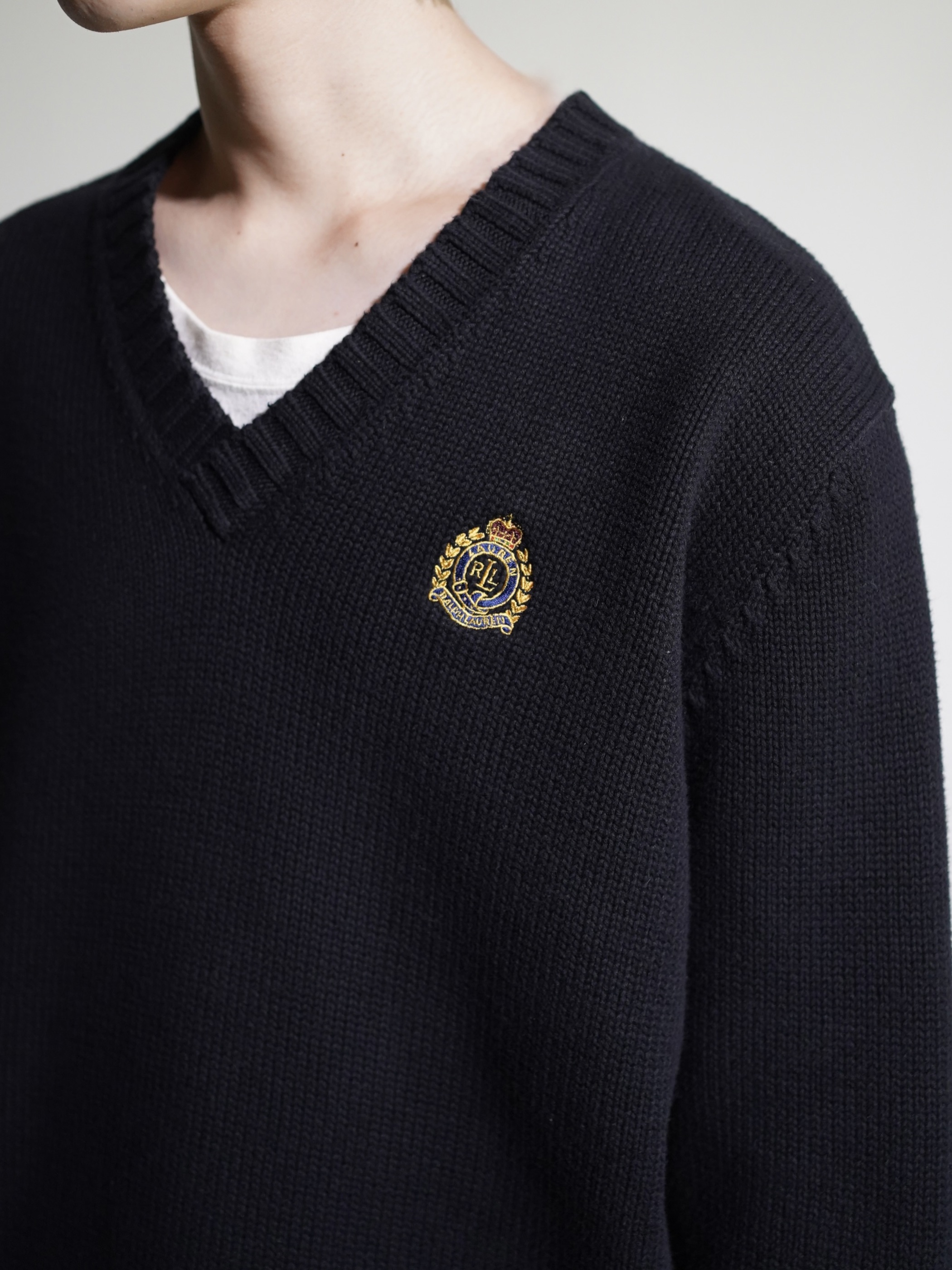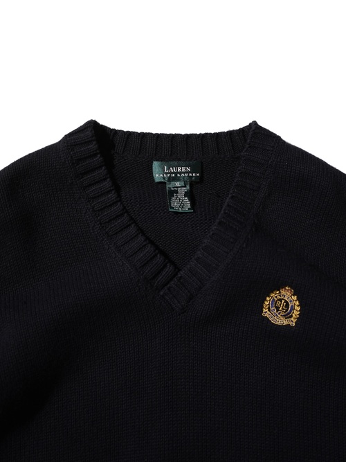 1990's Lauren Ralph Lauren emblem 100% cotton V-neck knit sweater