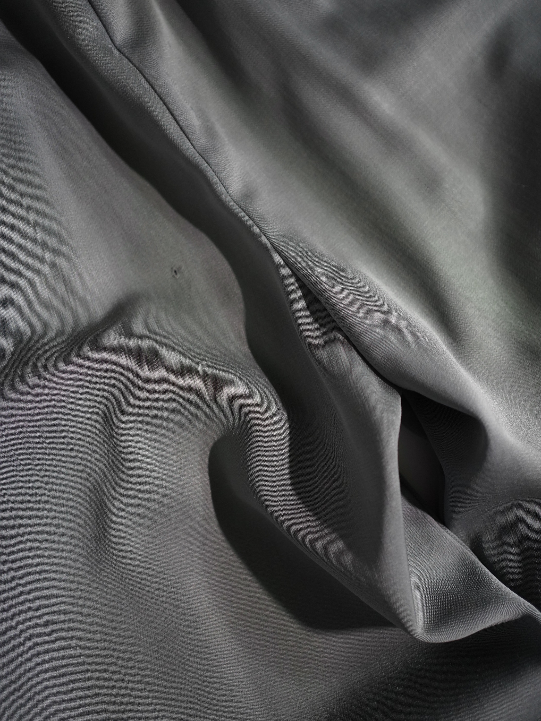 高密度に織られた重みのある生地から生まれる、艶やかな光沢感とドレープ感はこの当時のアイテムでしか感じられない魅力があります。