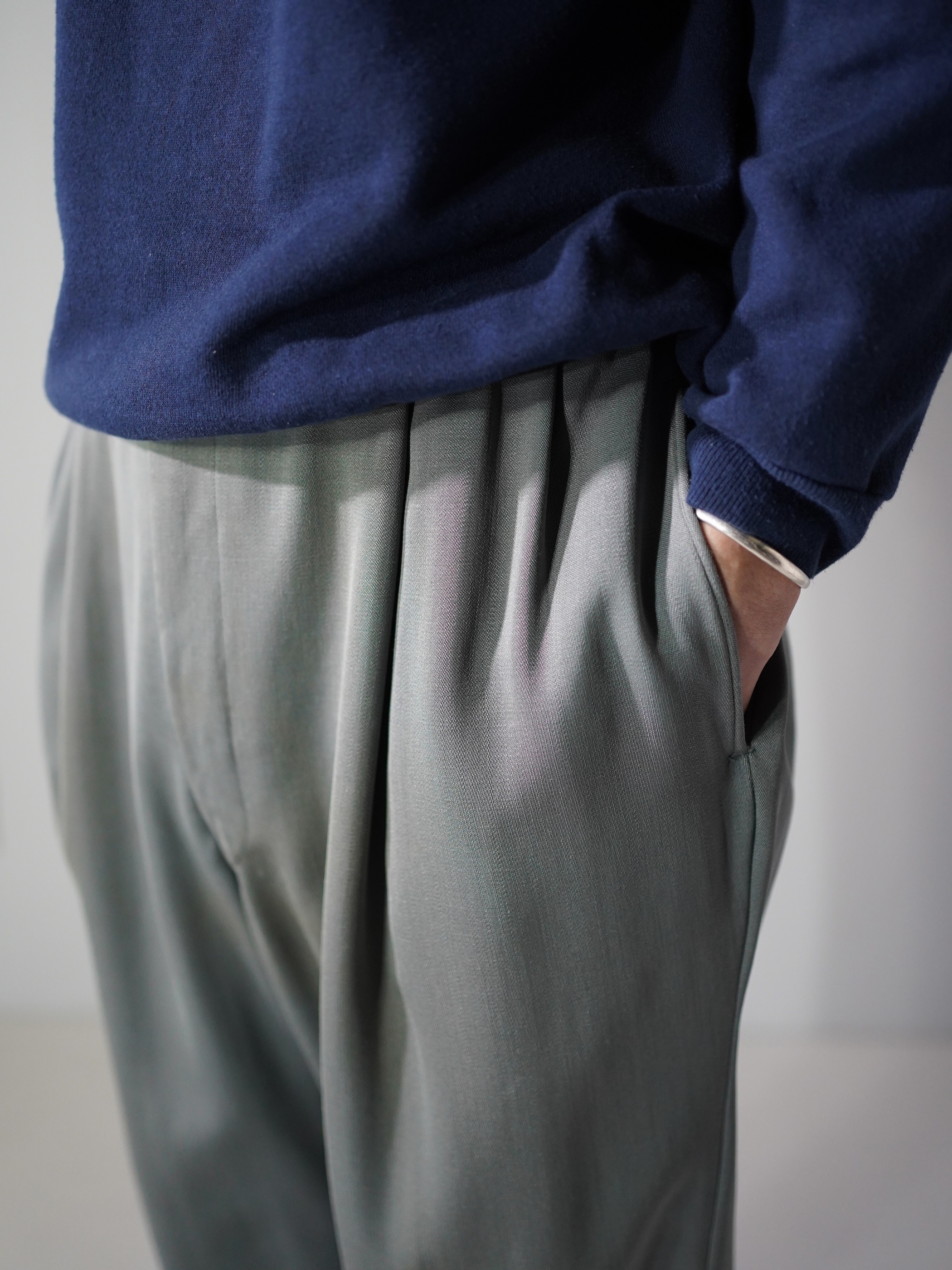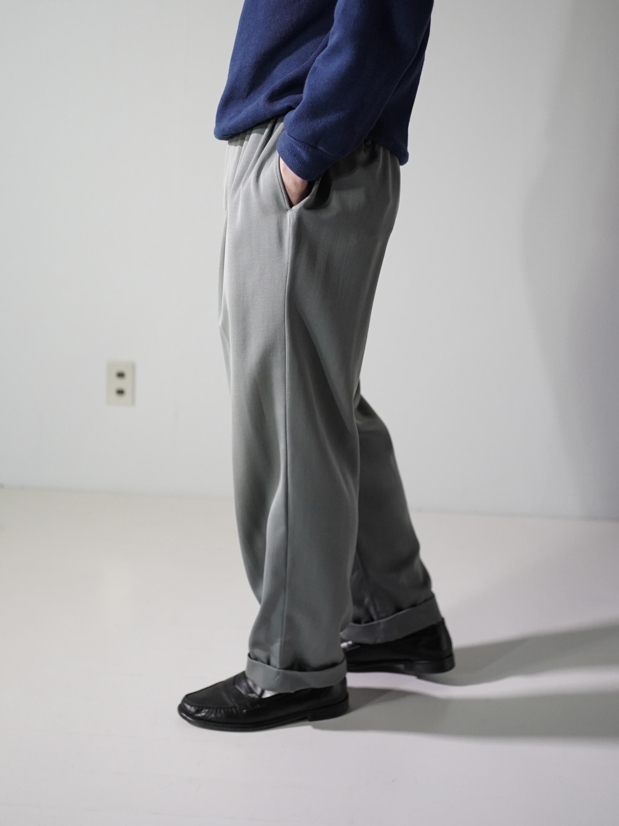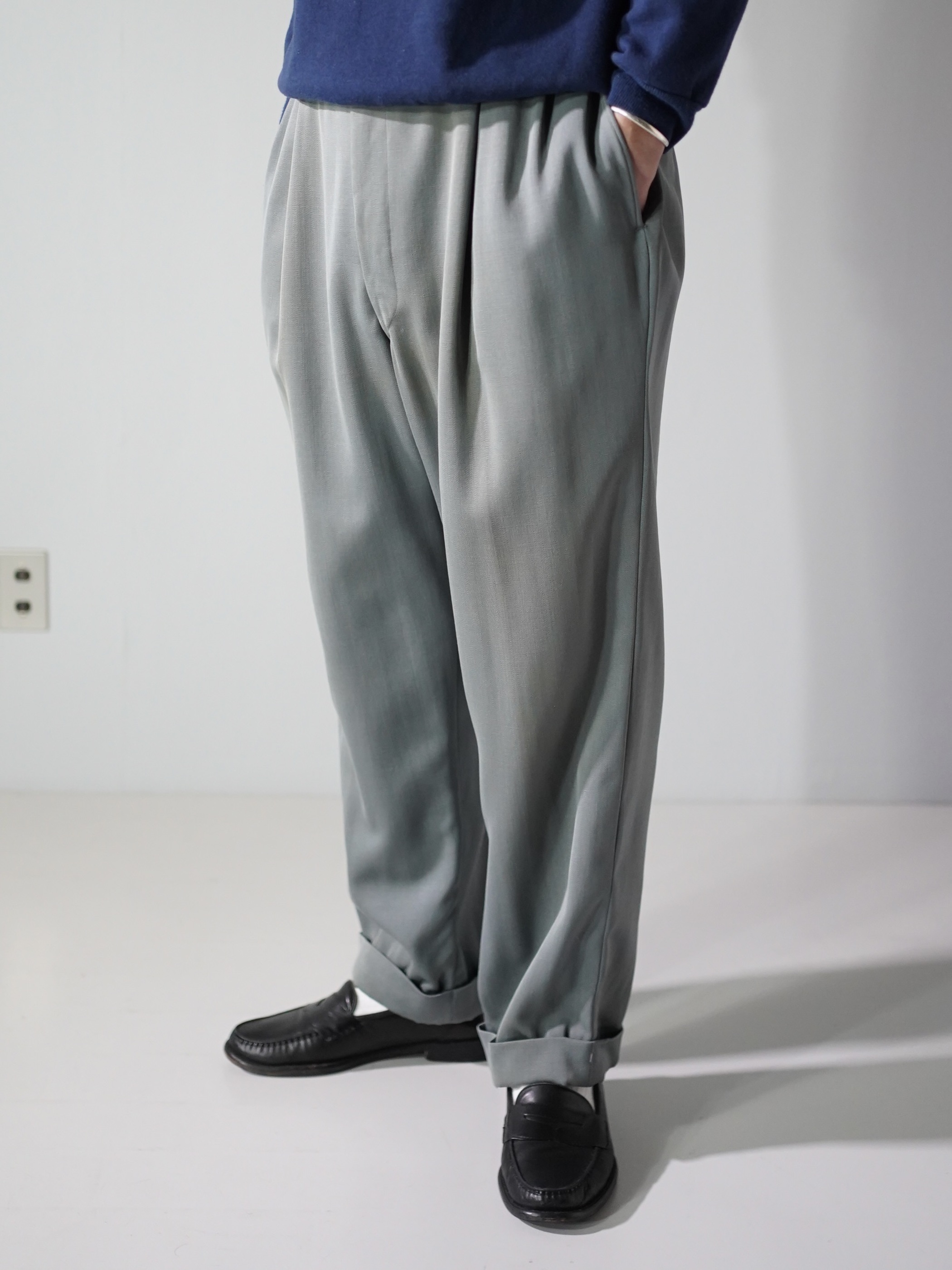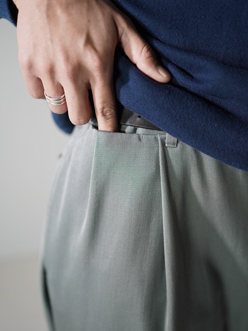 上品であり、綺麗すぎない色味と生地表情なので、硬くとらわれず日常着にサラッと忍ばせるくらいのテンションで履きたい一本。