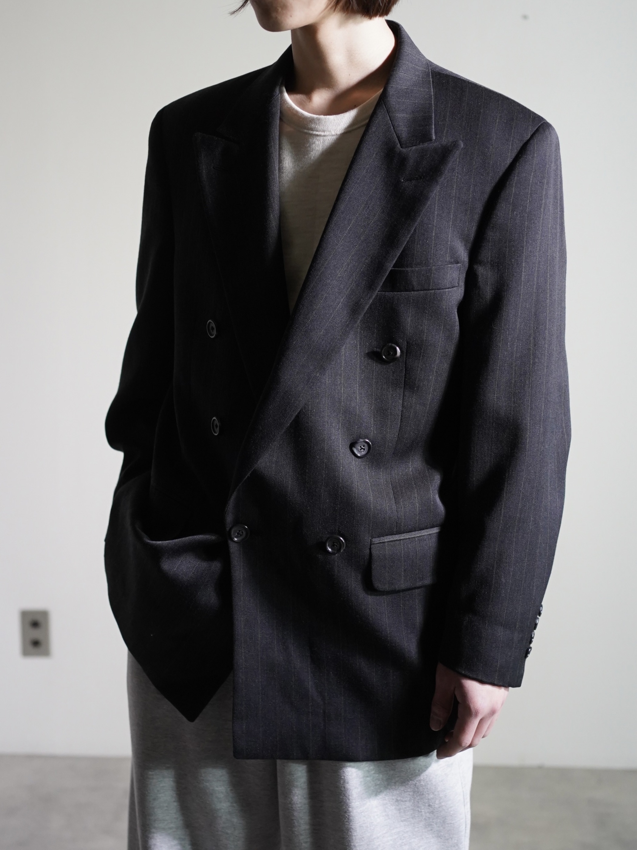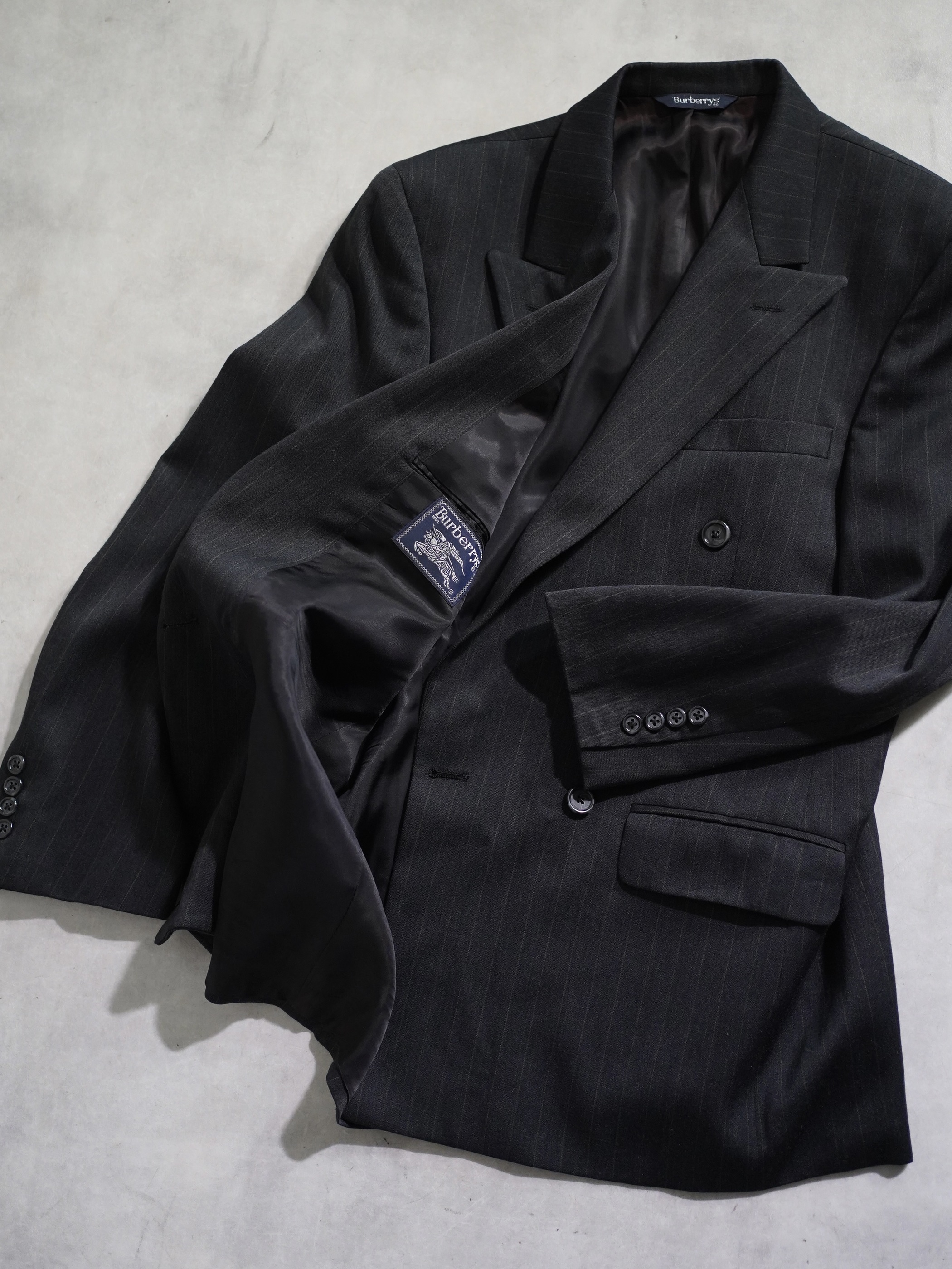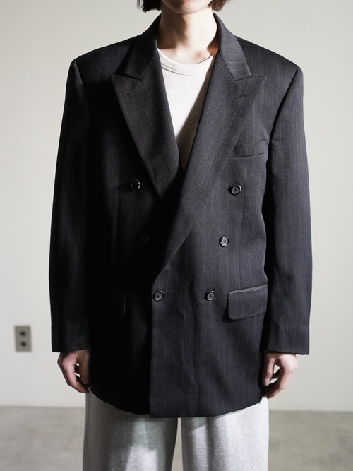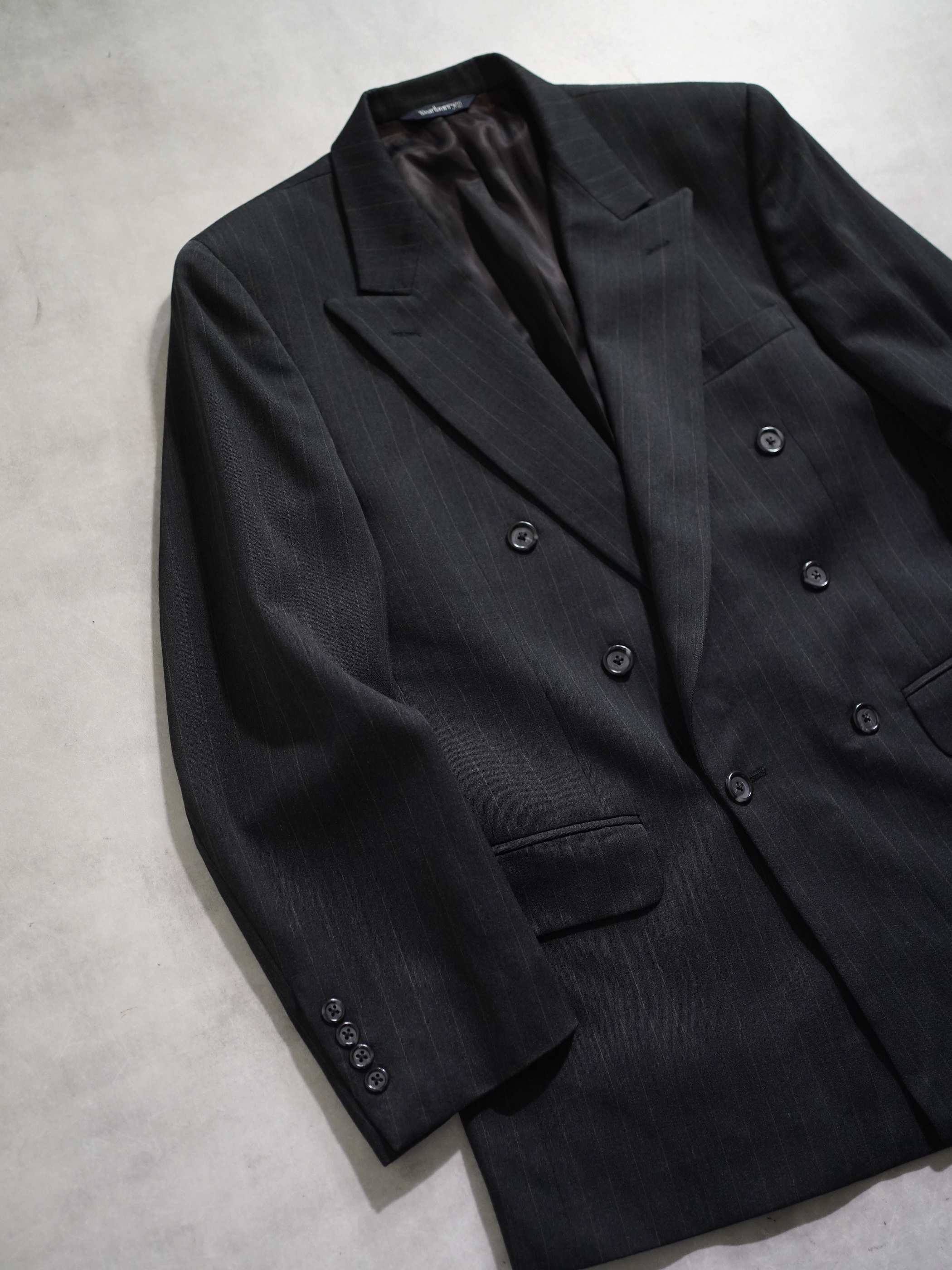 1980~ Burberrys' pure wool stripe double-breasted tailored jacket