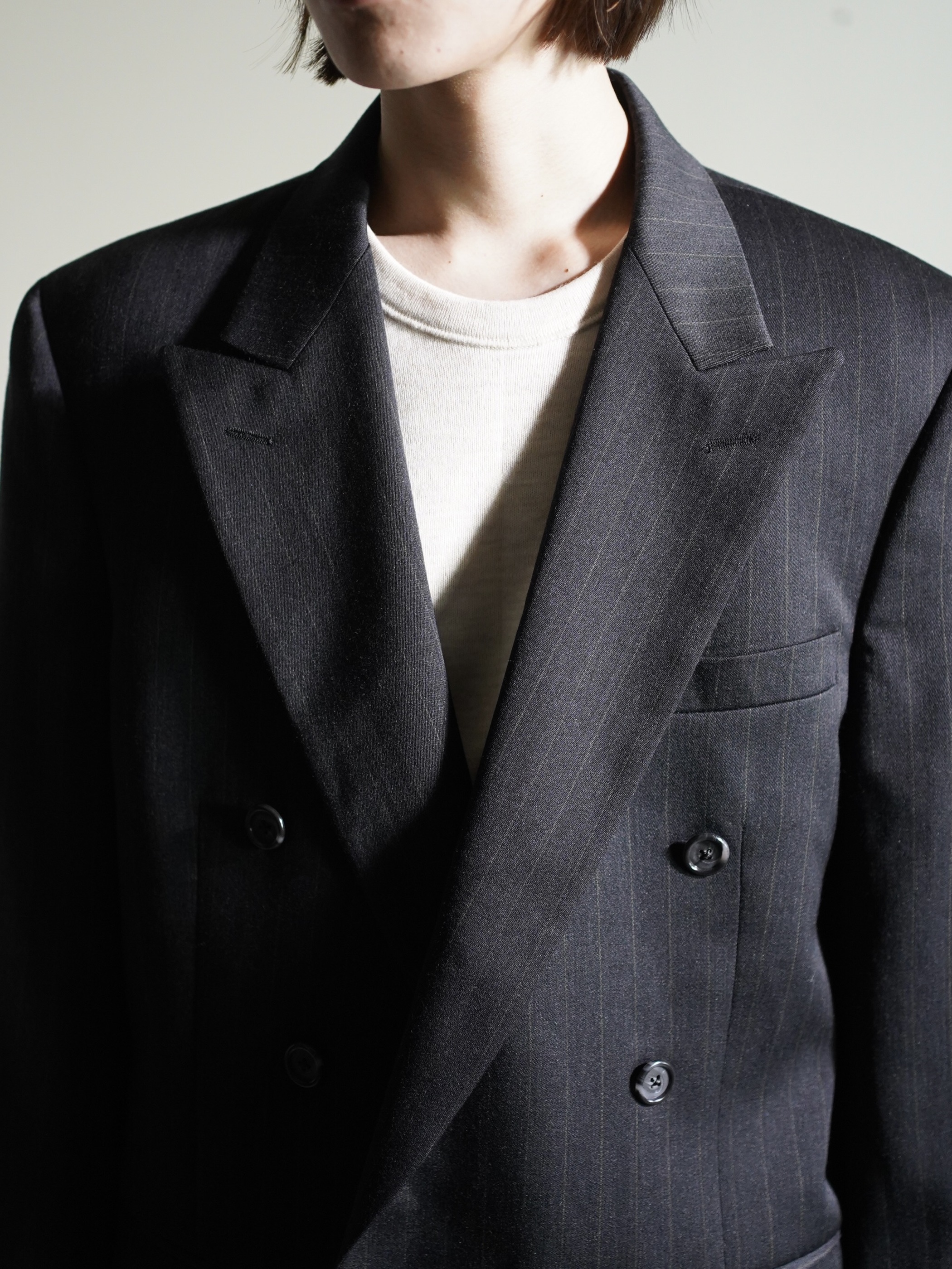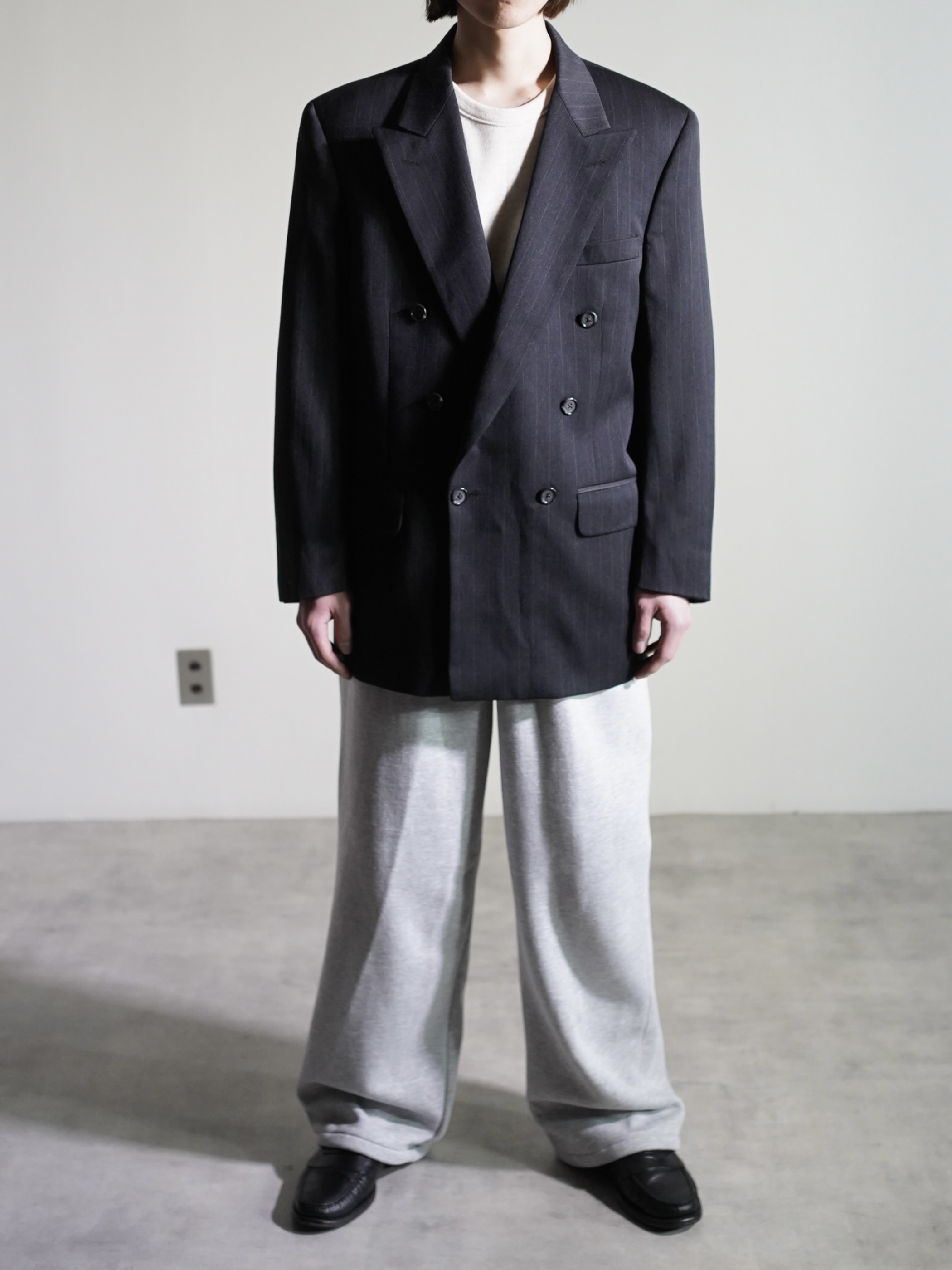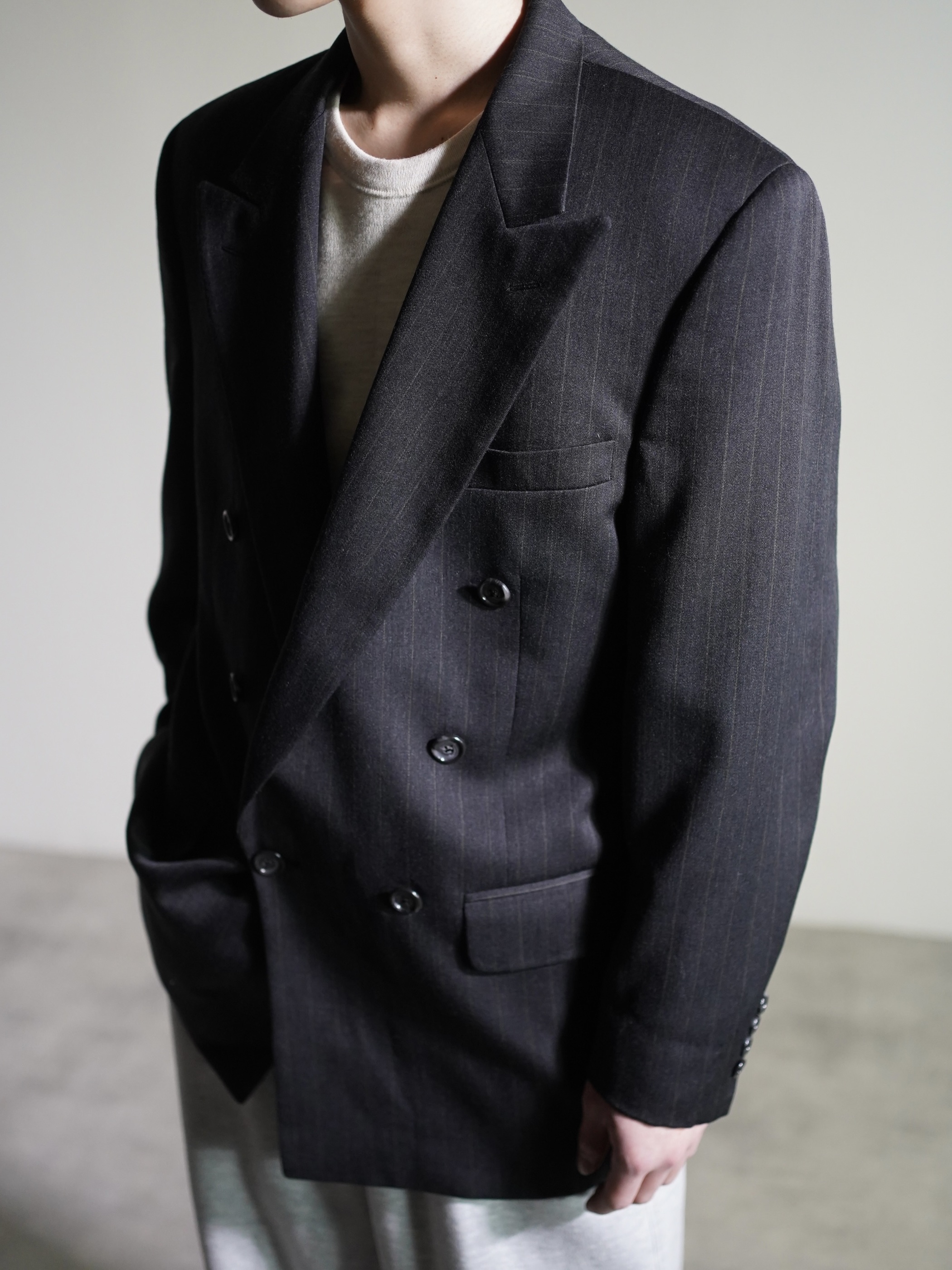 1980~ Burberrys' pure wool stripe double-breasted tailored jacket