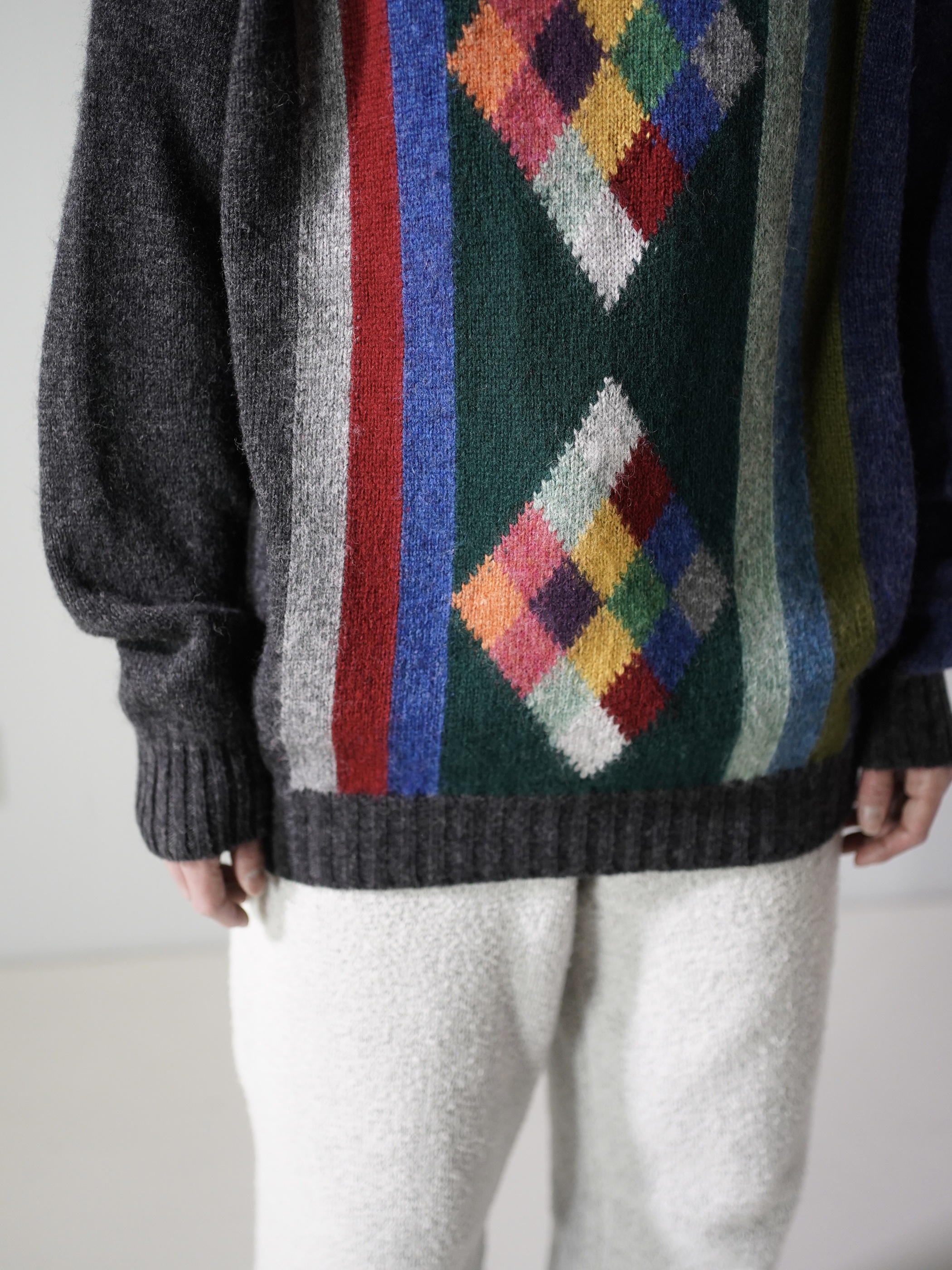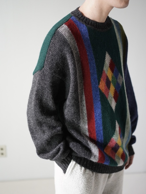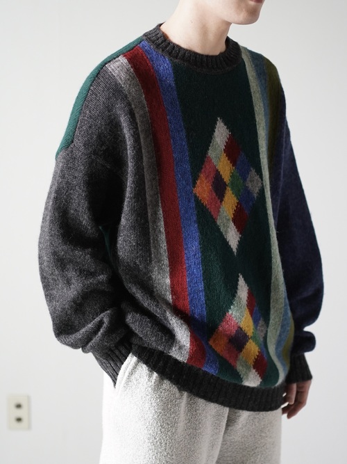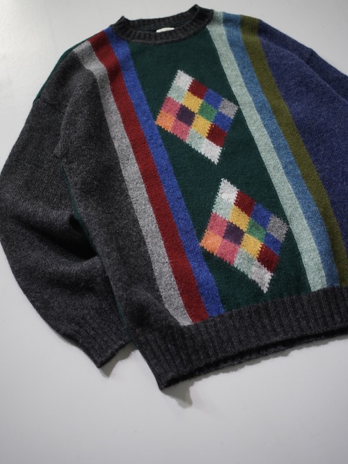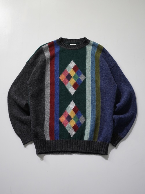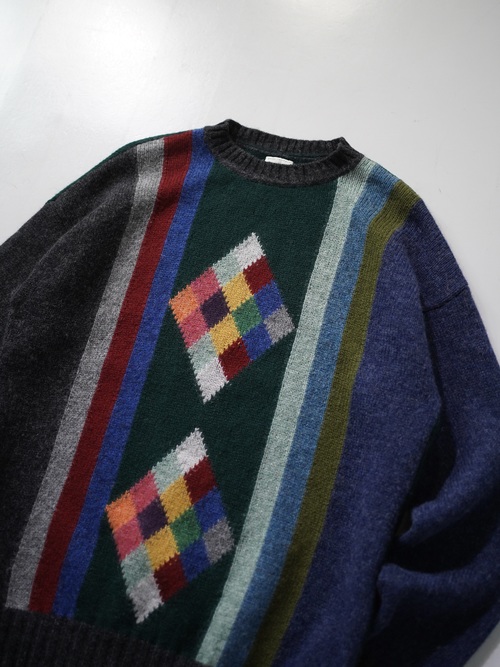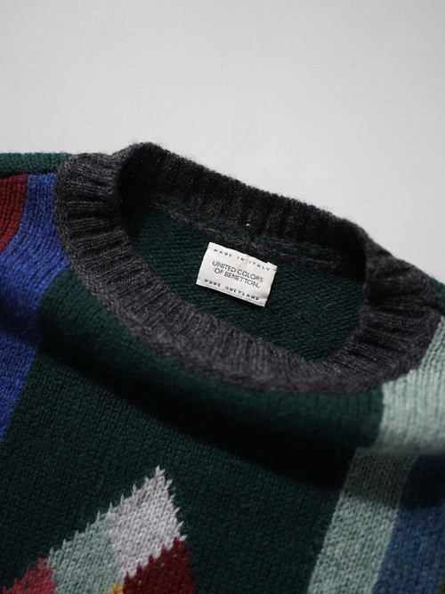 ・UNITED COLORS OF BENETTON Pure New Wool design knit sweater / Made in Italy
