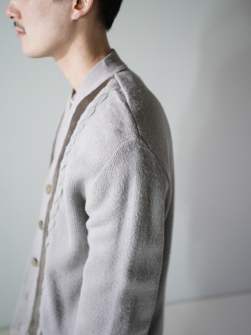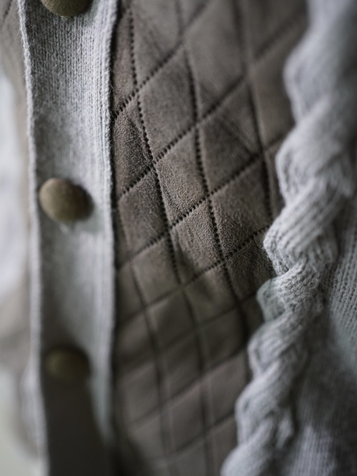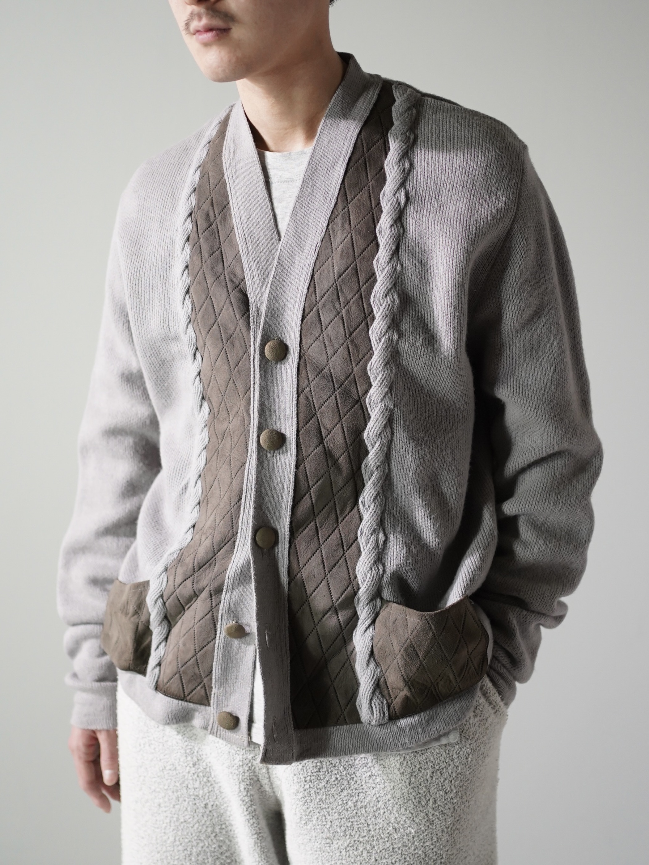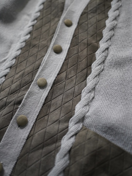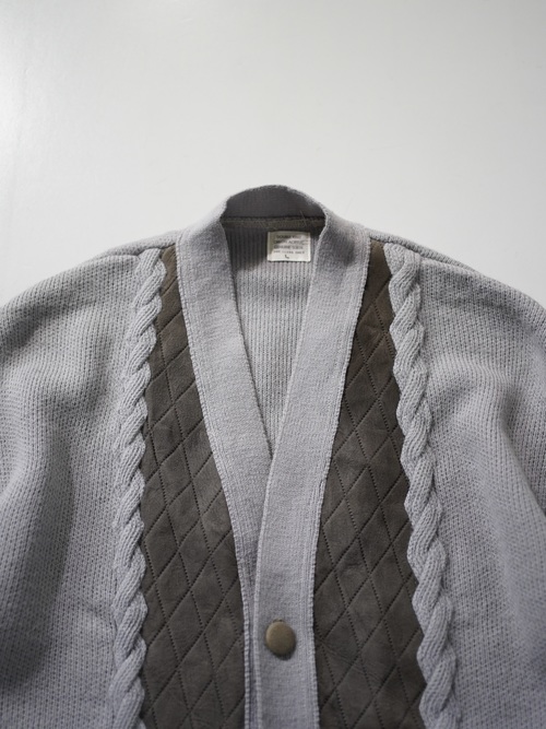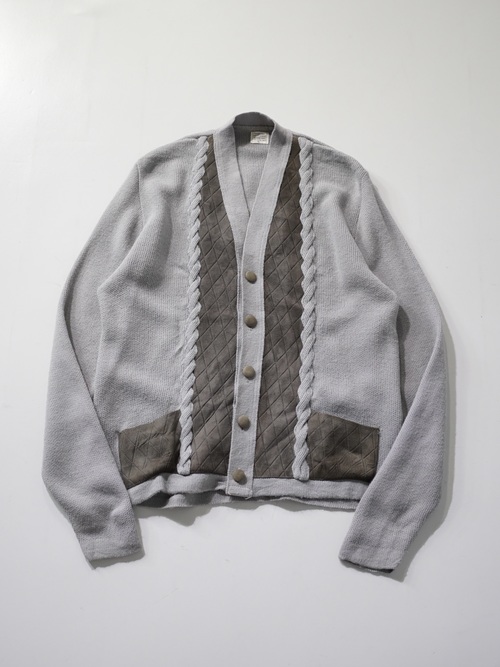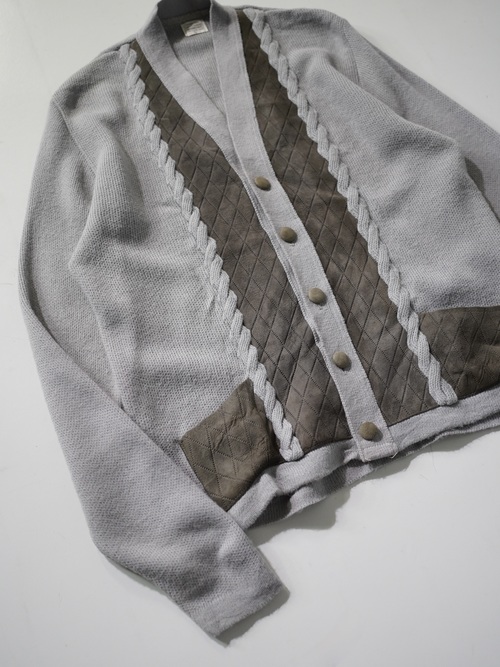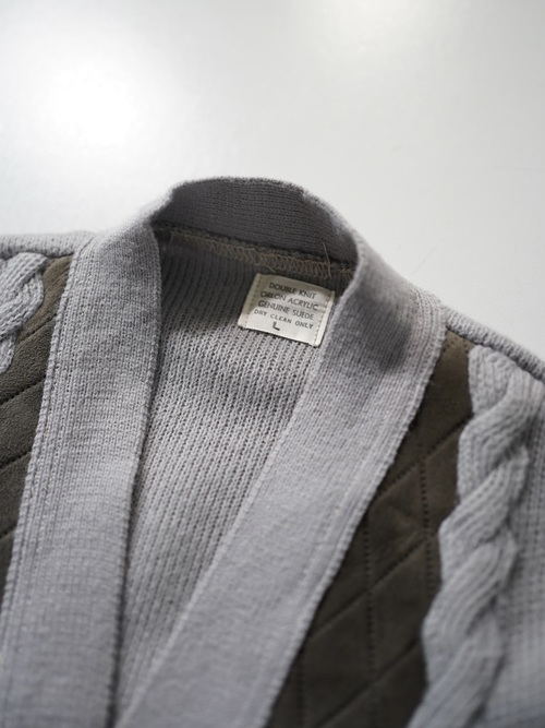 ・1980~90's ORLON Acrylic × Suede switching knit cardigan