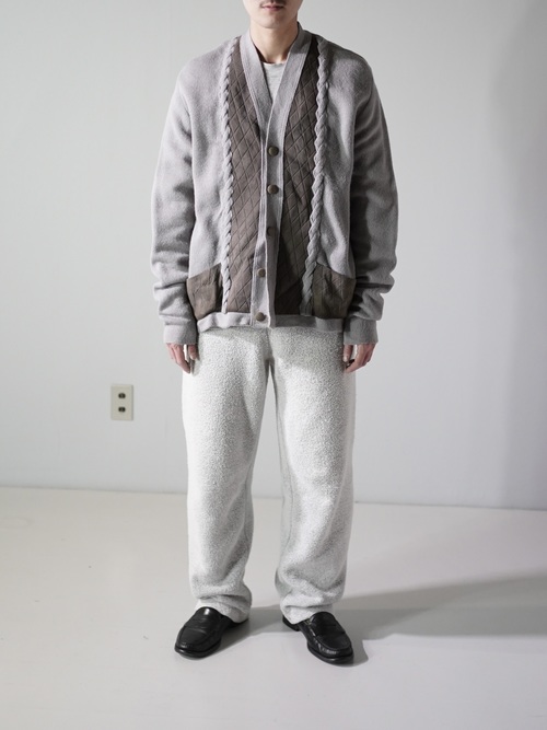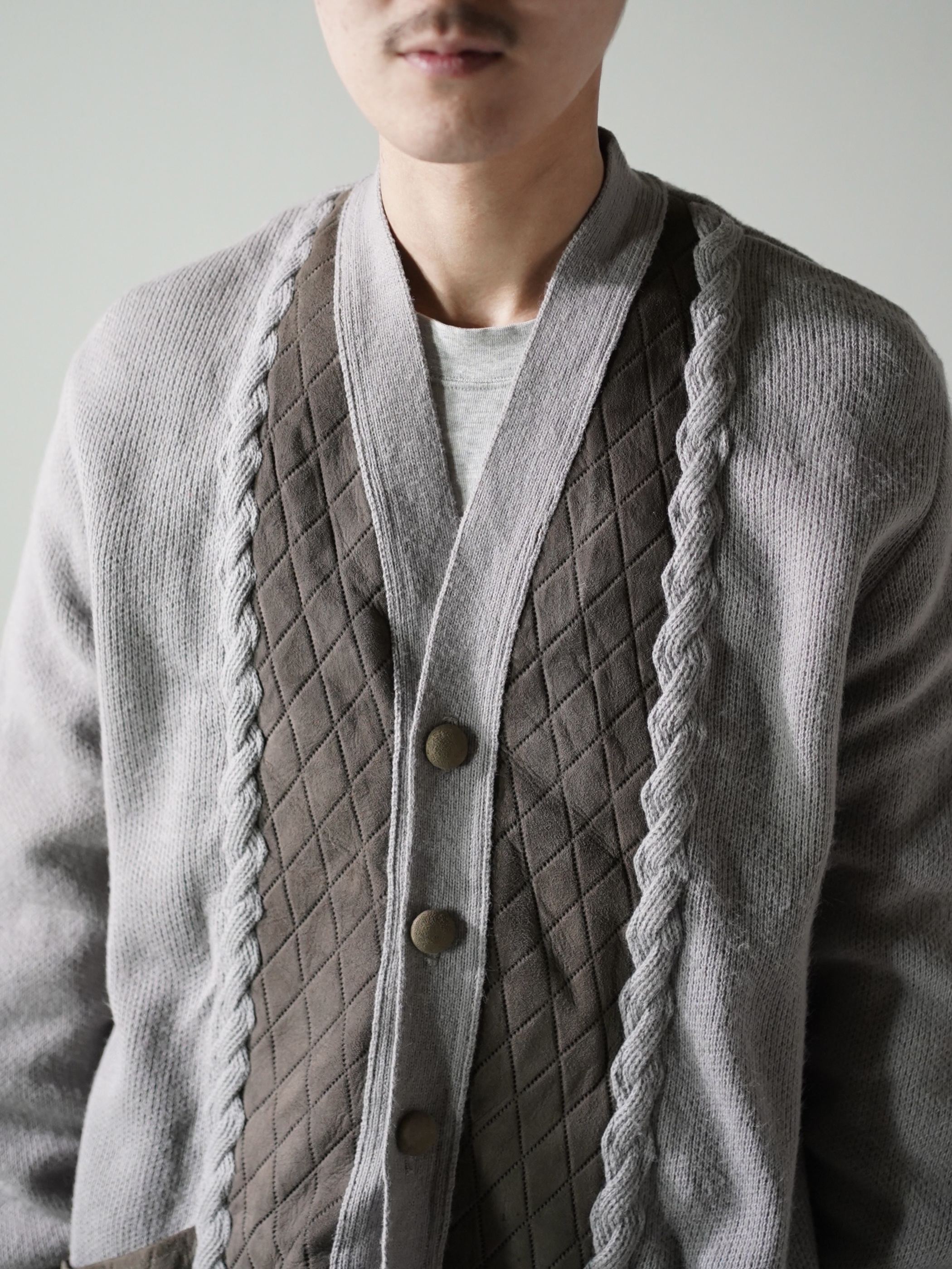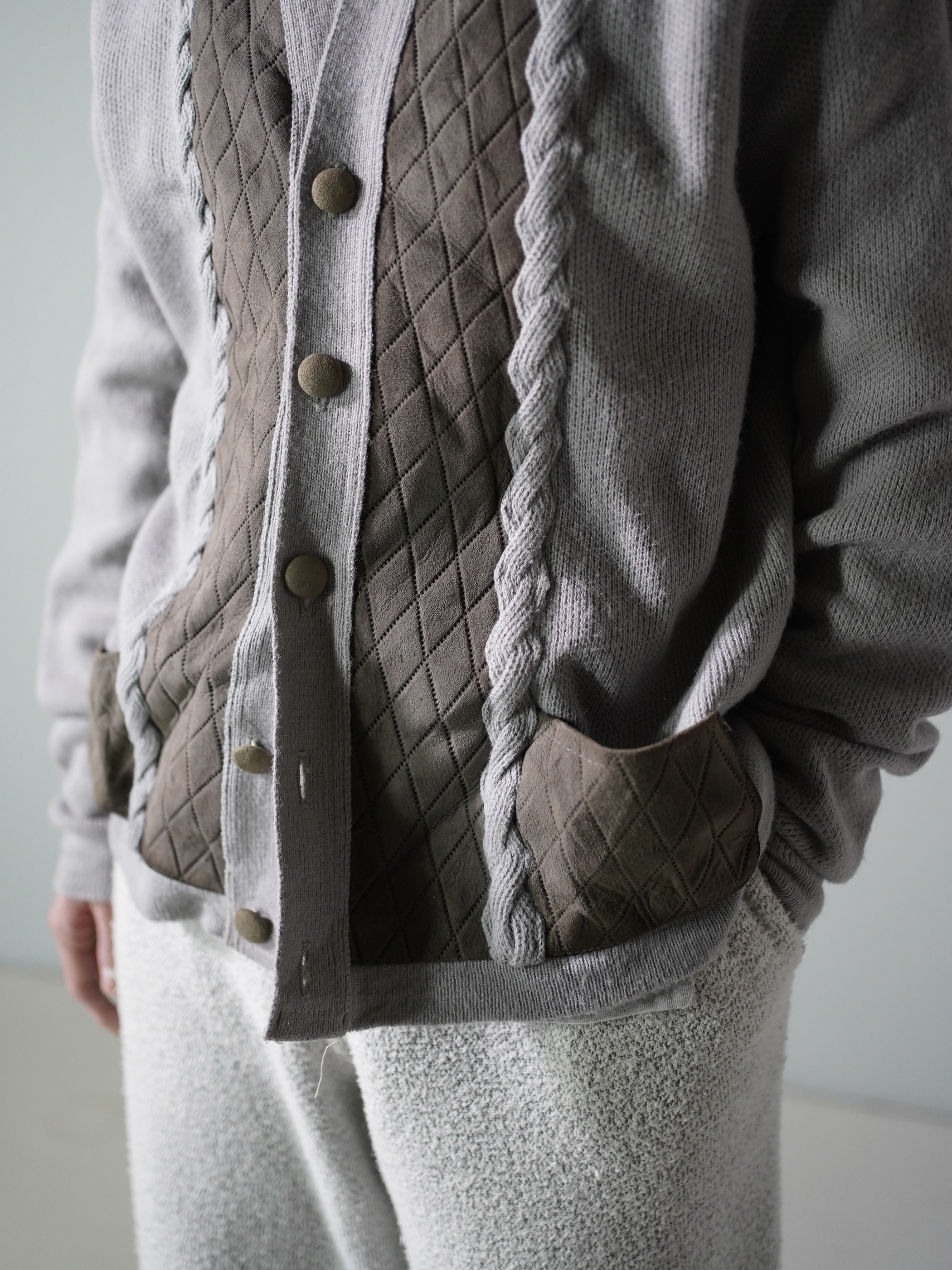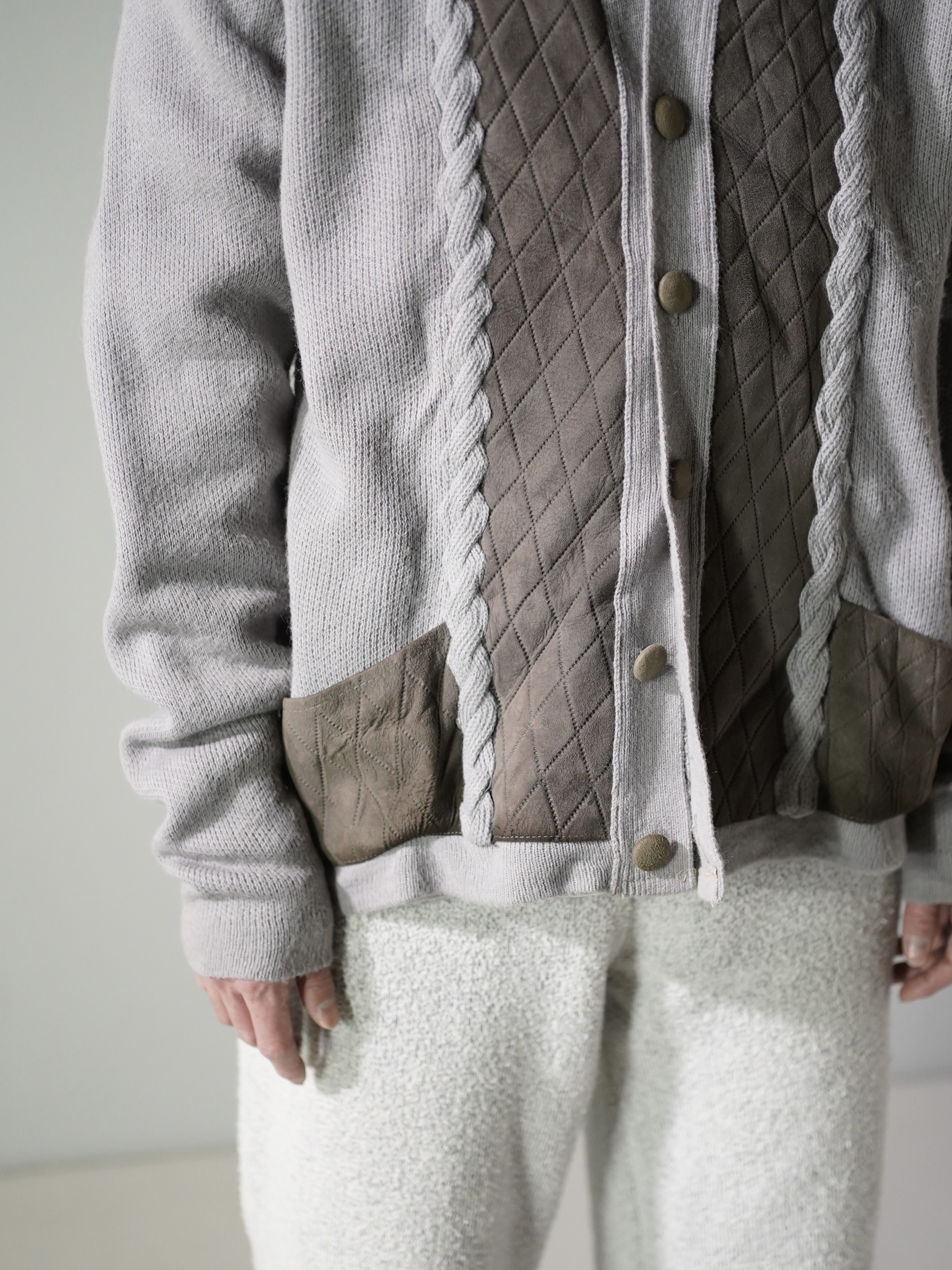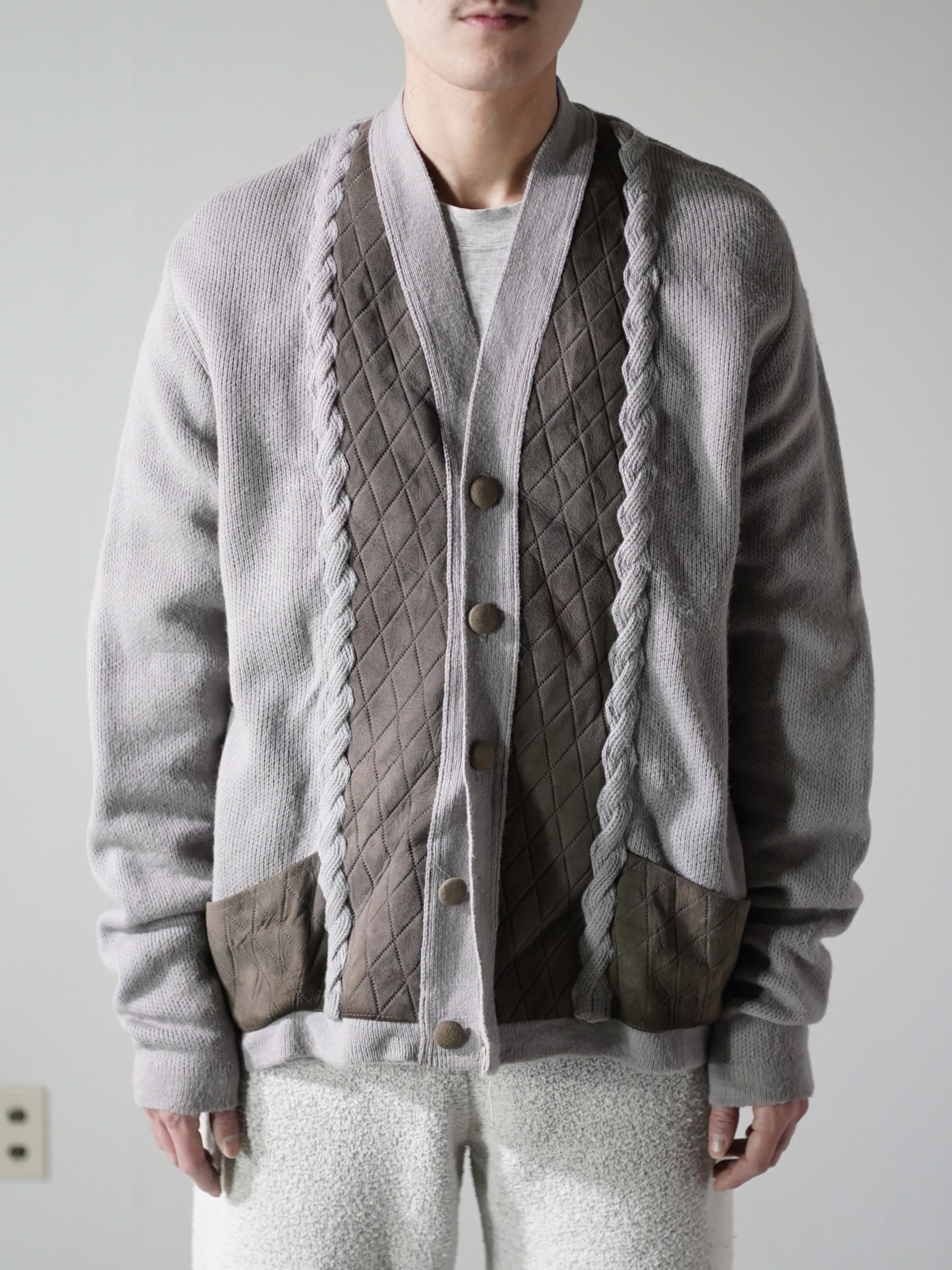 1980~90's ORLON Acrylic × Suede switching knit cardigan