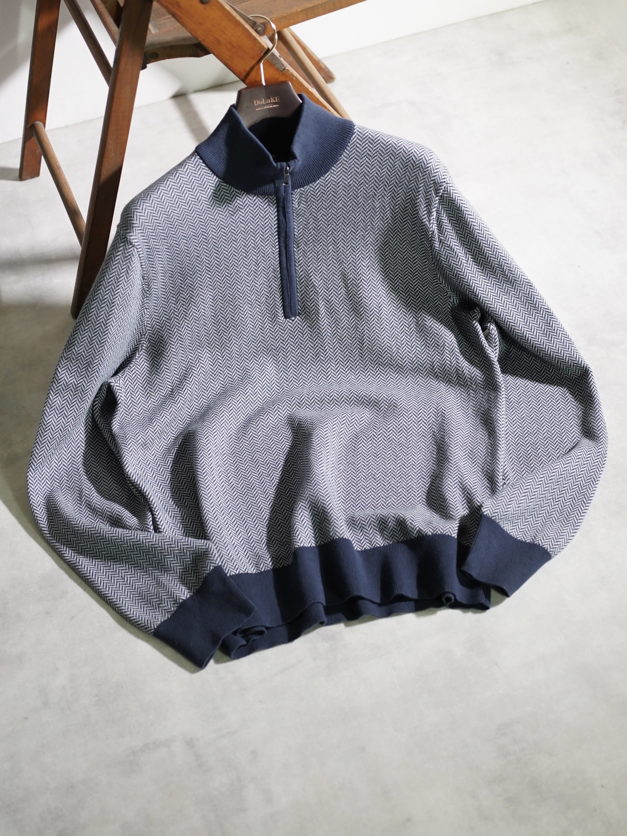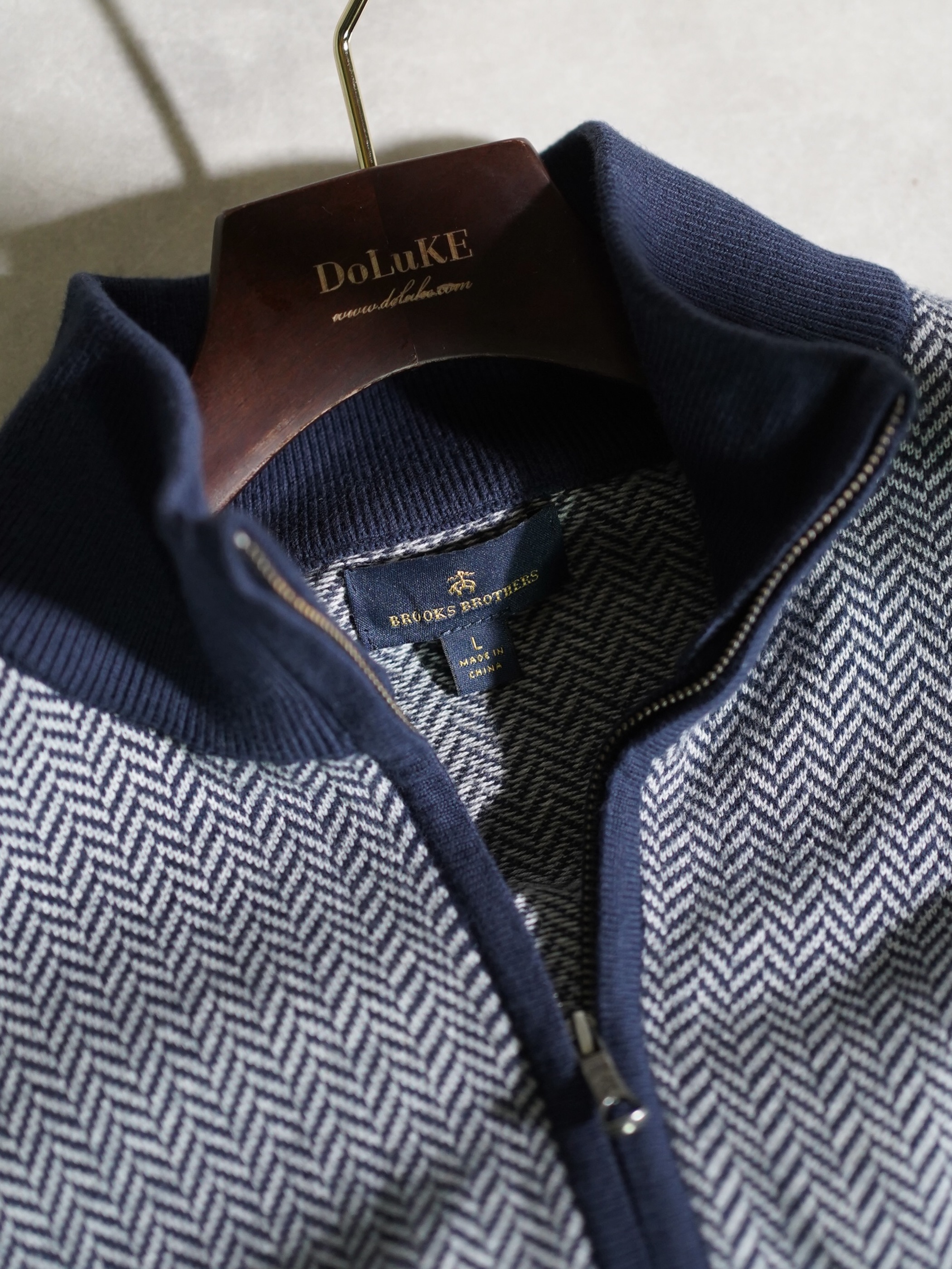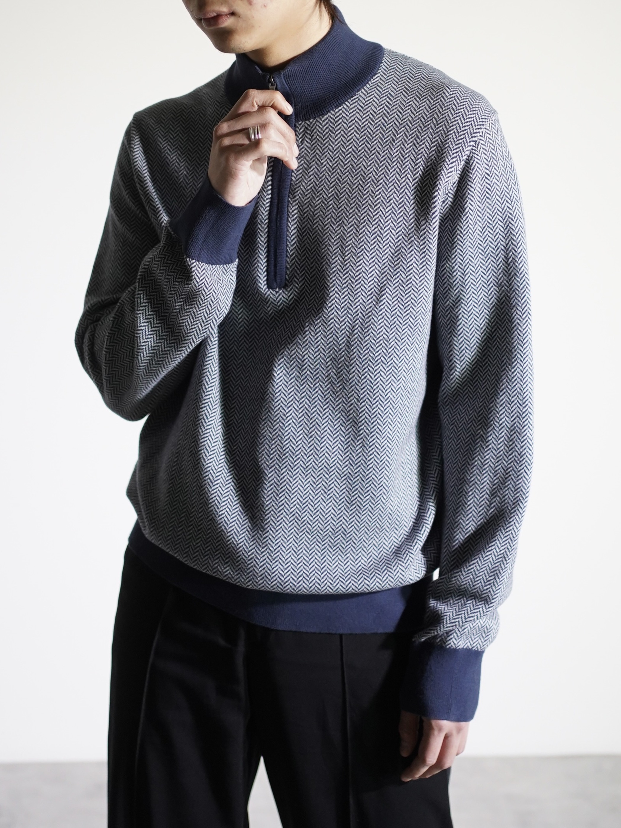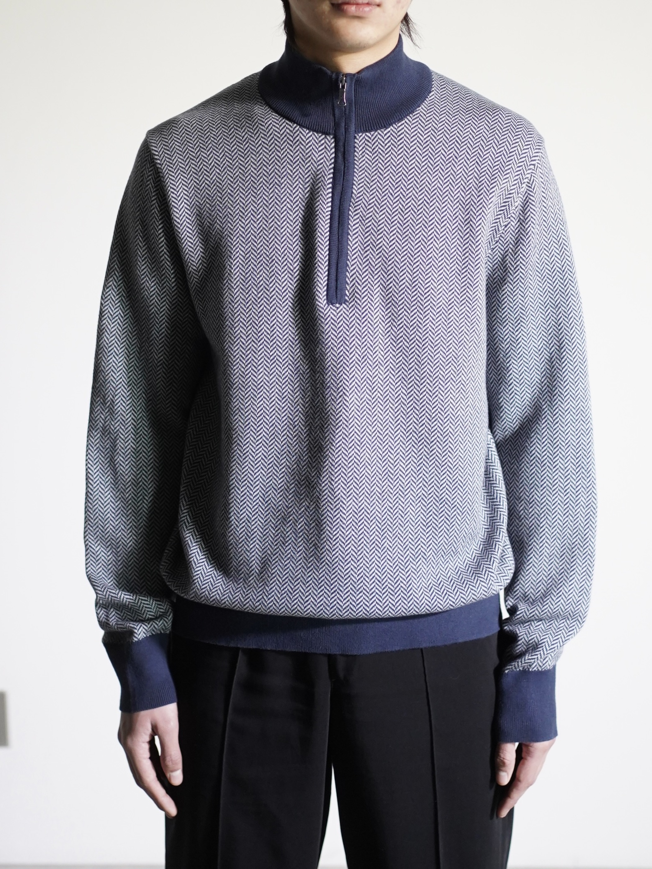 Brooks Brothers herringbone pattern cotton half-zip knit tops