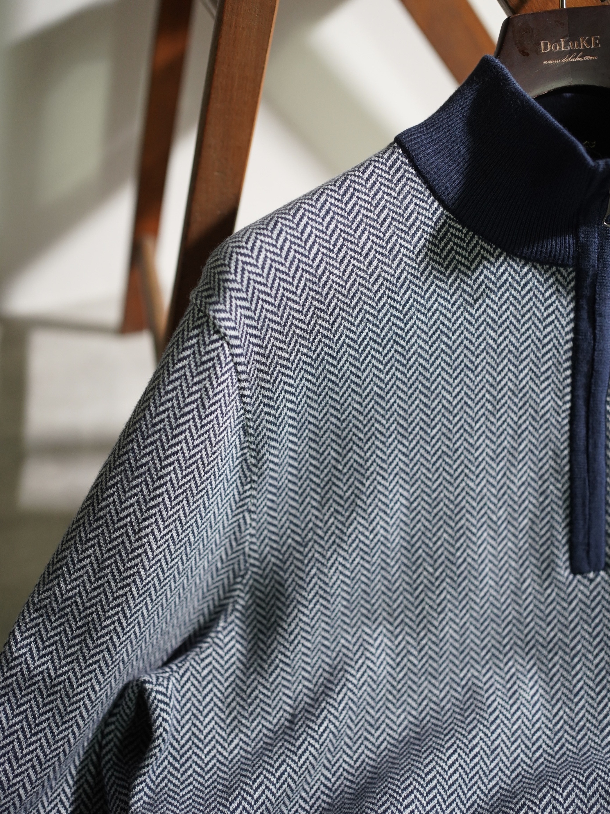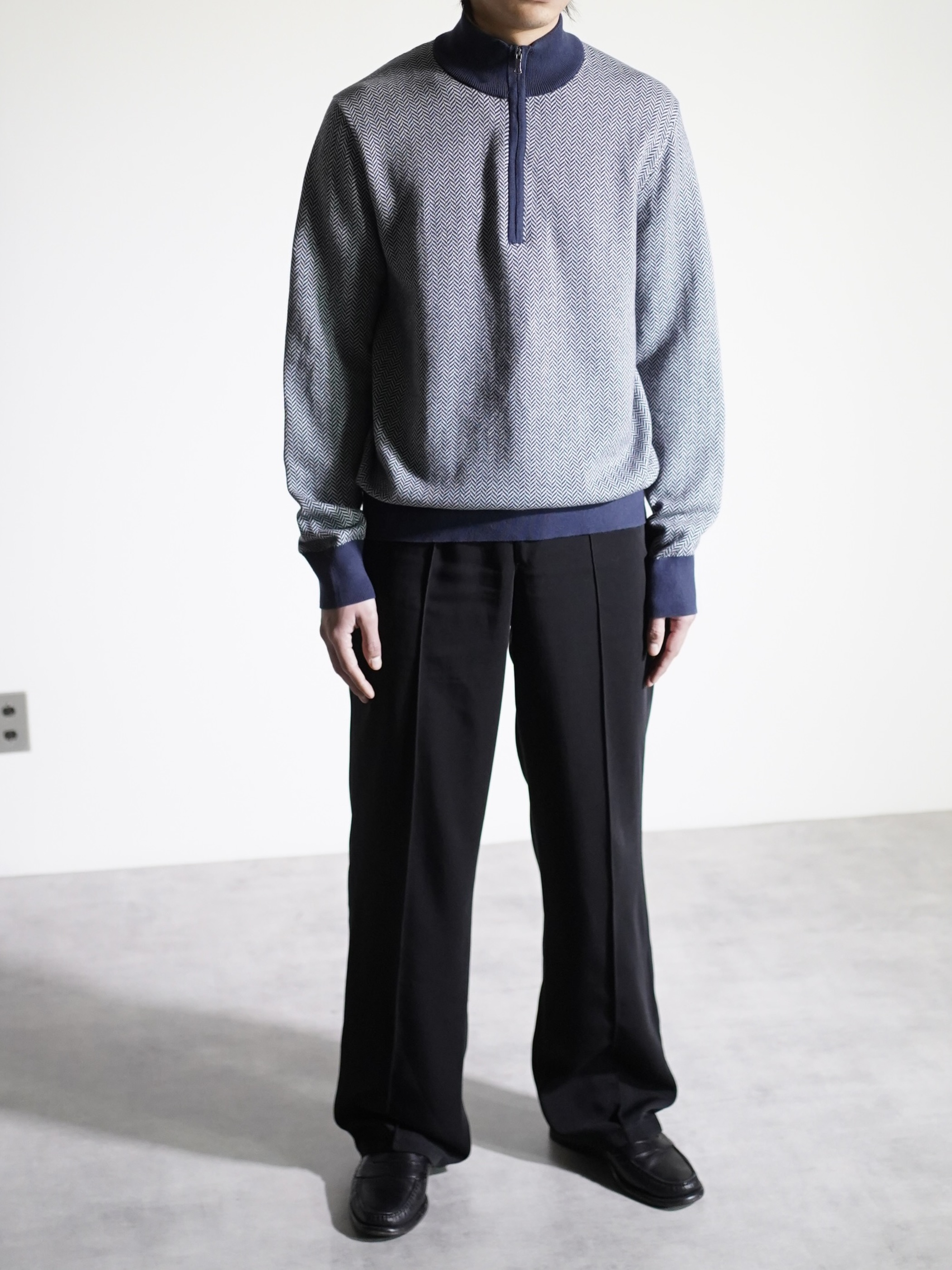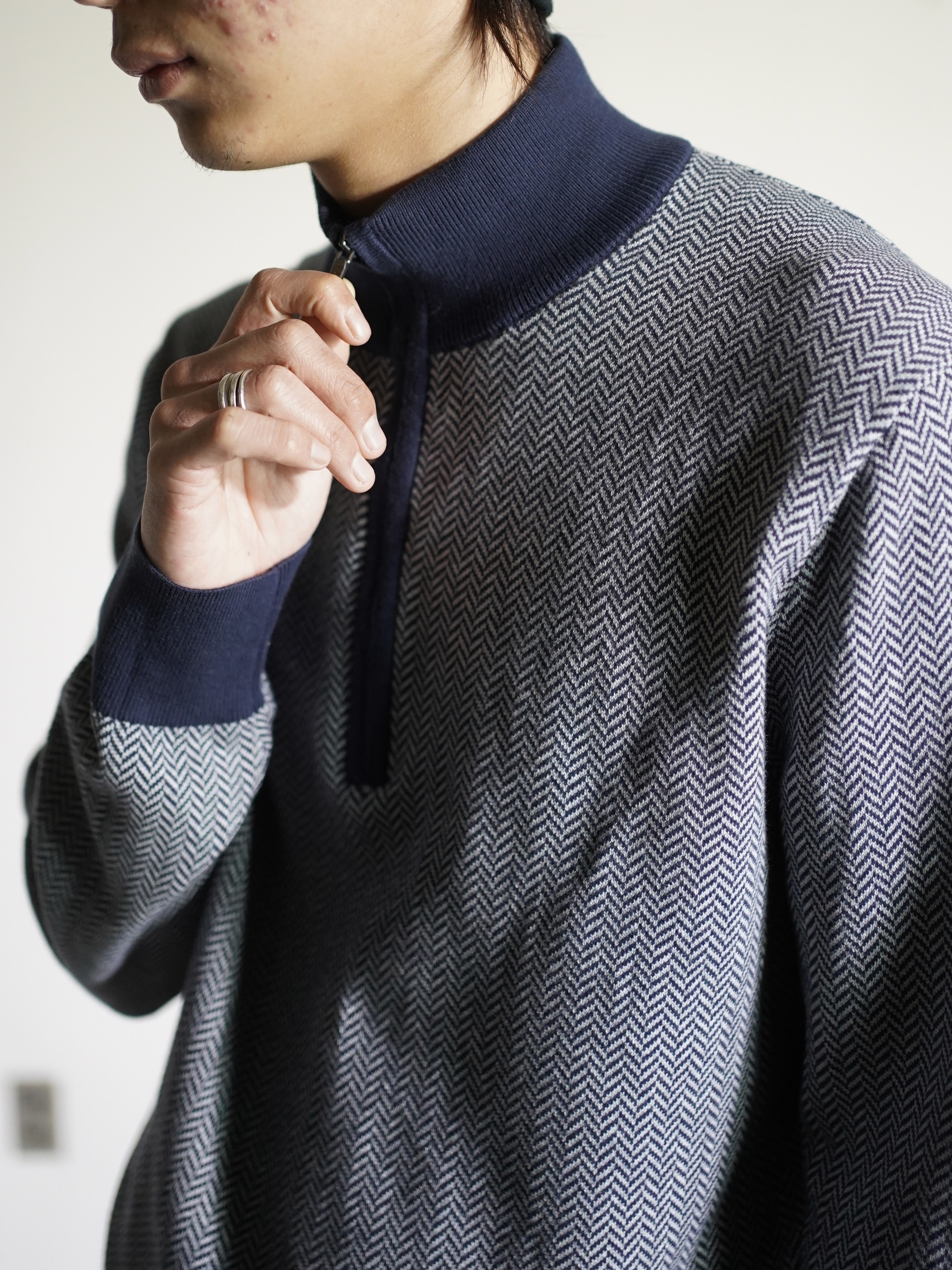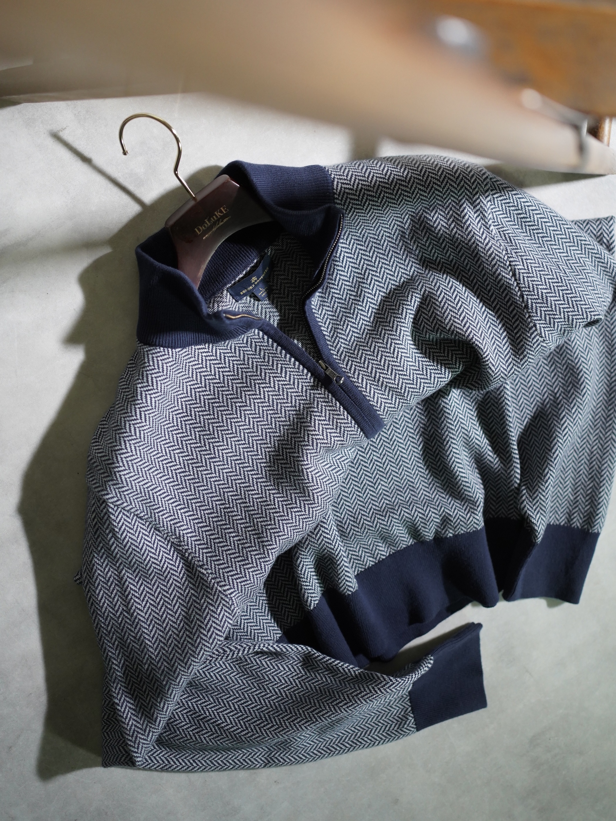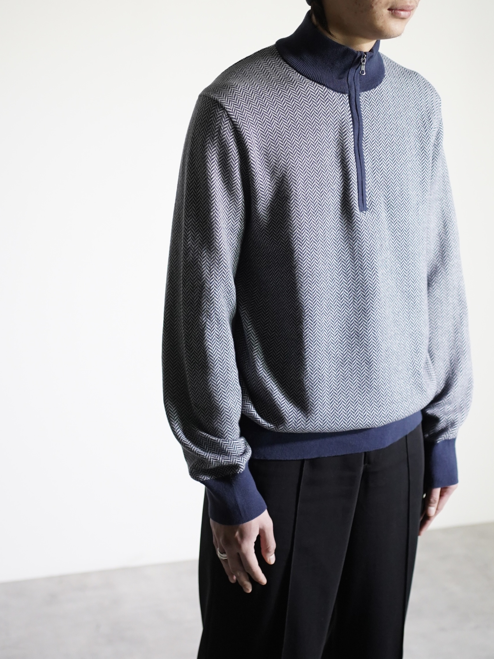 Brooks Brothers herringbone pattern cotton half-zip knit tops