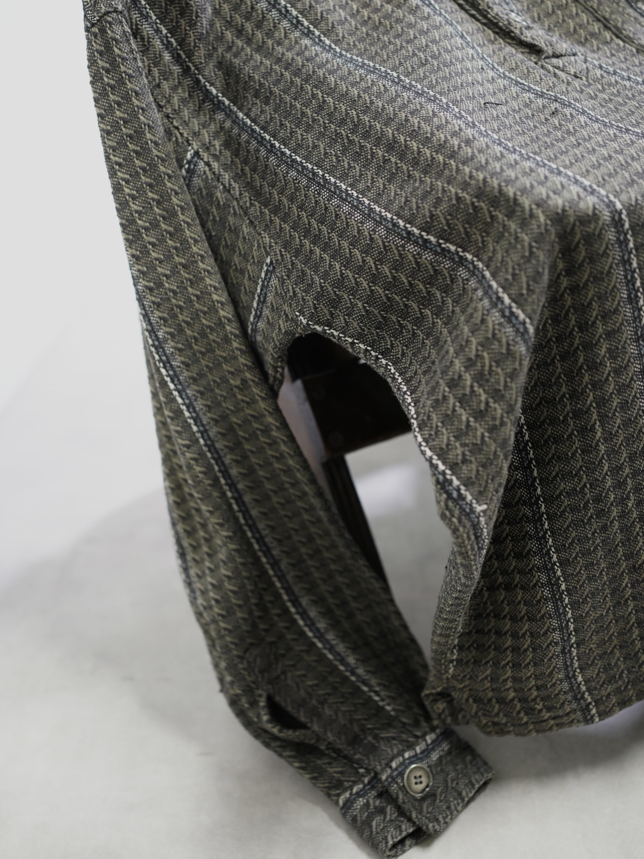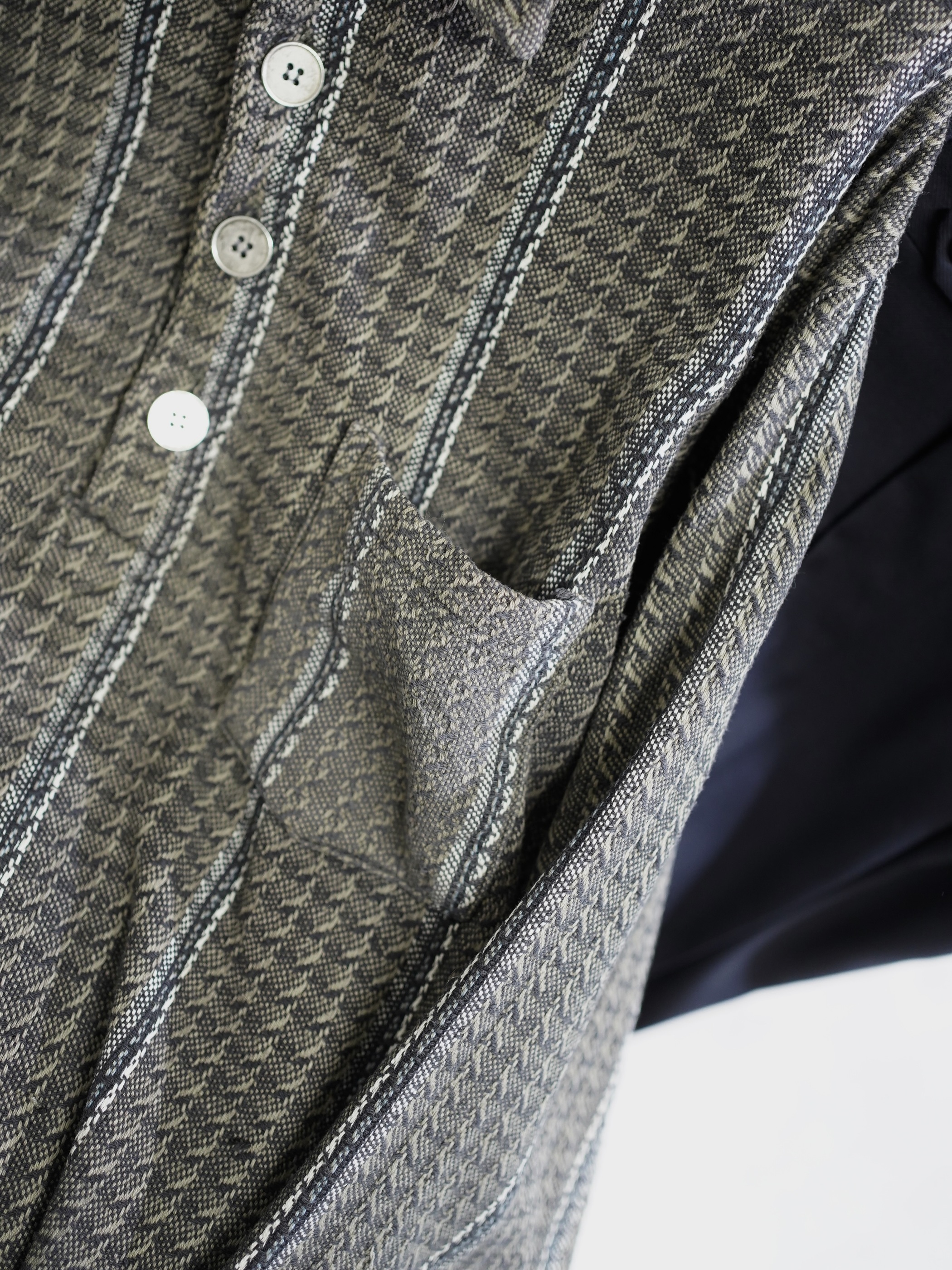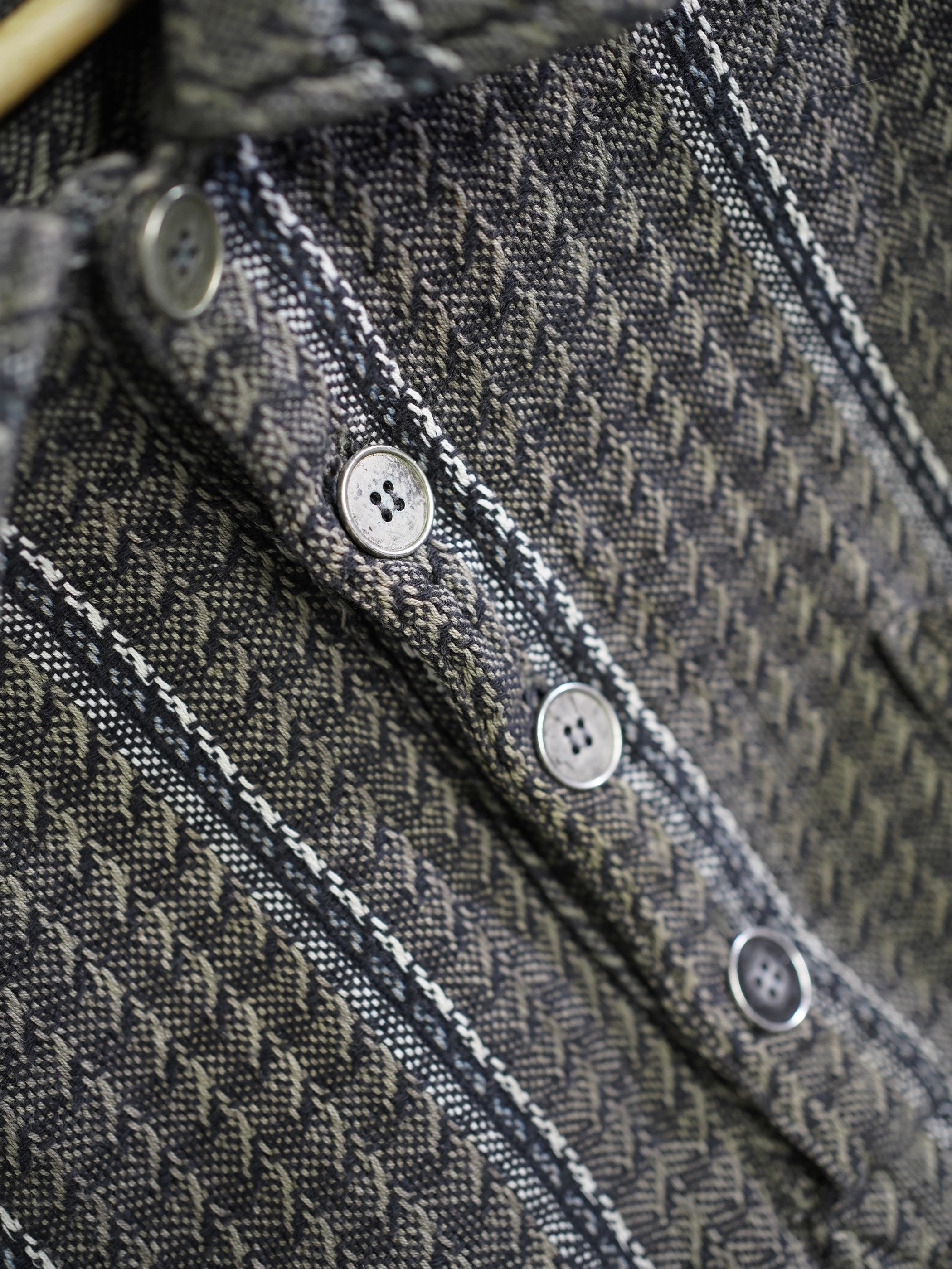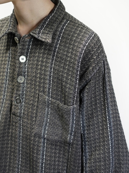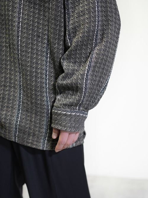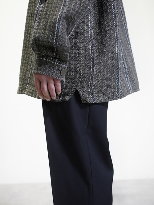 トーンダウンしたジャガードストライプにメタルボタンが映える。