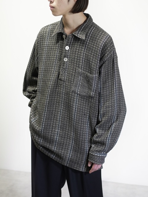 カタール製、甘い撚りと編みにて製作されたプルオーバーニットシャツ。