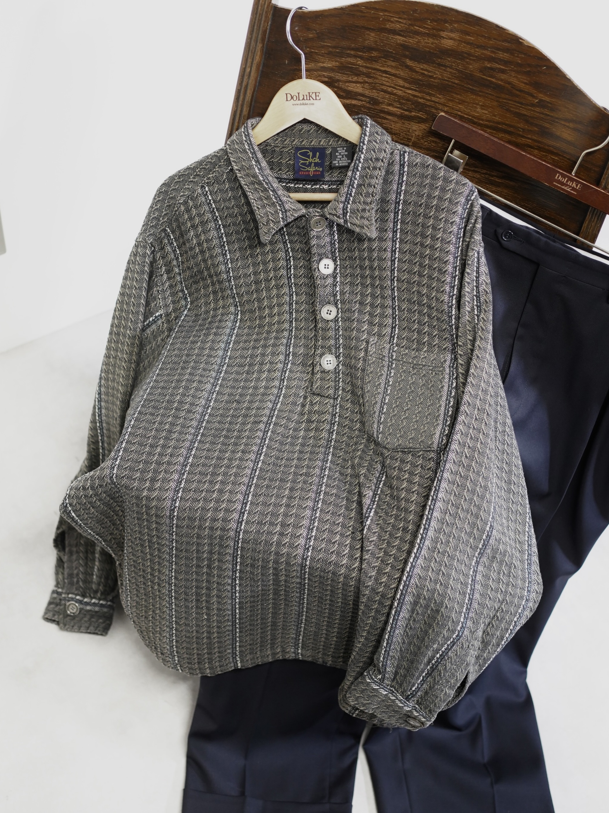 1990's Shah Safari All cotton loose woven pull knit shirts/Made in Qatar