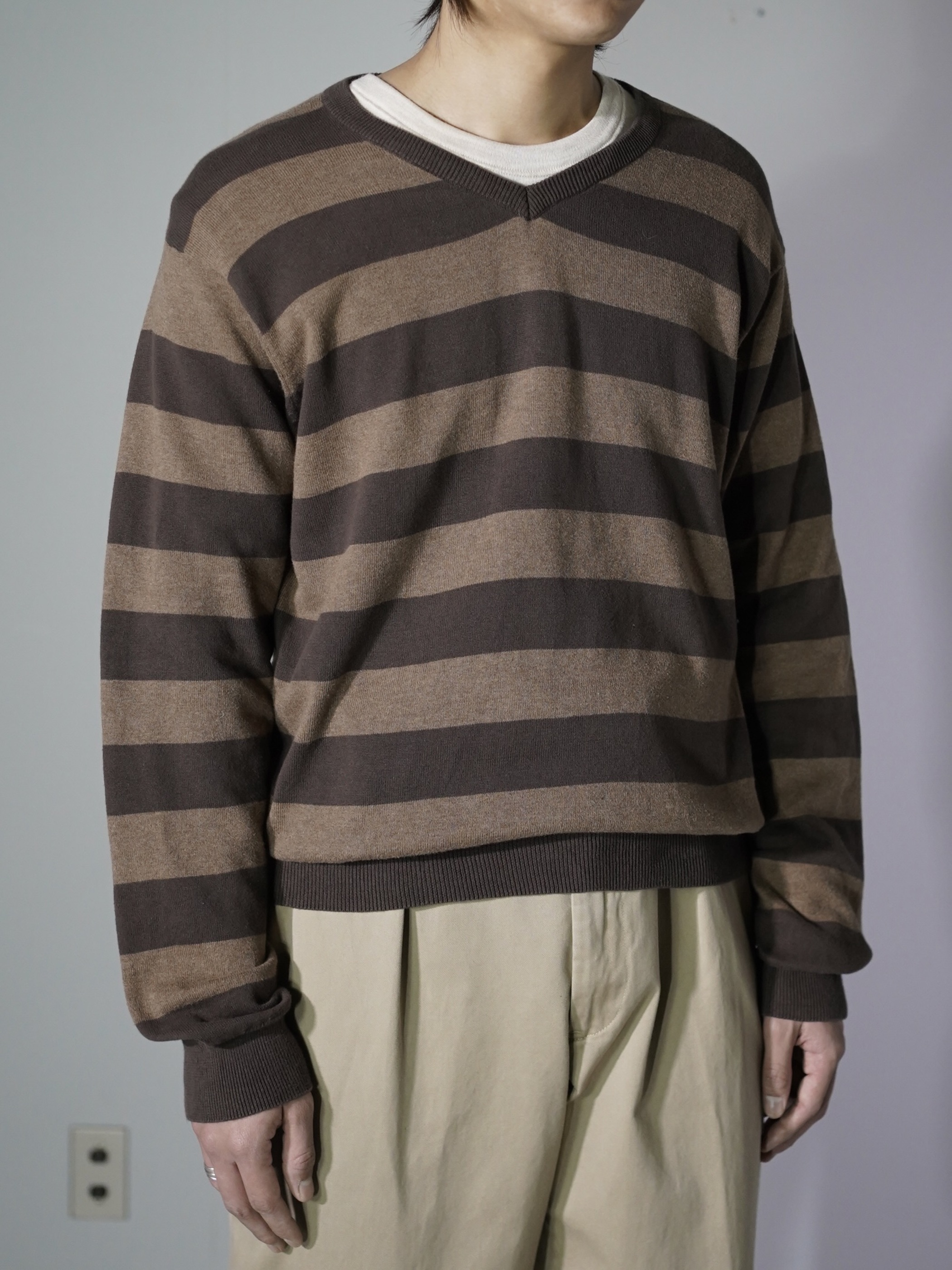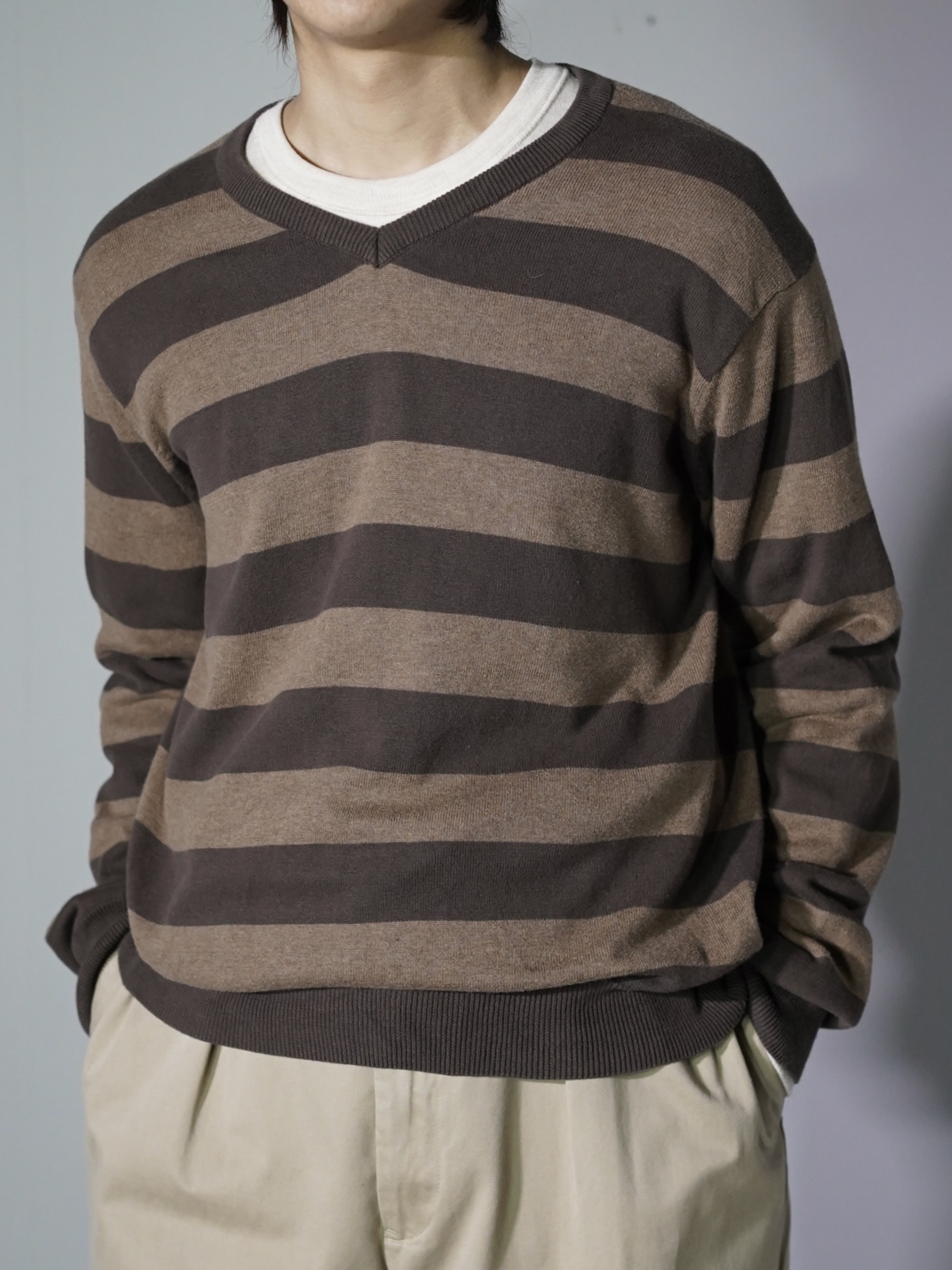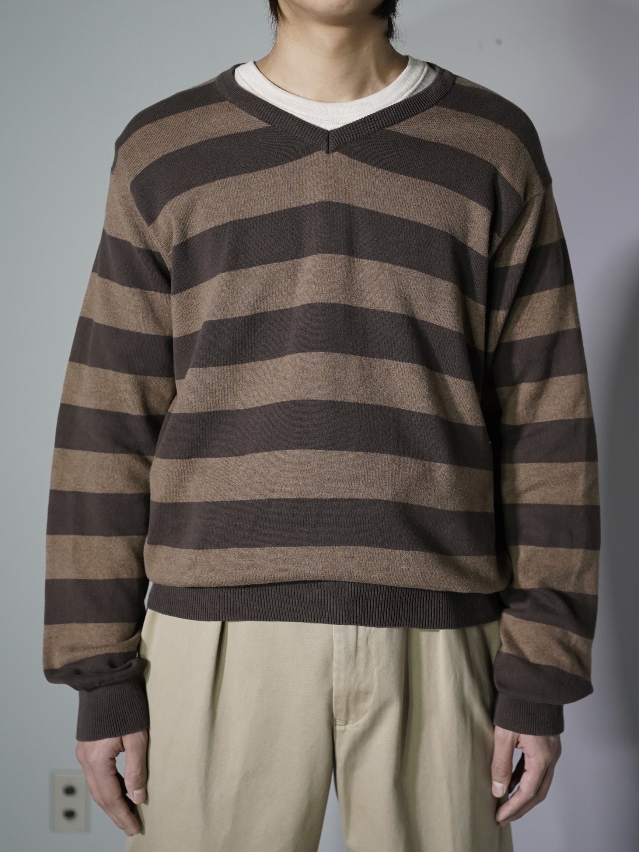 00's OLD NAVY cotton border v-neck knit