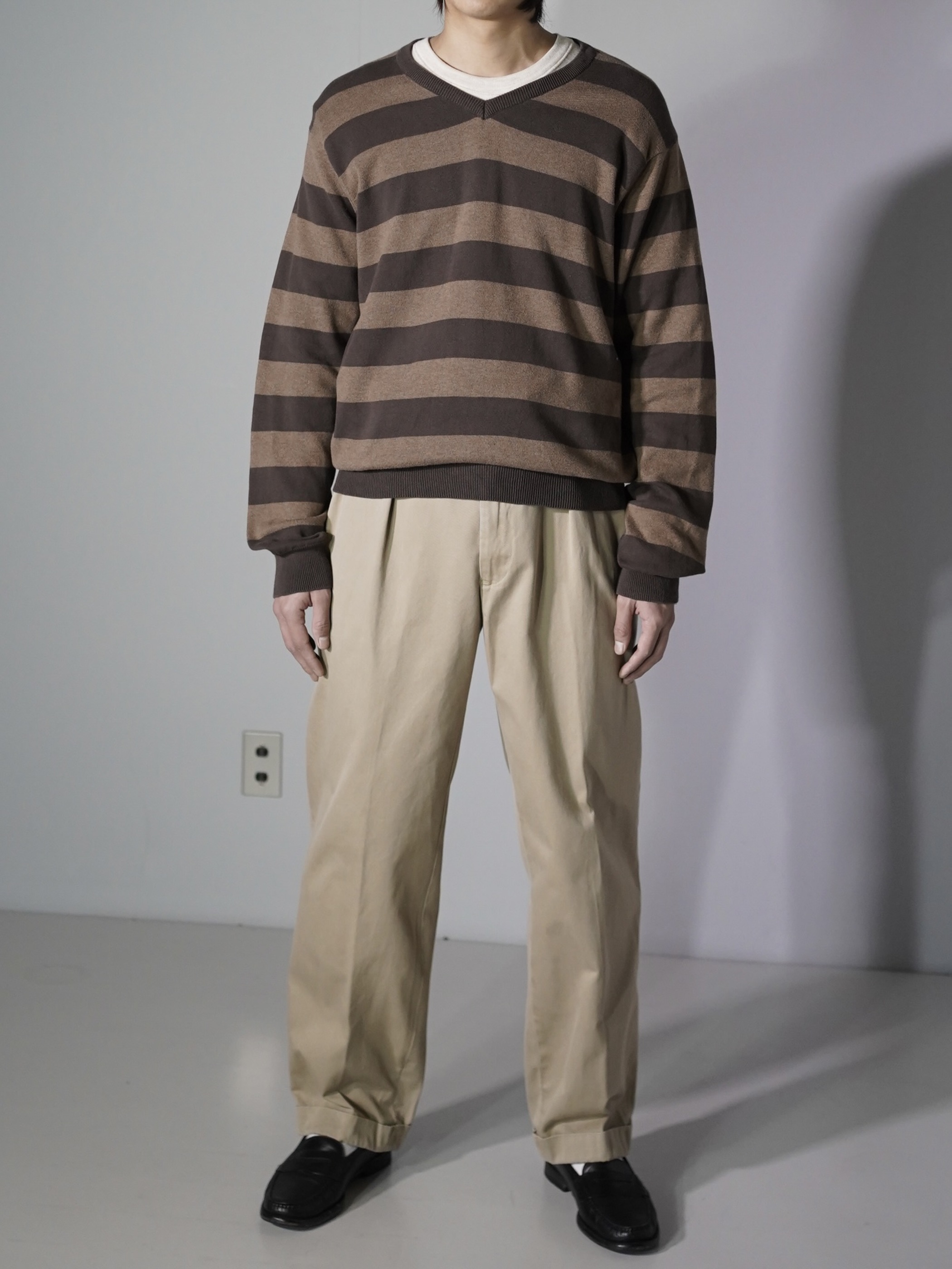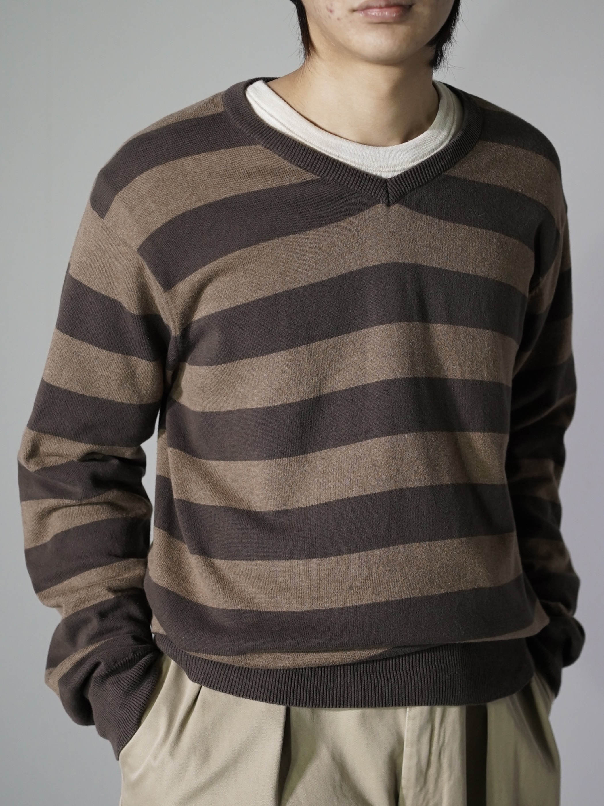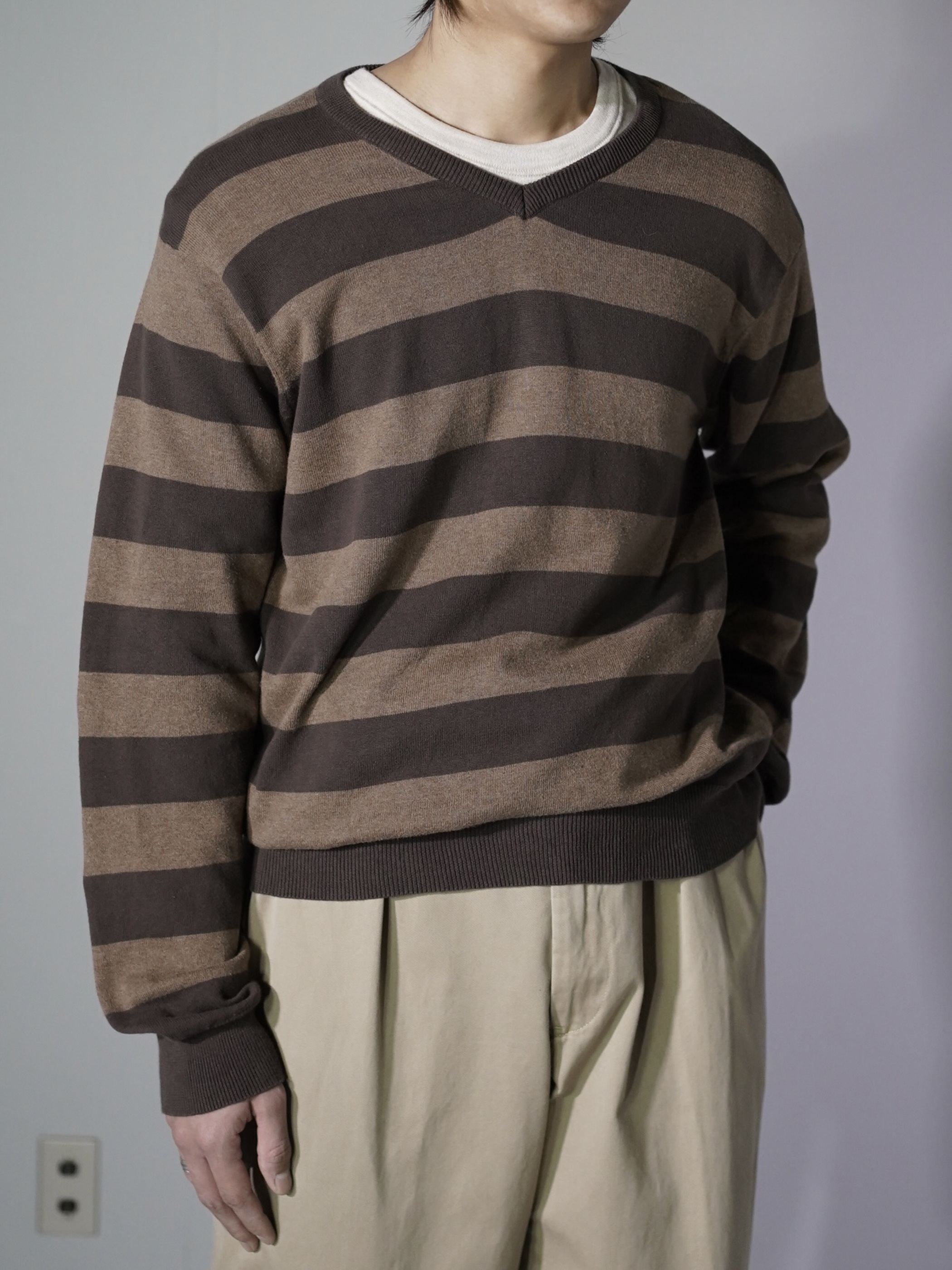 00's OLD NAVY cotton border v-neck knit