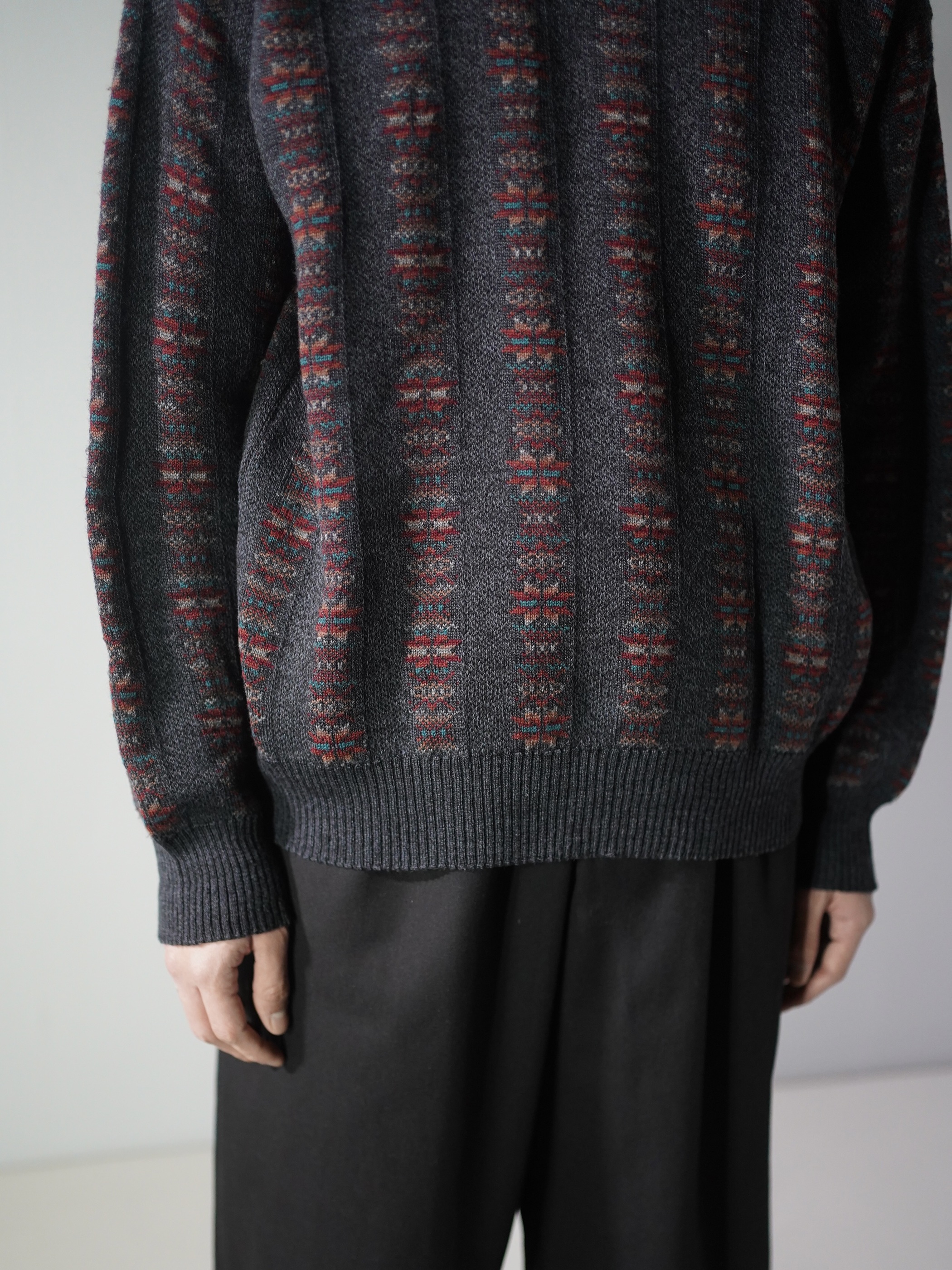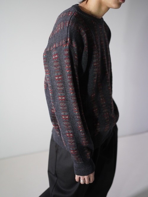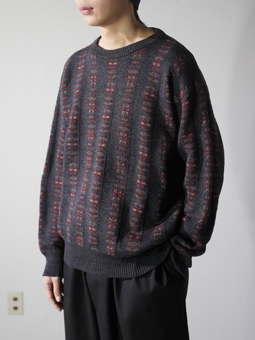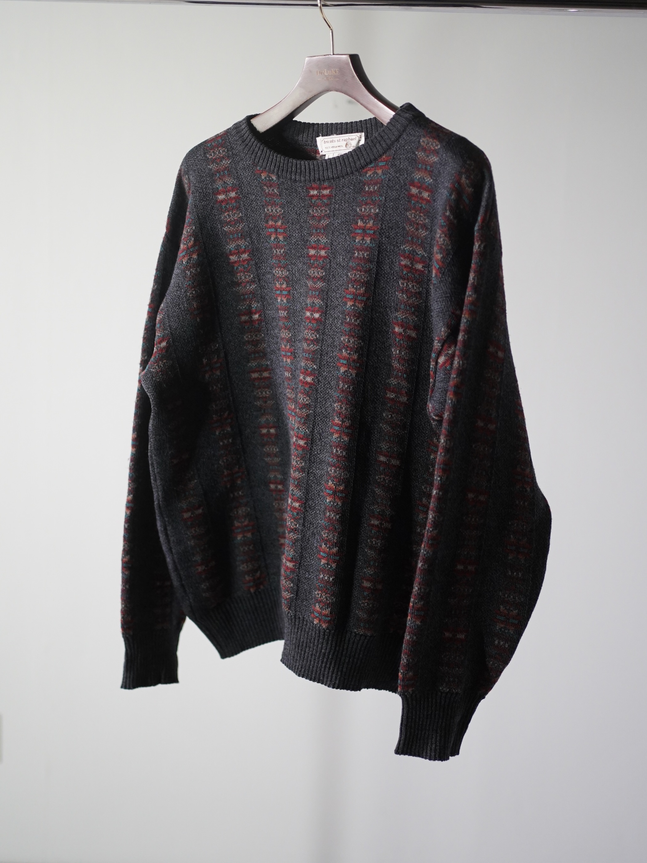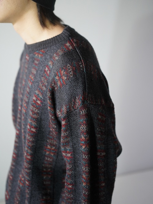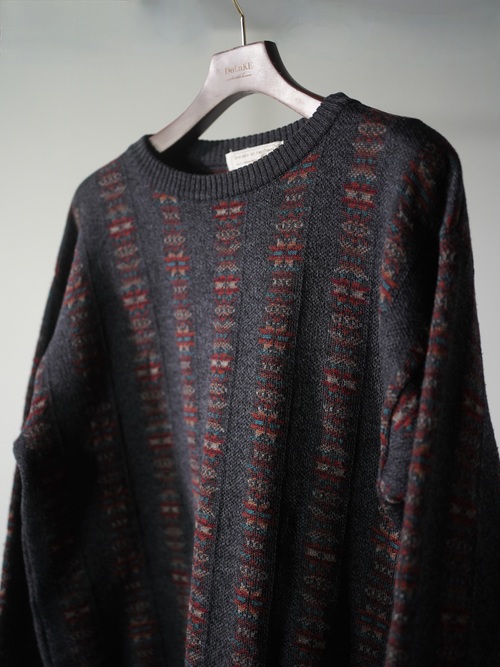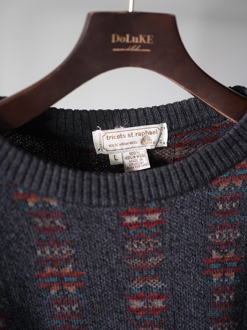 ・1990's Tricots St.Raphael native pattern stripe virgin wool knit sweter