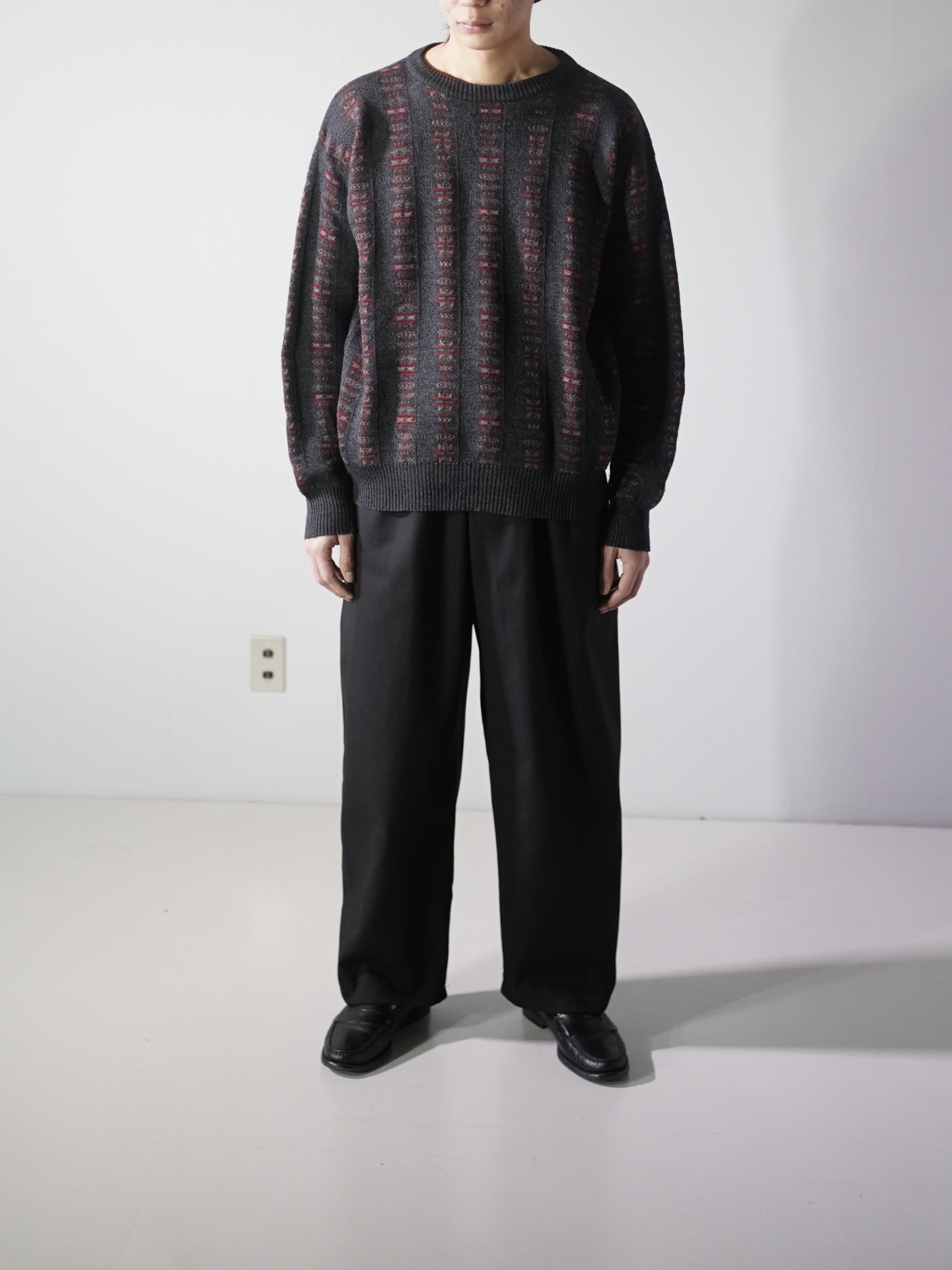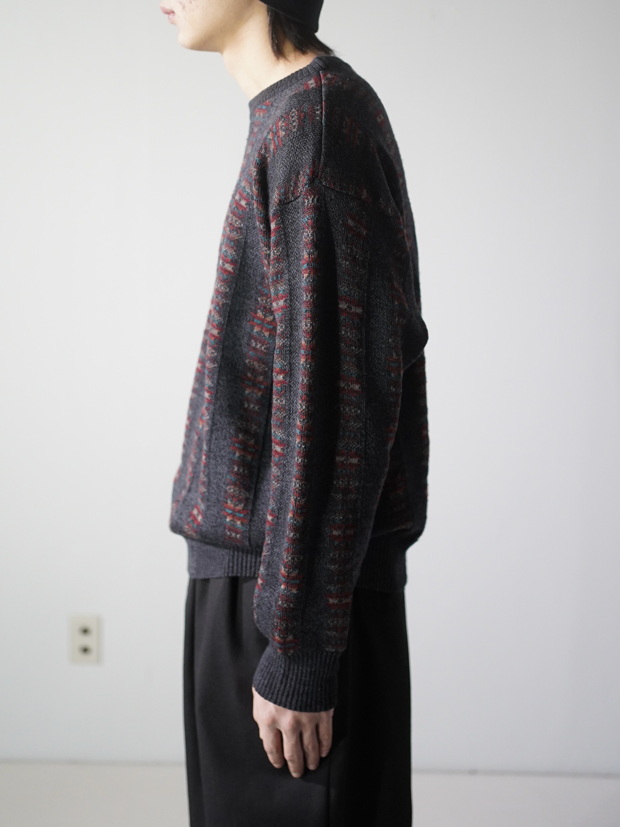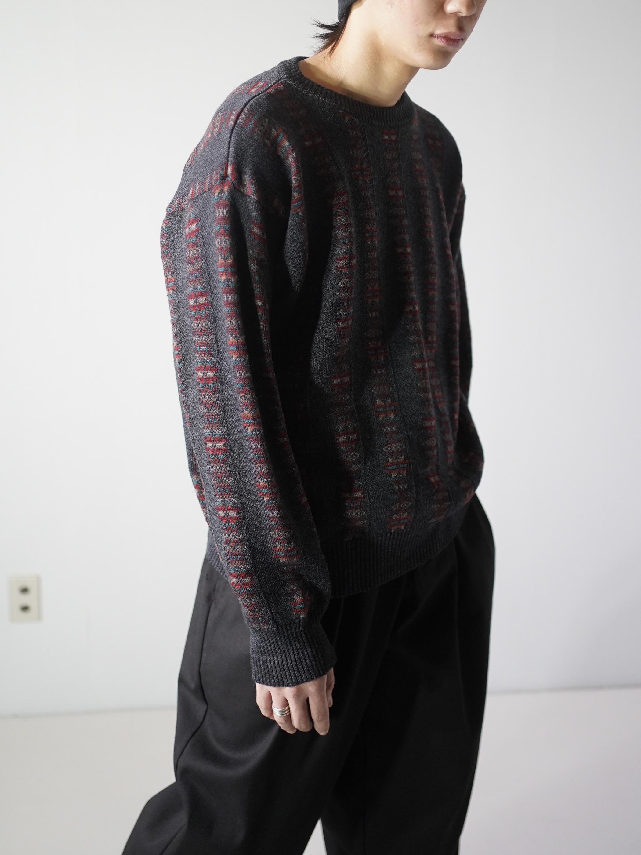 ・1990's Tricots St.Raphael native pattern stripe virgin wool knit sweter
