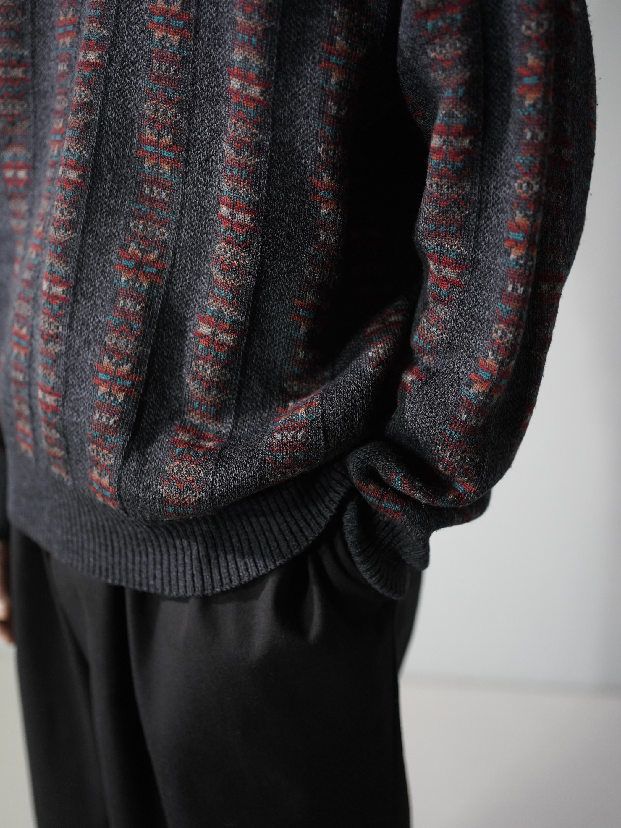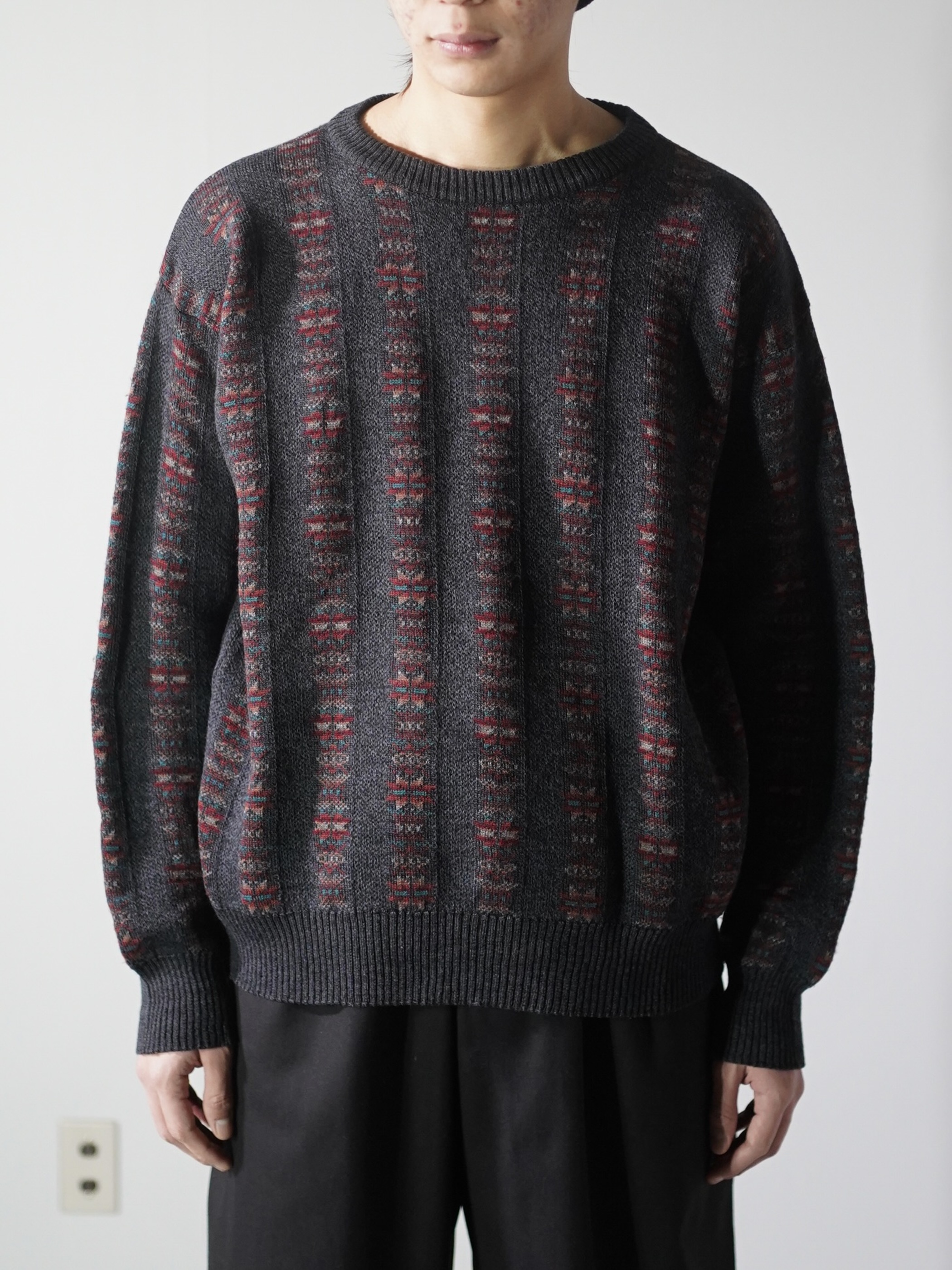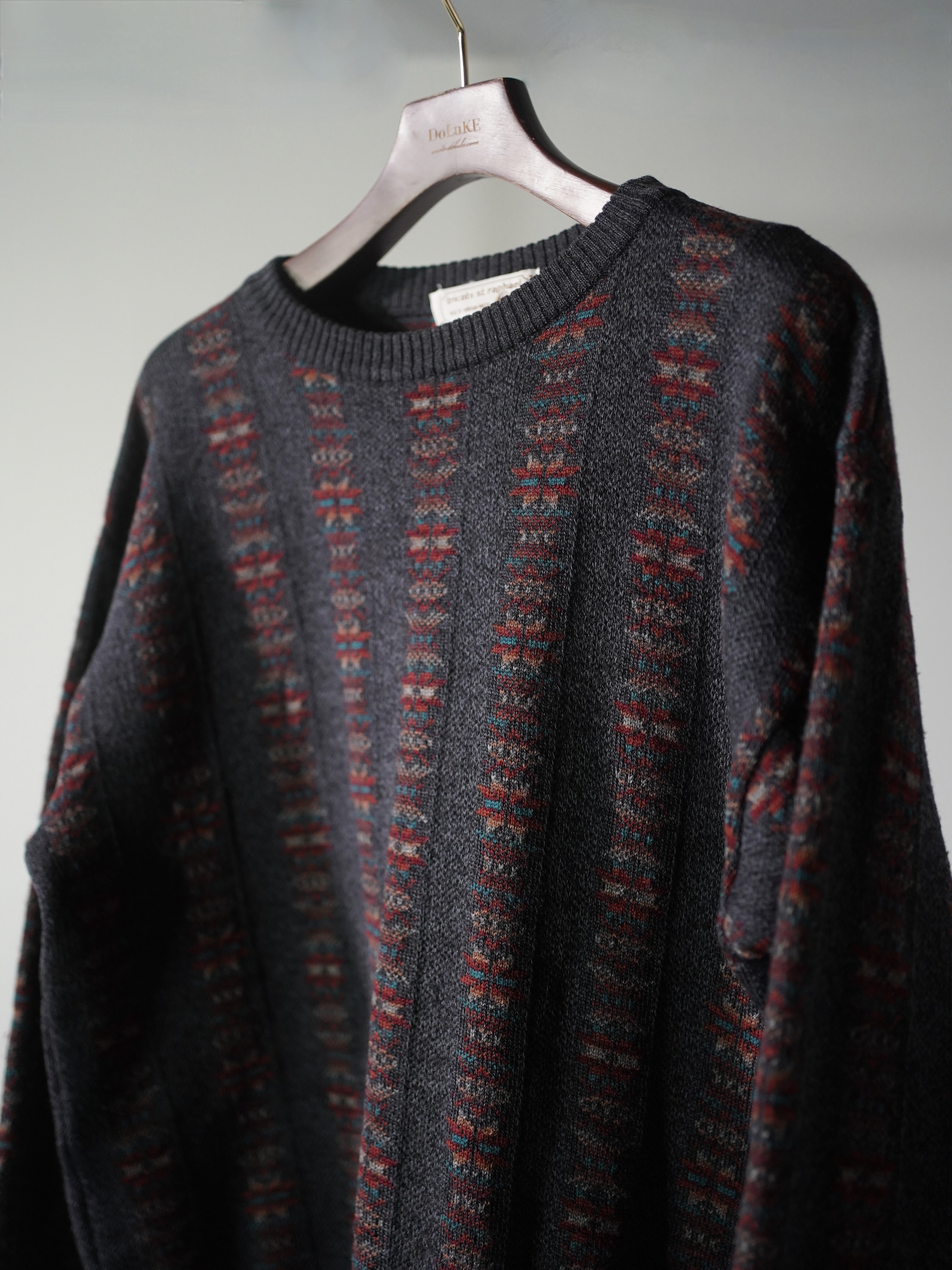 1990's Tricots St.Raphael native pattern stripe virgin wool knit sweter