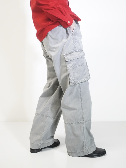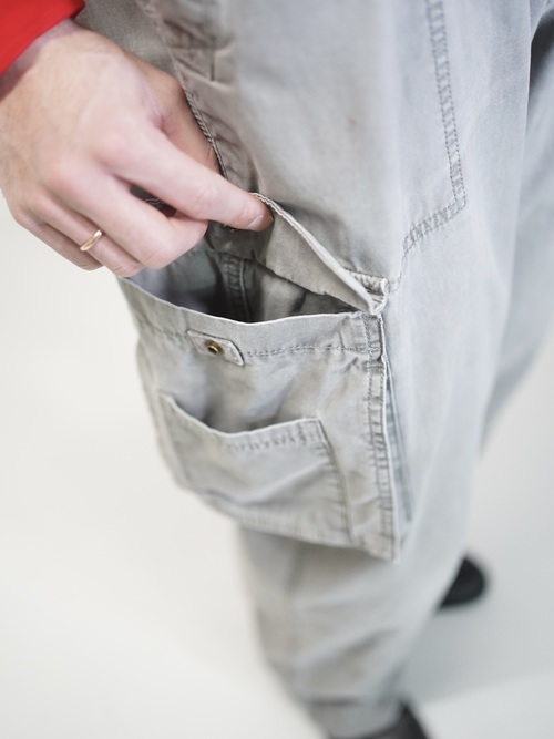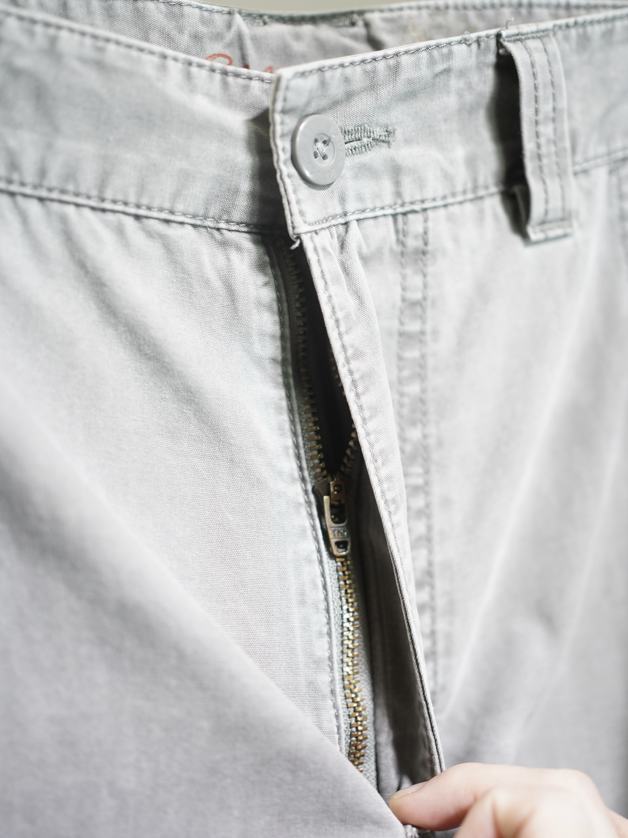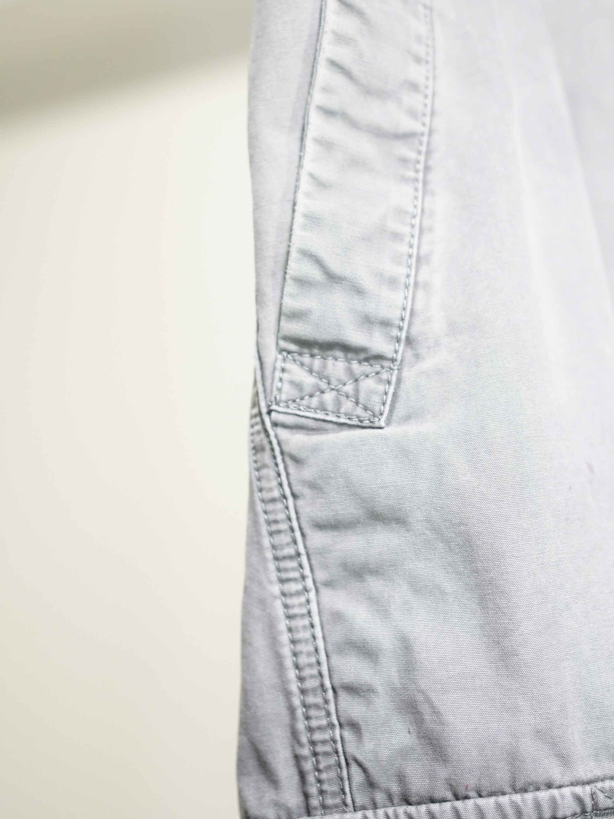 所謂のカーゴやダブルニーパンツとは一味違う、肌触りはマットでありながらライトな生地感。
