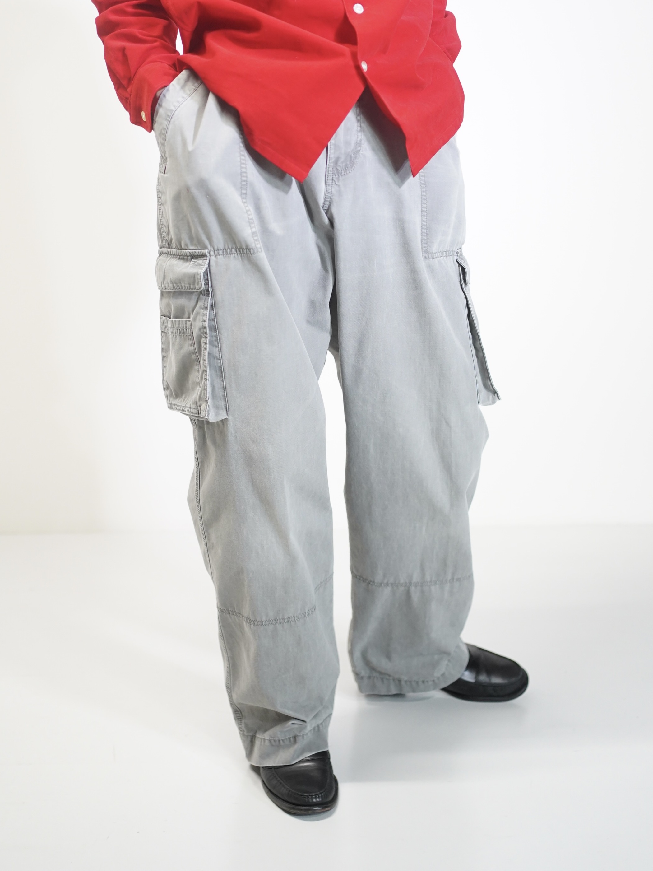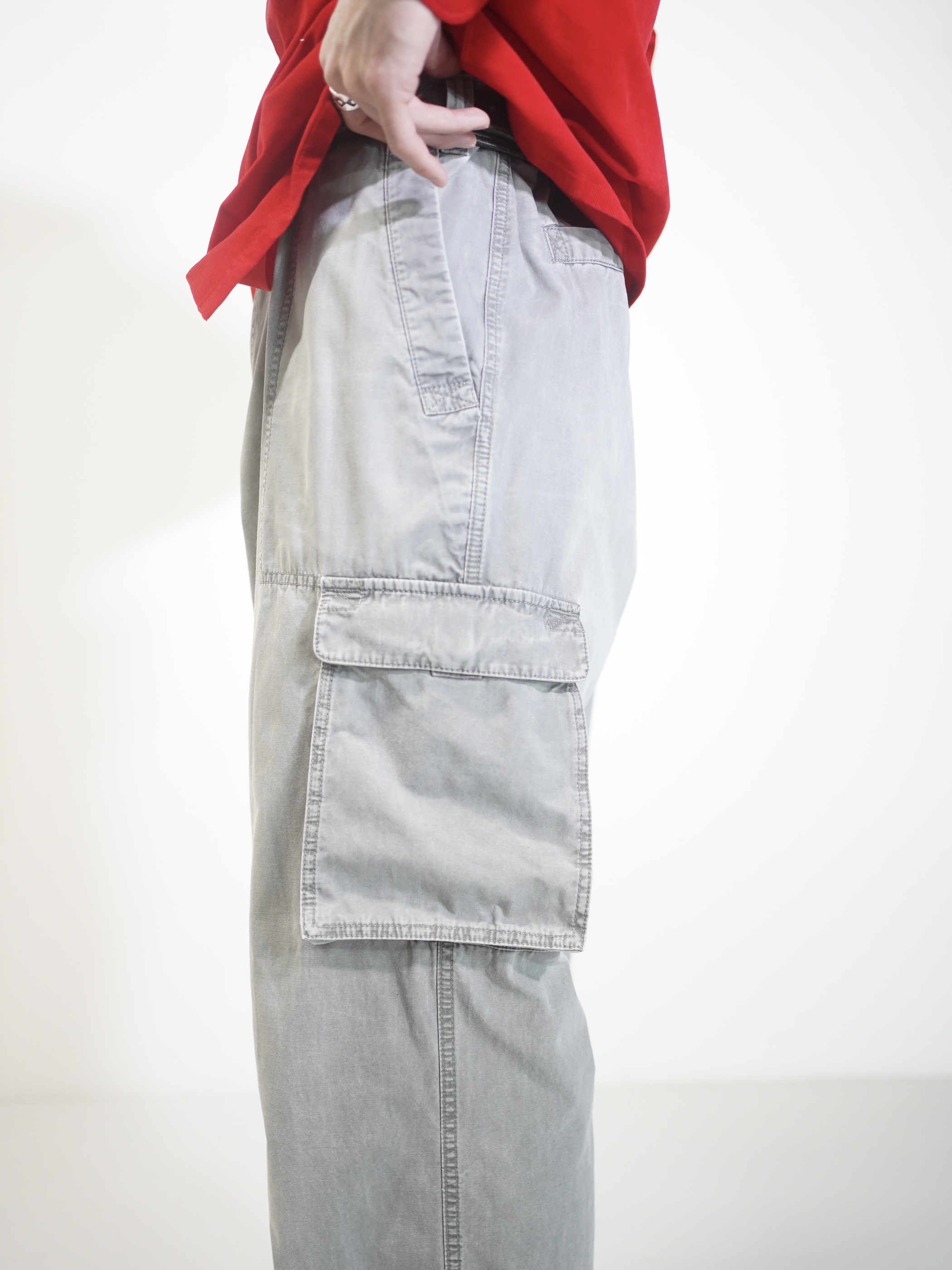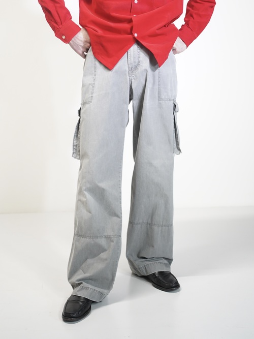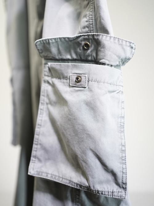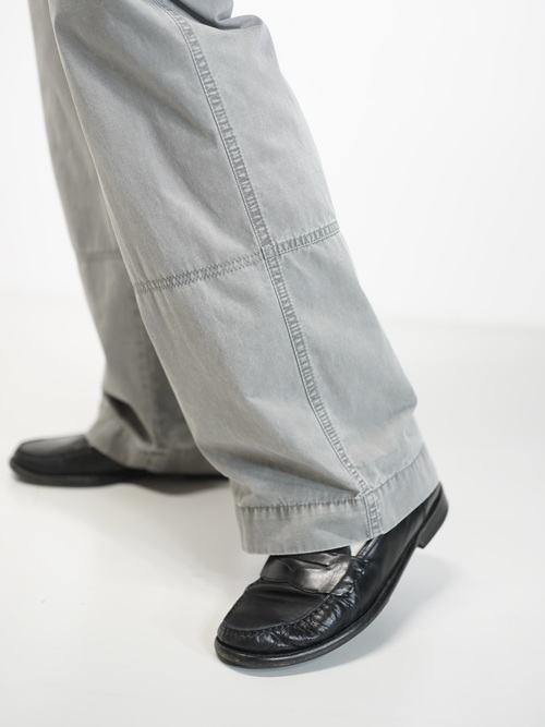所謂のカーゴやダブルニーパンツとは一味違う、肌触りはマットでありながらライトな生地感。